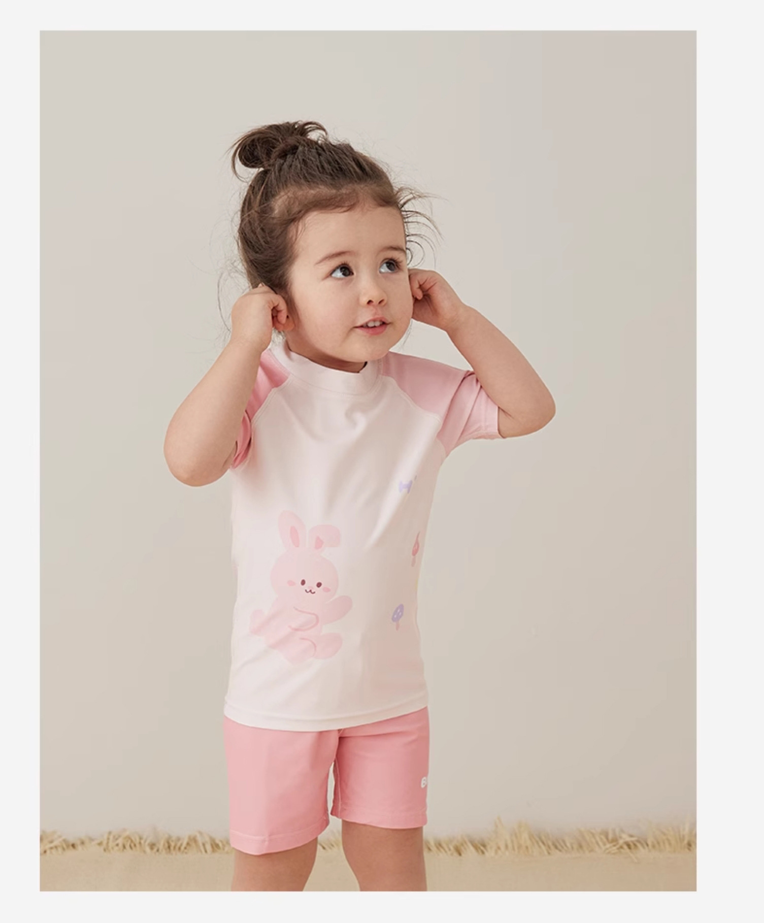 • 핑크 래글런 슬리브 슈트 (수영복+수영팬츠+수영모)