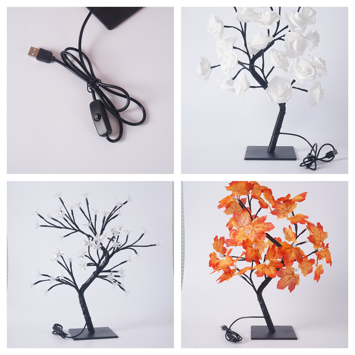 • 24등 검정색 배경 흰색 꽃나무 램프-USB 스위치 포함