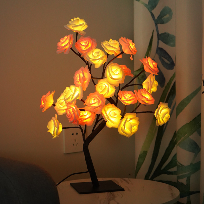 국경 간 LED 시뮬레이션 장미 나무 램프 이동식 야간 조명 침실 룸 장식 배열 분위기 조명