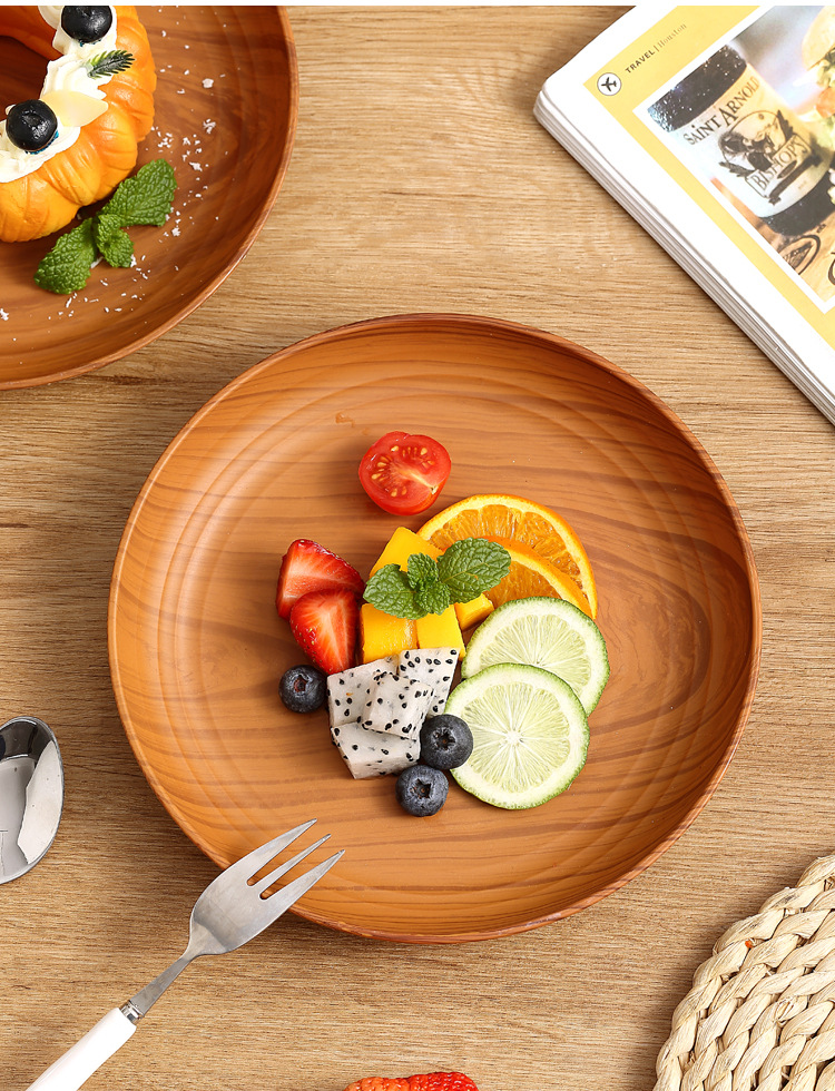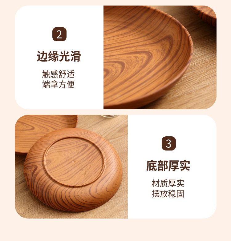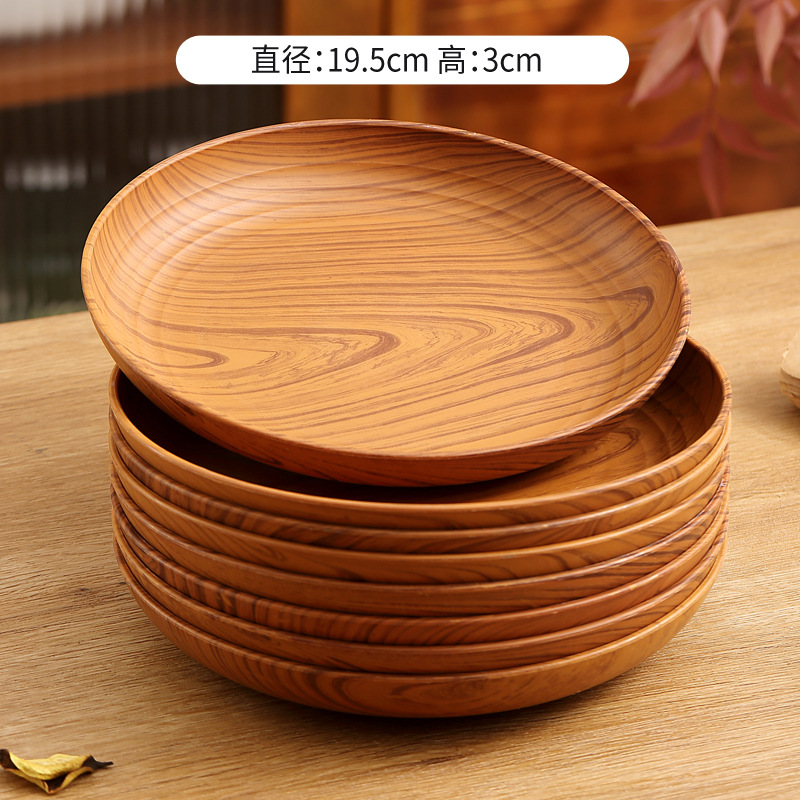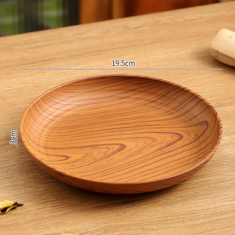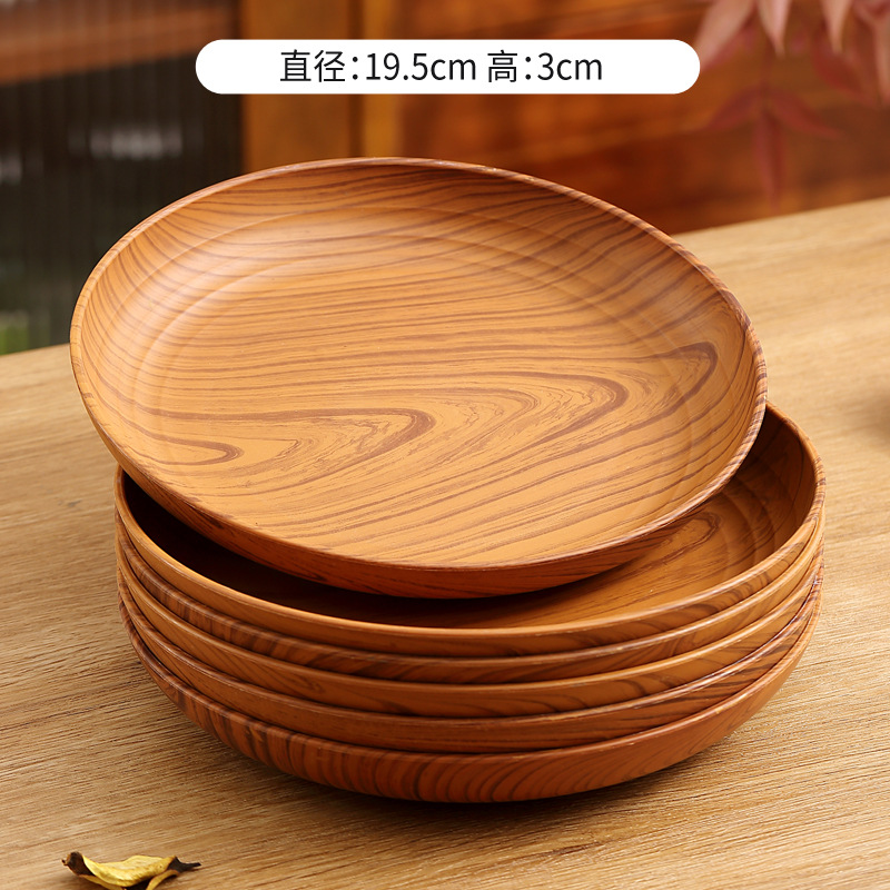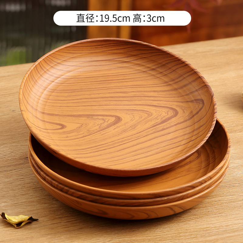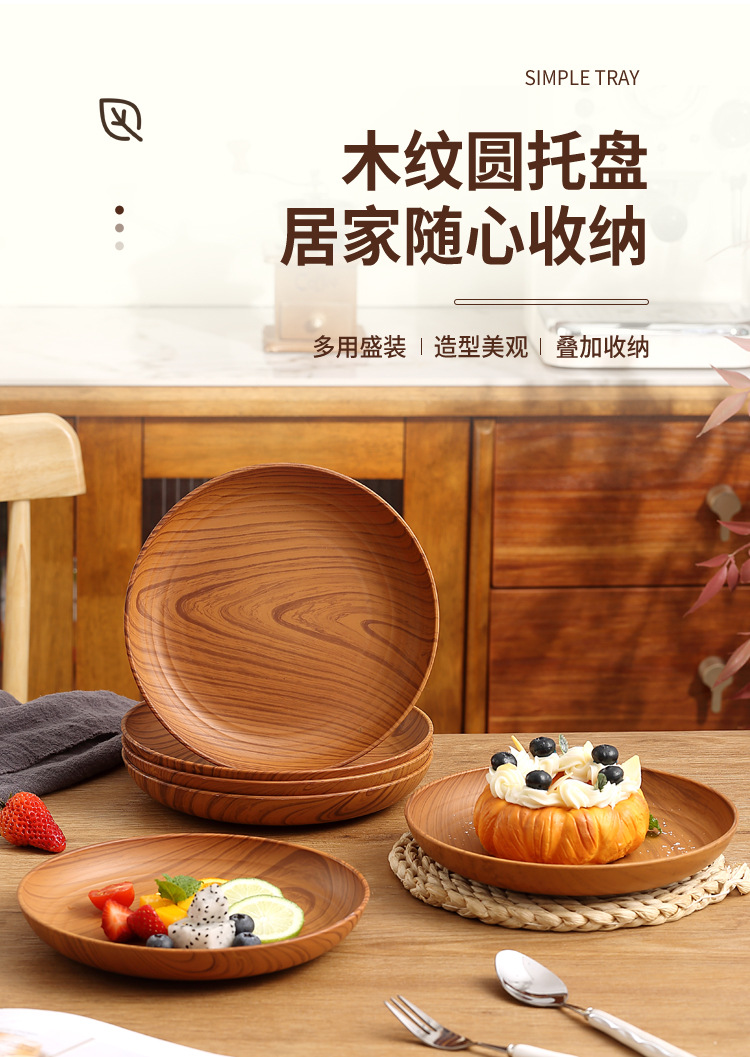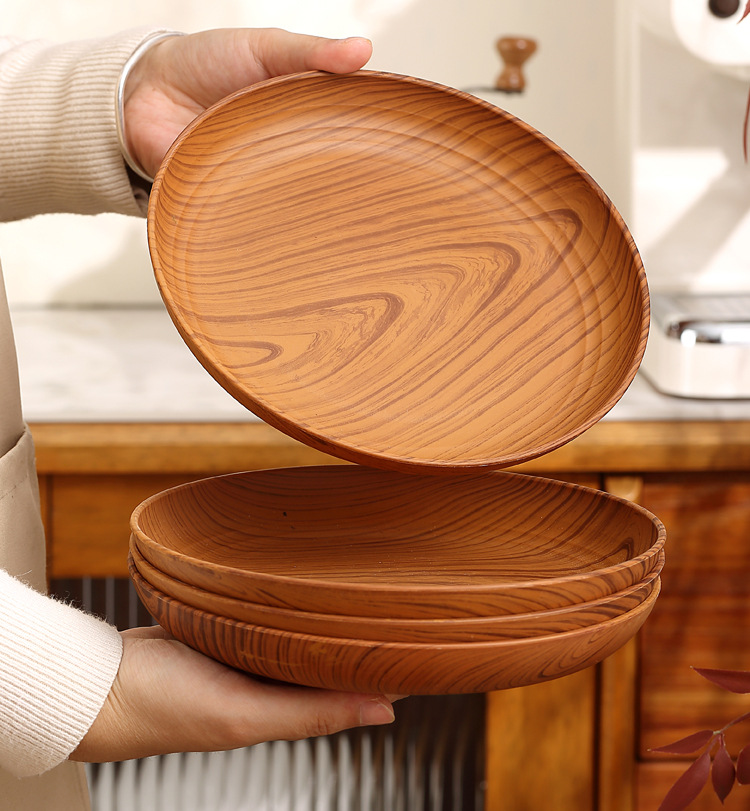 레트로 나뭇결 디스크 ins 플라스틱 접시 접시 상업용 라운드 홈 커피 케이크 디저트 과일 접시