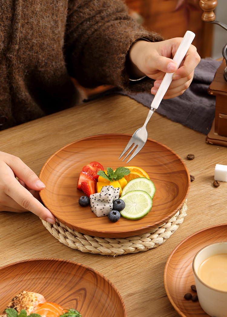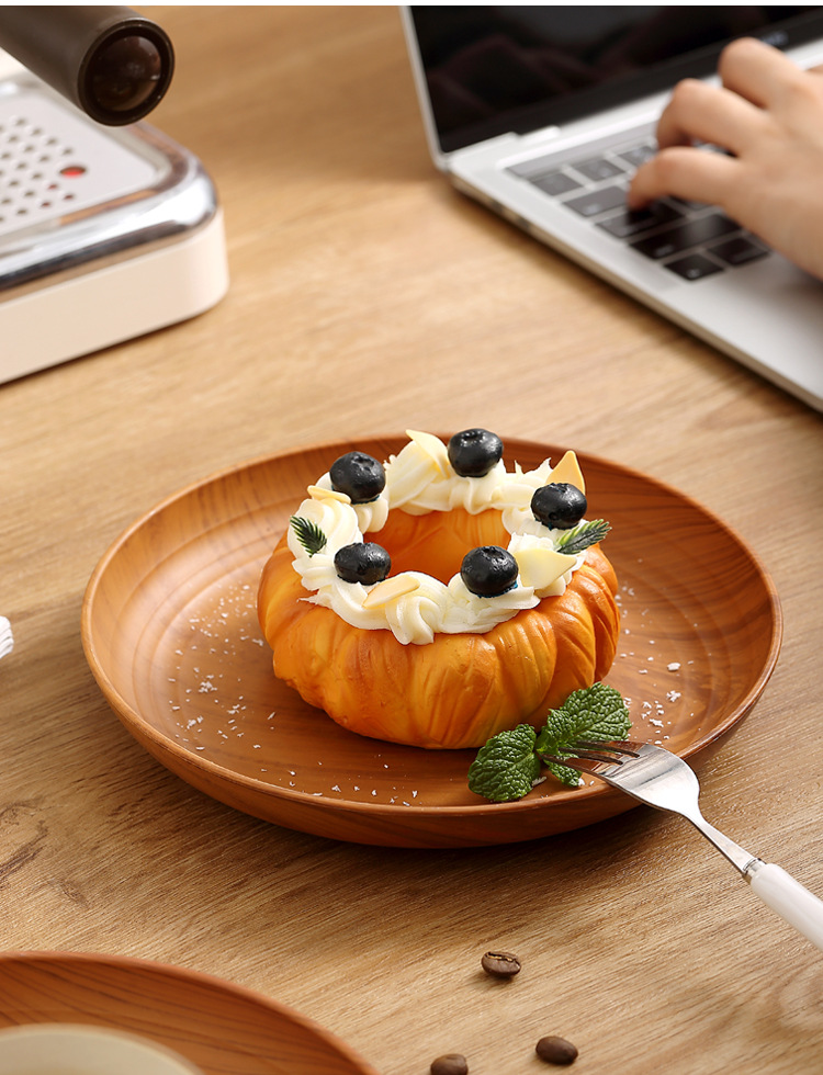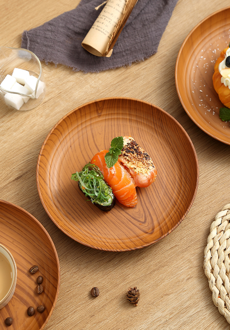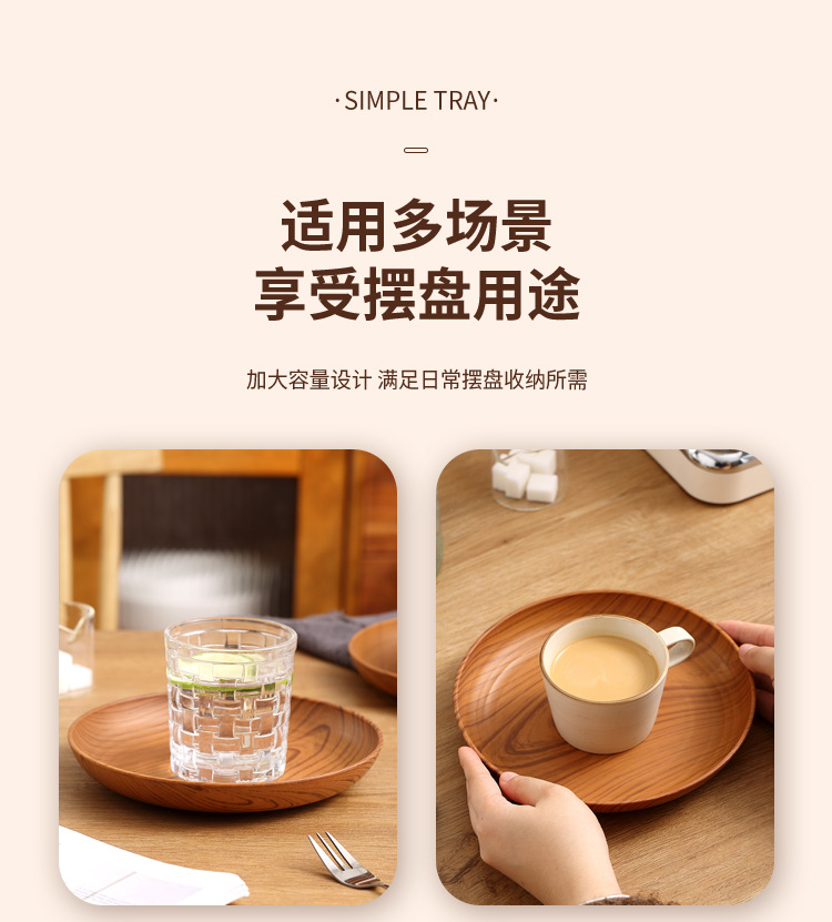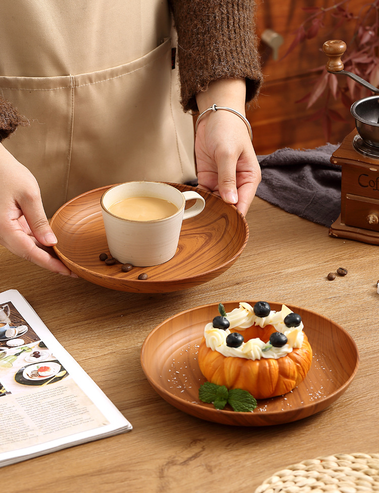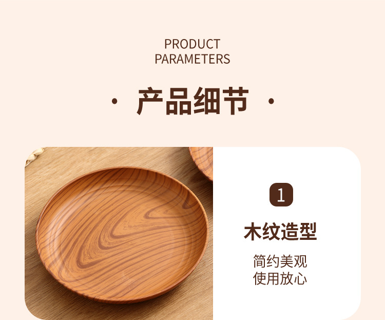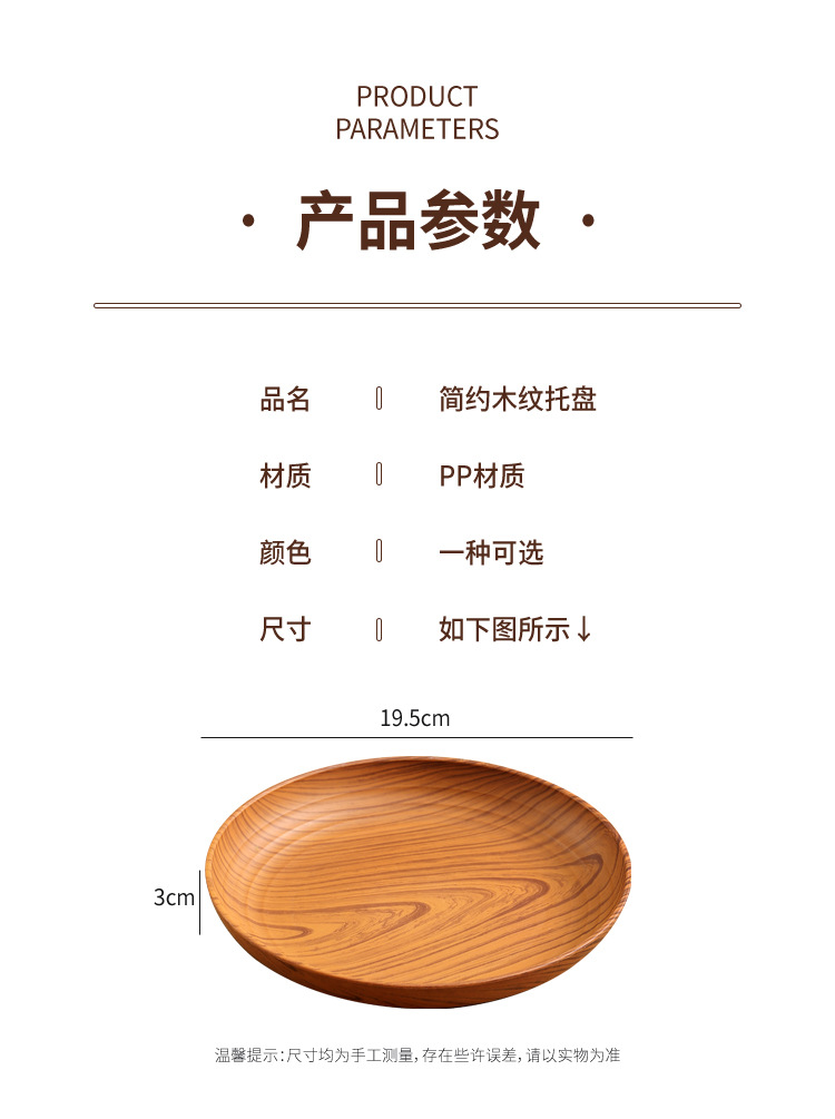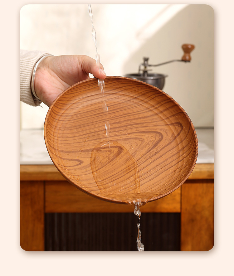 레트로 나뭇결 디스크 ins 플라스틱 접시 접시 상업용 라운드 홈 커피 케이크 디저트 과일 접시