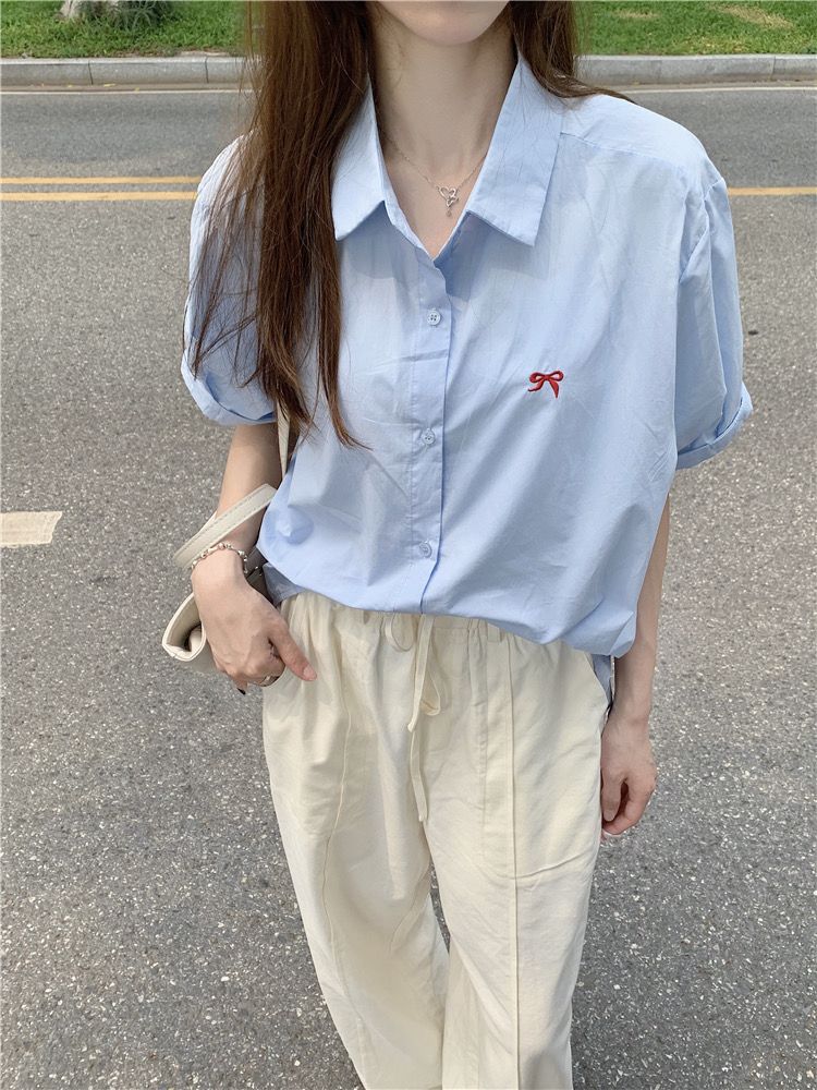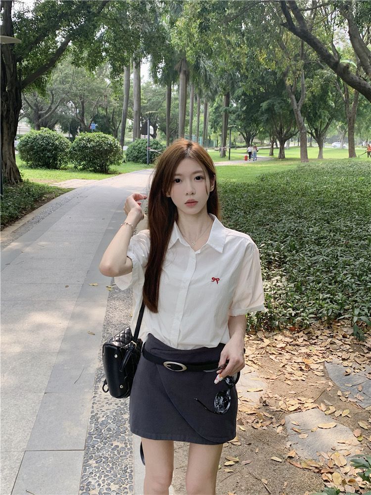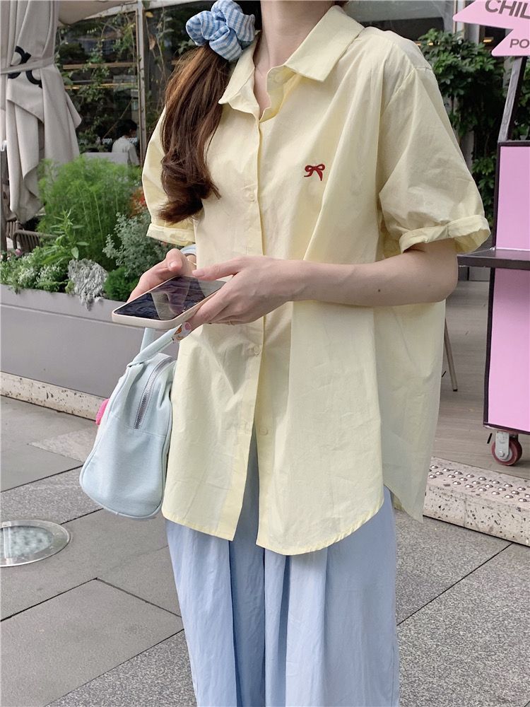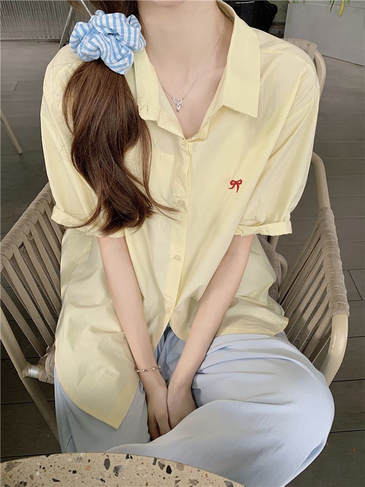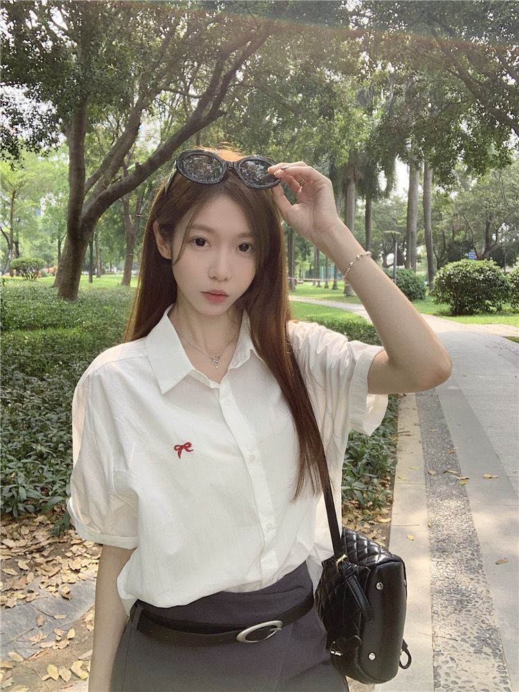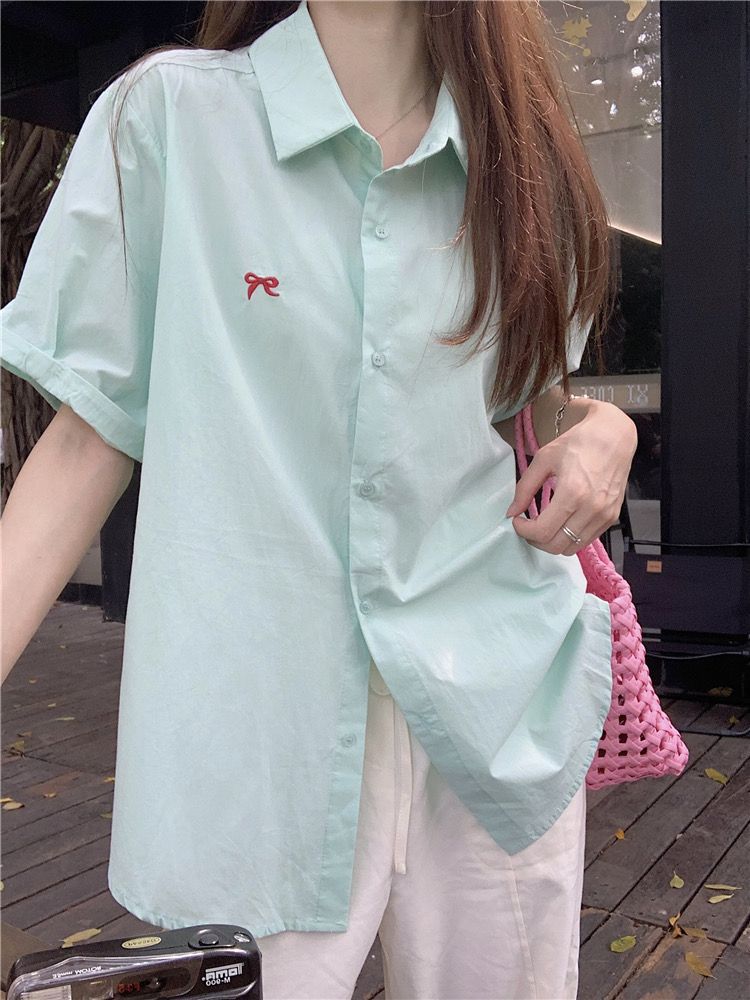 플러스 사이즈 반팔 셔츠 여성의 여름 느슨한 육체 커버 슬리밍 탑 통통한 여성 디자인 센스 도파민 선 스크린 셔츠스토어 가기
