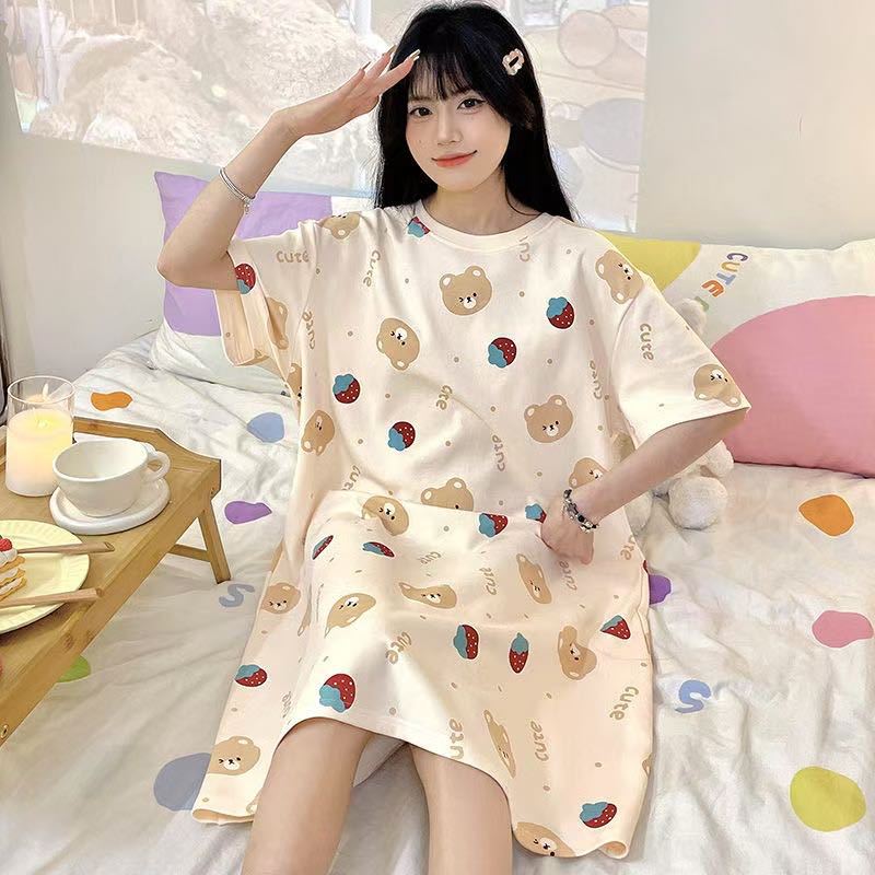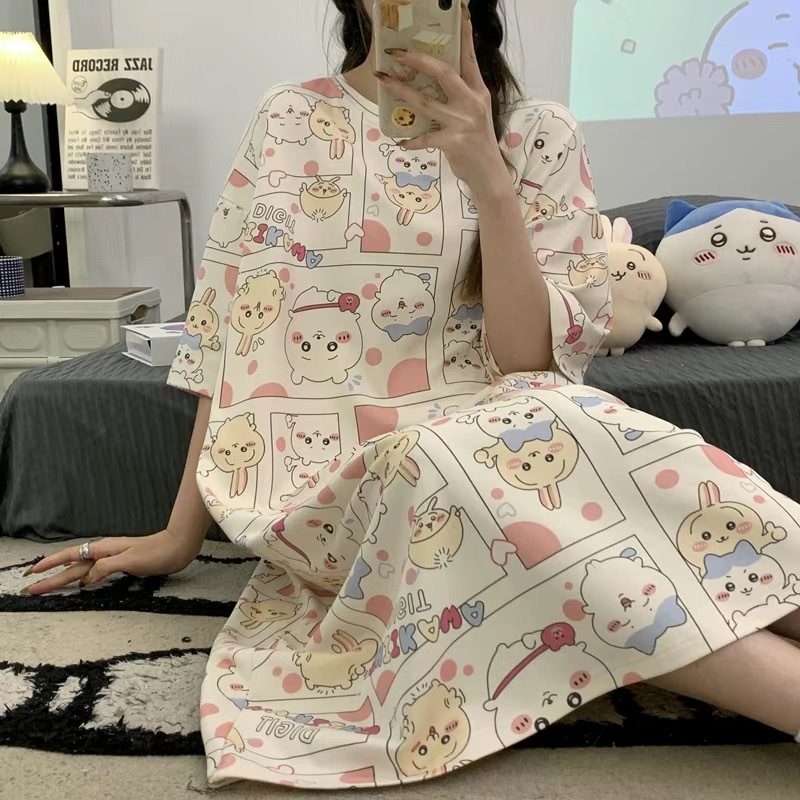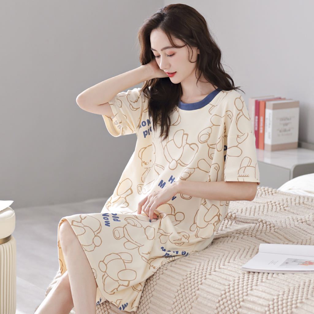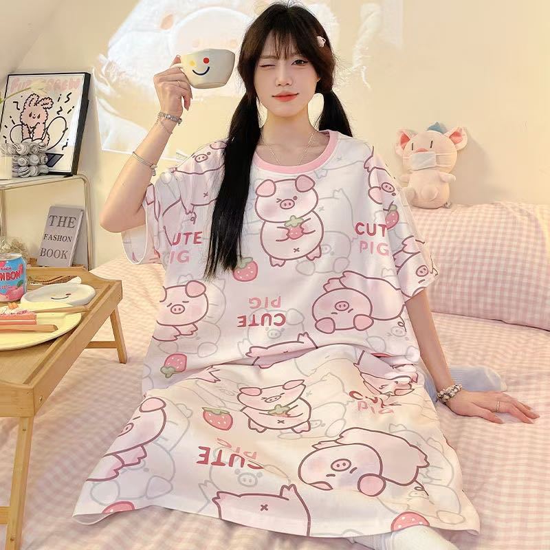 공장 아울렛 대외 무역 팻 가이 나이트 가운 여름 크로스 국경 나이트 가운 긴 임산부 달콤한 홈 옷 여성용 루즈스토어 가기