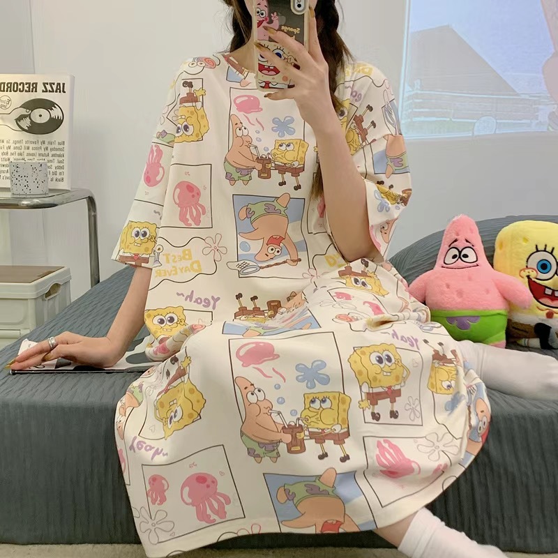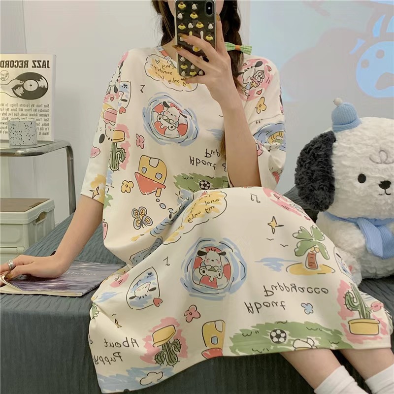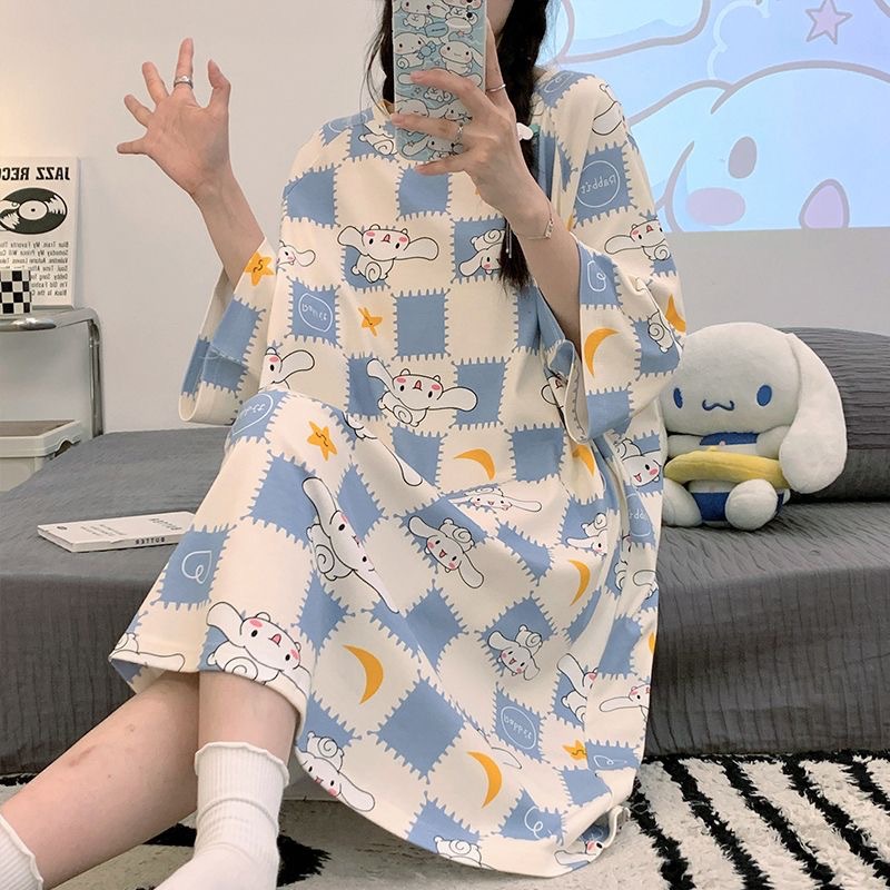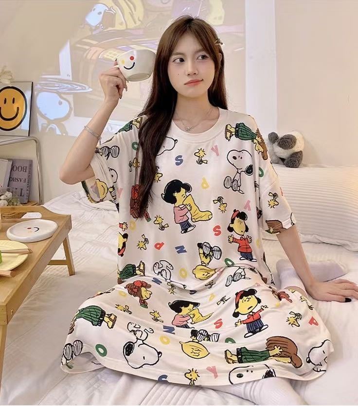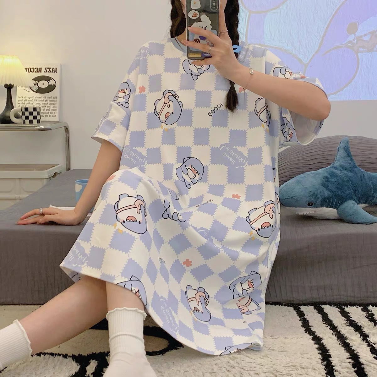 공장 아울렛 대외 무역 팻 가이 나이트 가운 여름 크로스 국경 나이트 가운 긴 임산부 달콤한 홈 옷 여성용 루즈스토어 가기