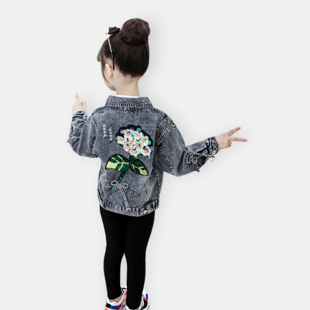 여자 한국식 데님 코트 가을 2025 새로운 여자 서양식 패션 입체 꽃 탑 어린이 자켓 조수