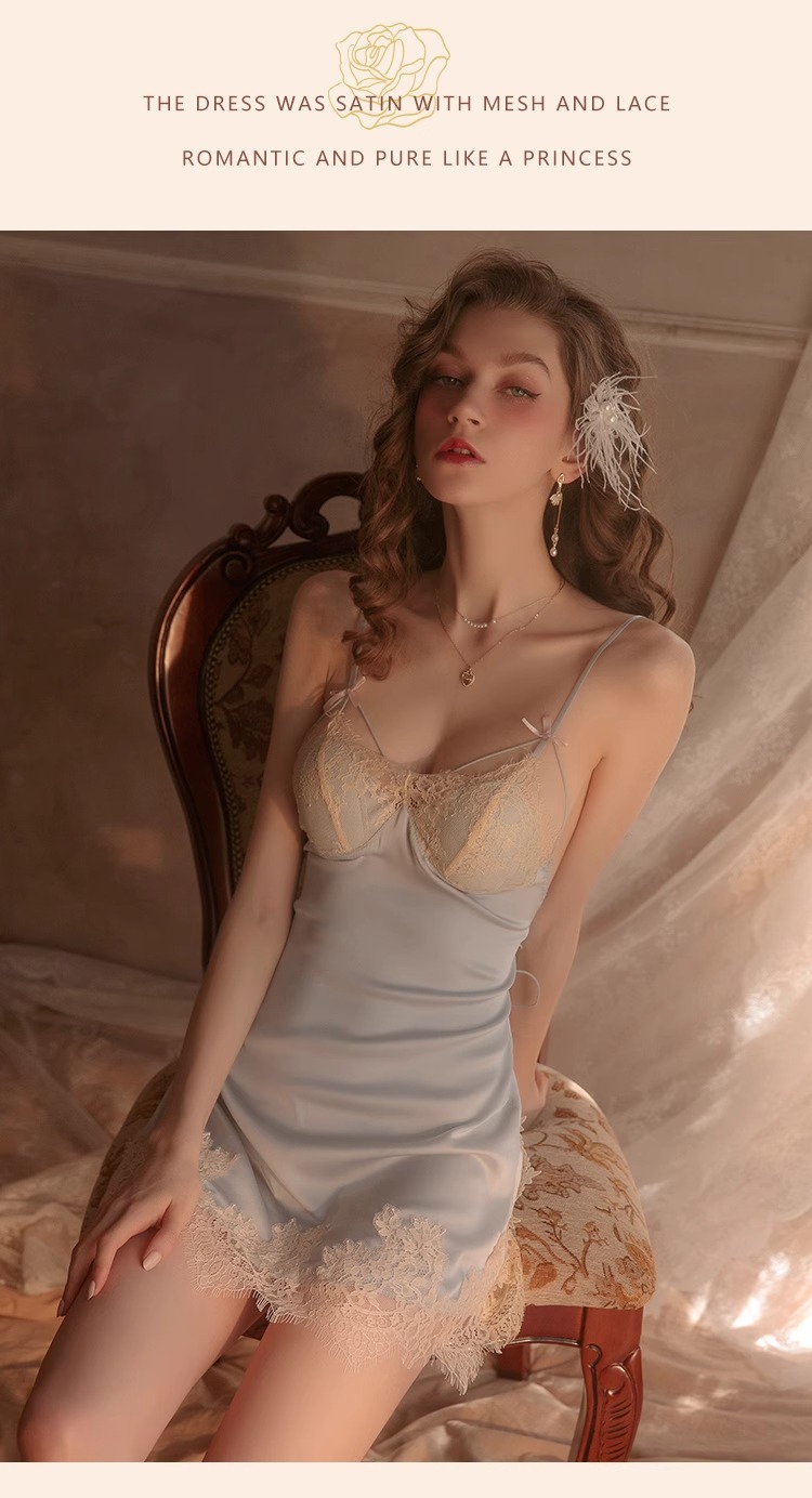 상샤오루 섹시 잠옷 여성용 가을 겨울 초핫 얇은 스타일 순수한 매력 레이스 패드가 있는 슬립 잠옷 여름 고급스러운 느낌