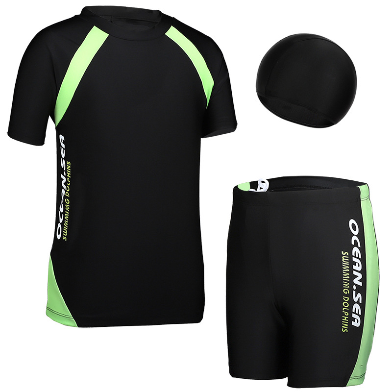 남아용 수영복 3피스 바지 및 모자 플러스 사이즈 뚱뚱한 어린이 자외선 차단제 속건성 청소년 소년 소년 수영복스토어 가기