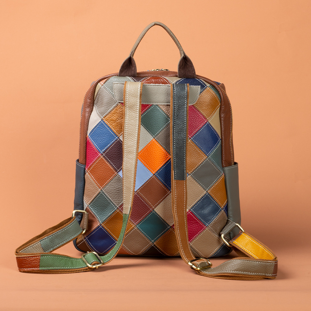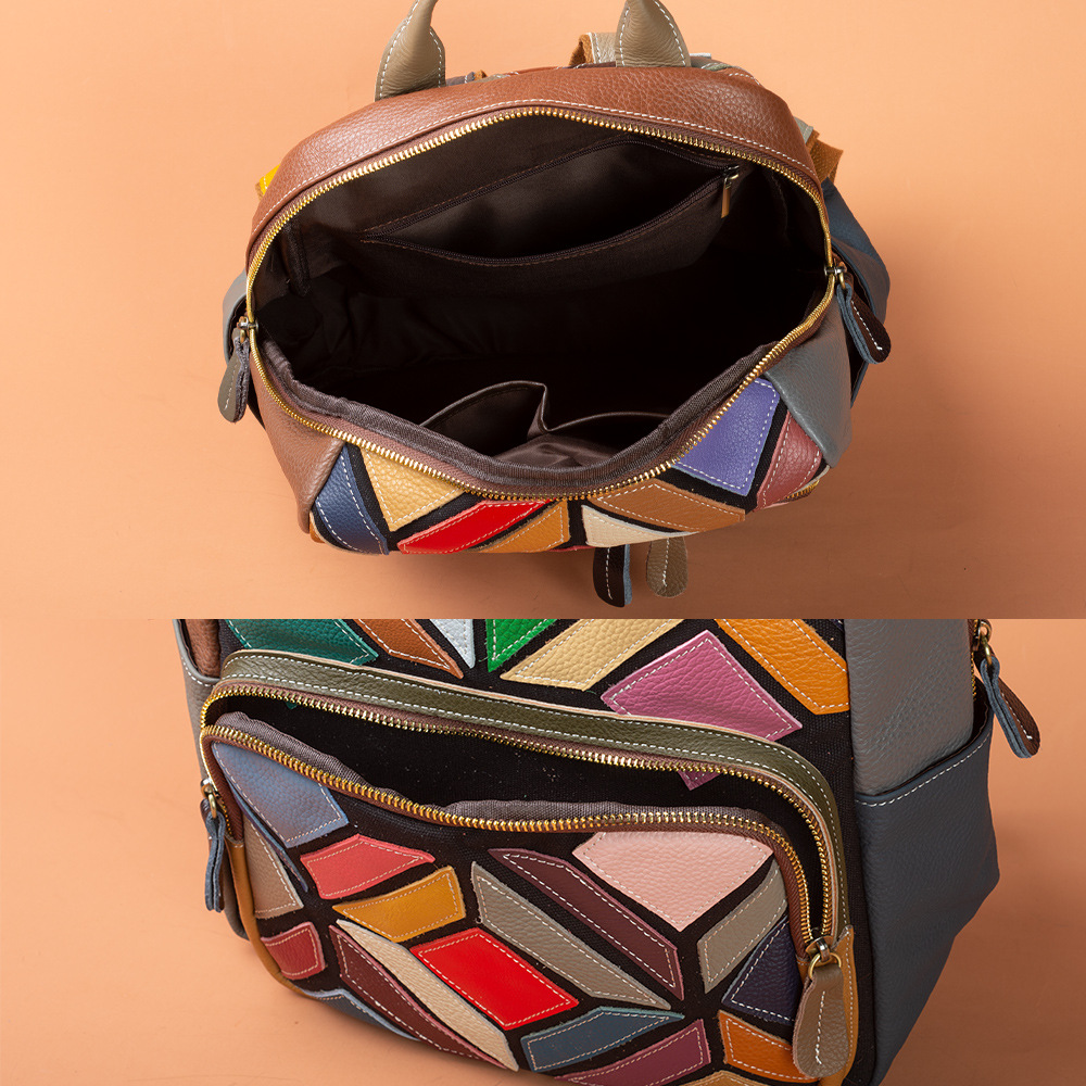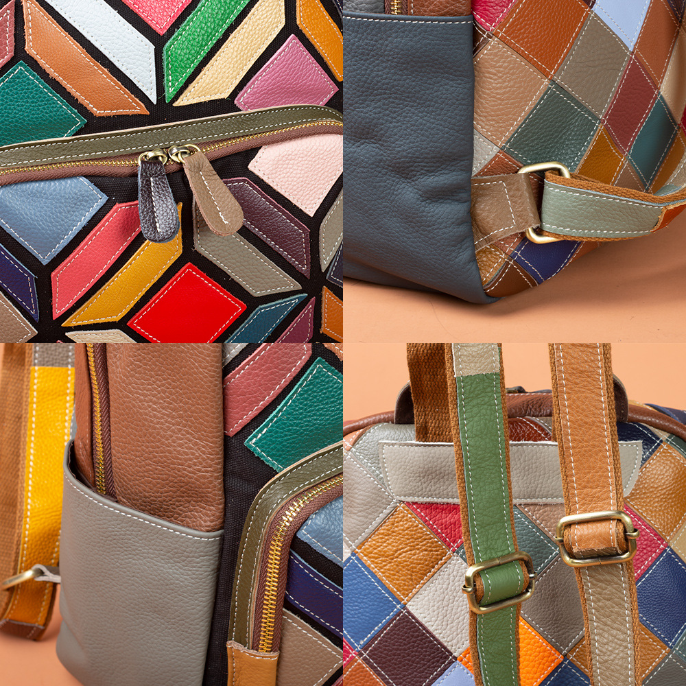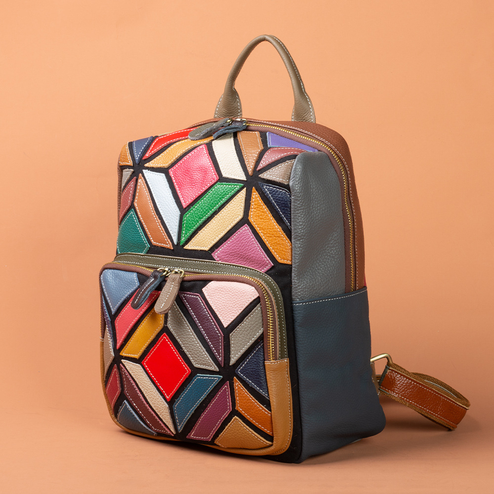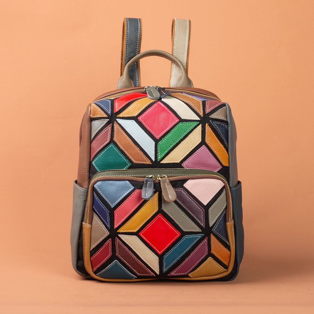 새로운 가죽 여성 가방 다채로운 캐주얼 보헤미안 기하학적 패턴 대비 컬러 캐주얼 여성 배낭 배낭