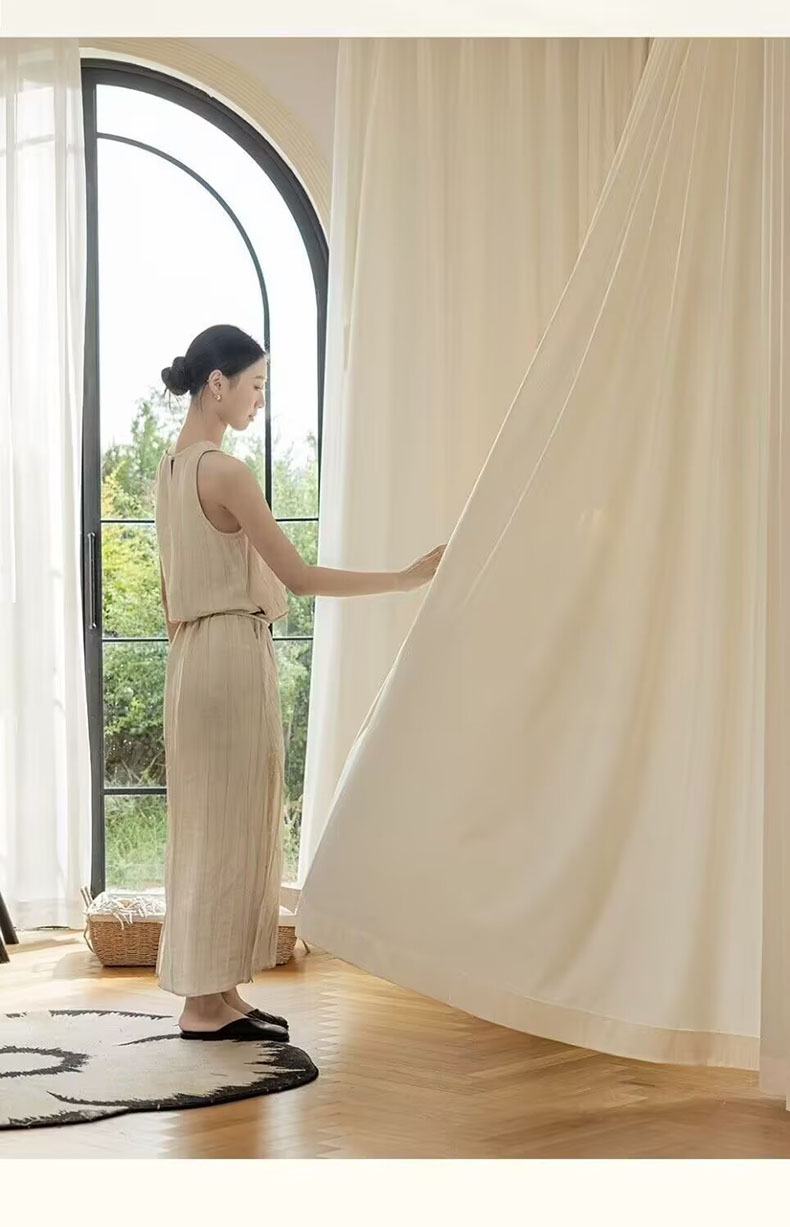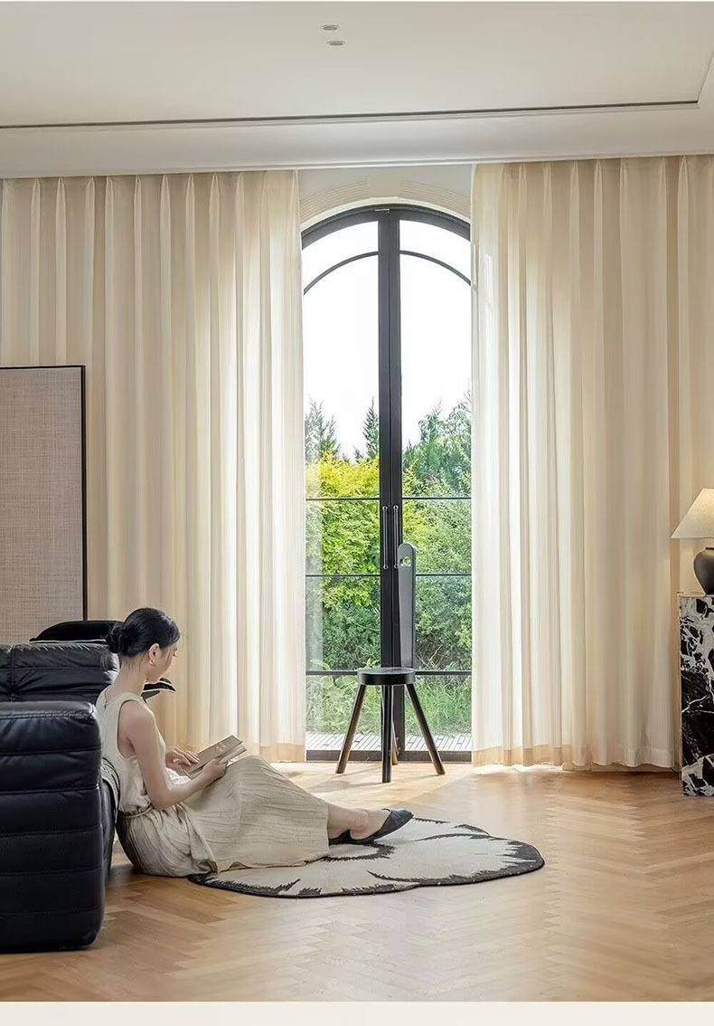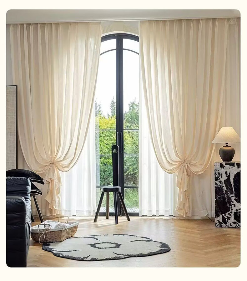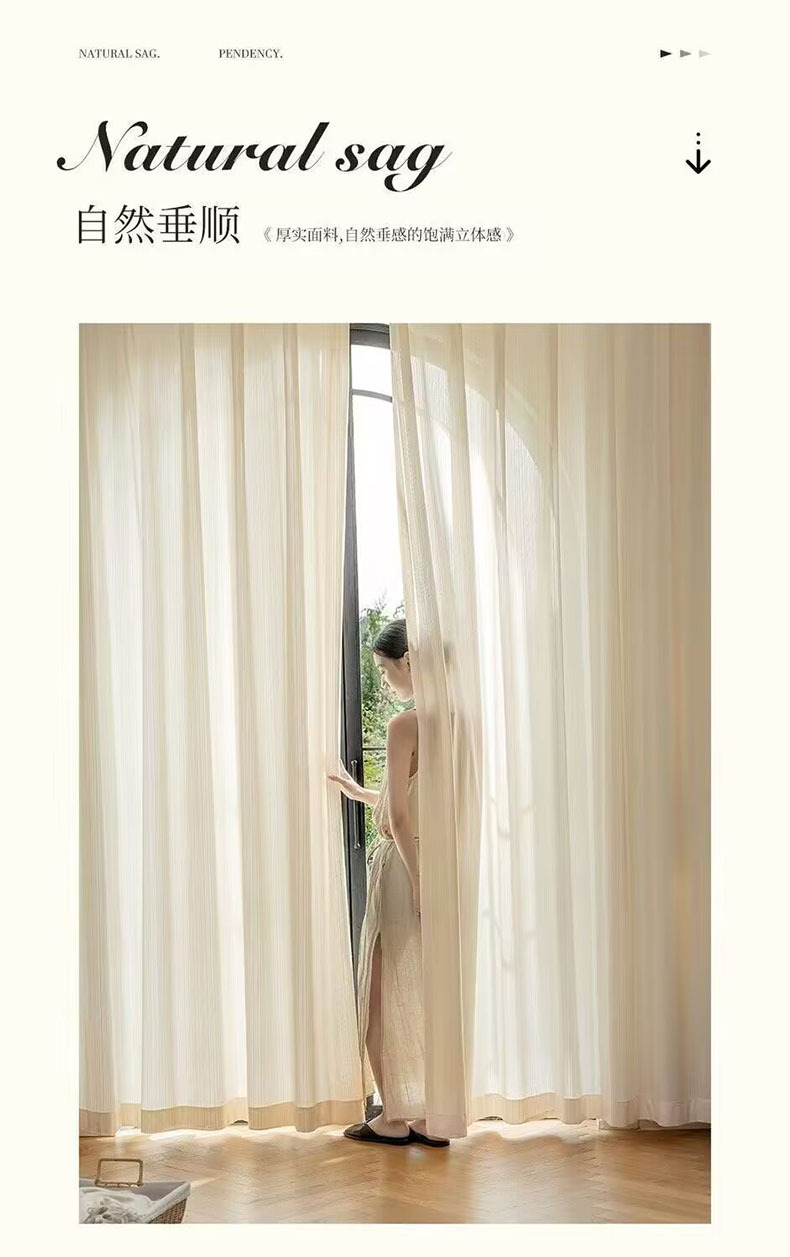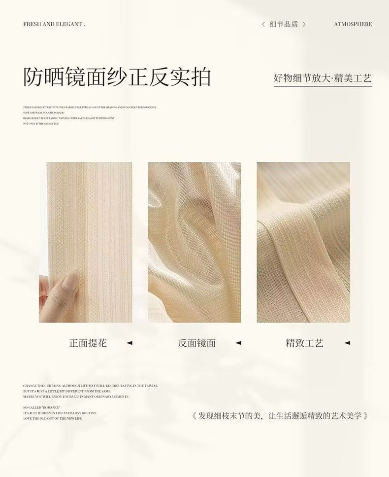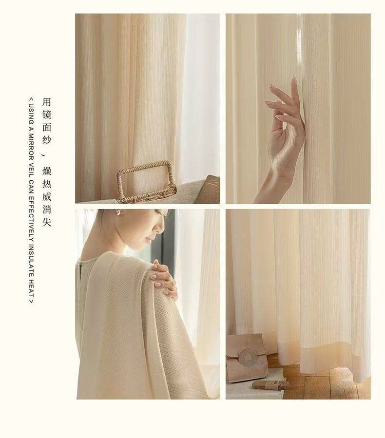 프렌치 크림 미러 베일 커튼, 자외선 차단 커튼, 침실, 거실, 베드벤치 창, 발코니 창 스크린, 불투명 단열 스크린