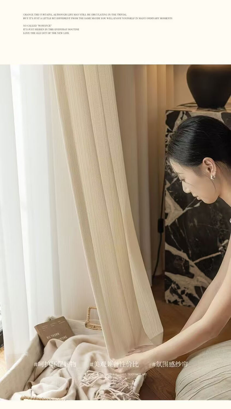 프렌치 크림 미러 베일 커튼, 자외선 차단 커튼, 침실, 거실, 베드벤치 창, 발코니 창 스크린, 불투명 단열 스크린스토어 가기