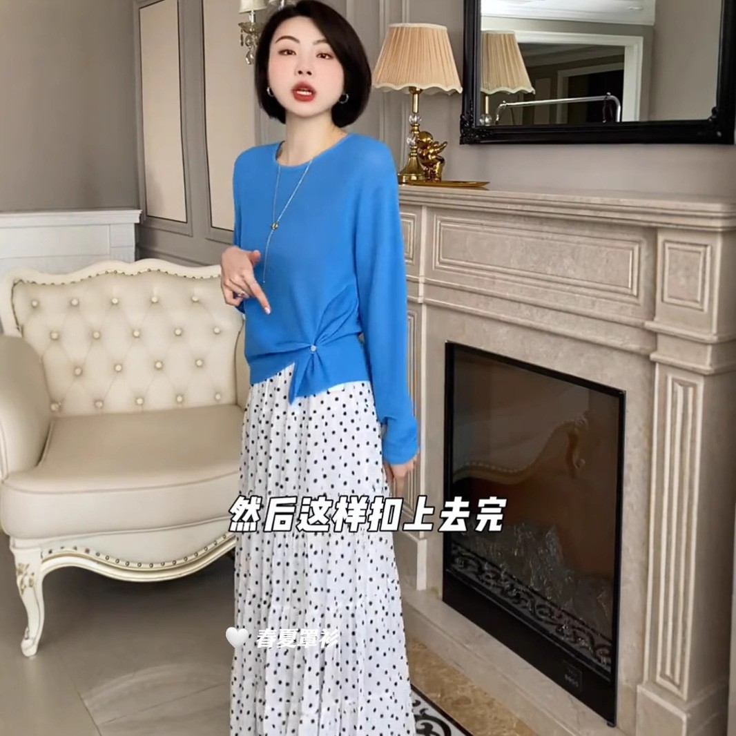 • 【블루】니트 긴소매