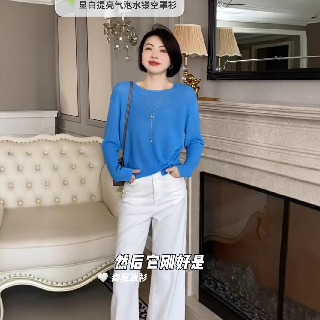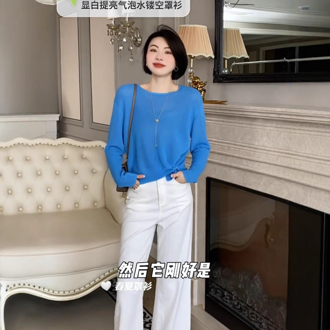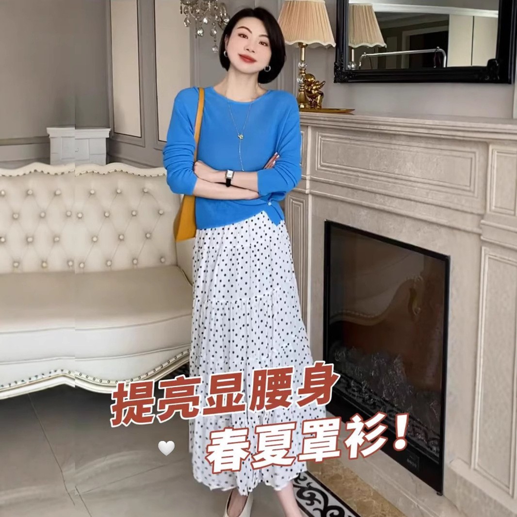 [니트 스웨터] 봄과 여름 단색 크루 넥 터틀넥 착용 간단한 얇은 니트 긴 소매 재킷 99408스토어 가기