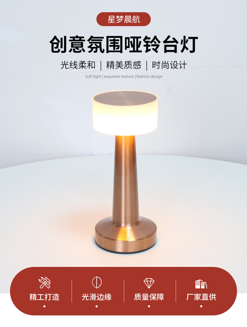 크리 에이 티브 북유럽 현대 침대 옆 바 침실 USB 충전 터치 철 아트 덤벨 테이블 램프 야간 조명 분위기