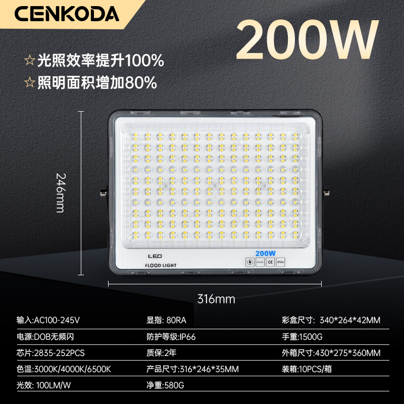 공장 직접 메인 LED 홍수 빛 100W 야외 방수 홍수 빛 200W 밝은 넓은 압력 프로젝션 빛스토어 가기
