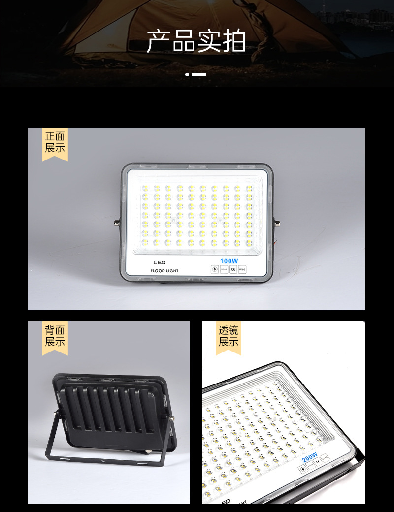 공장 직접 메인 LED 홍수 빛 100W 야외 방수 홍수 빛 200W 밝은 넓은 압력 프로젝션 빛