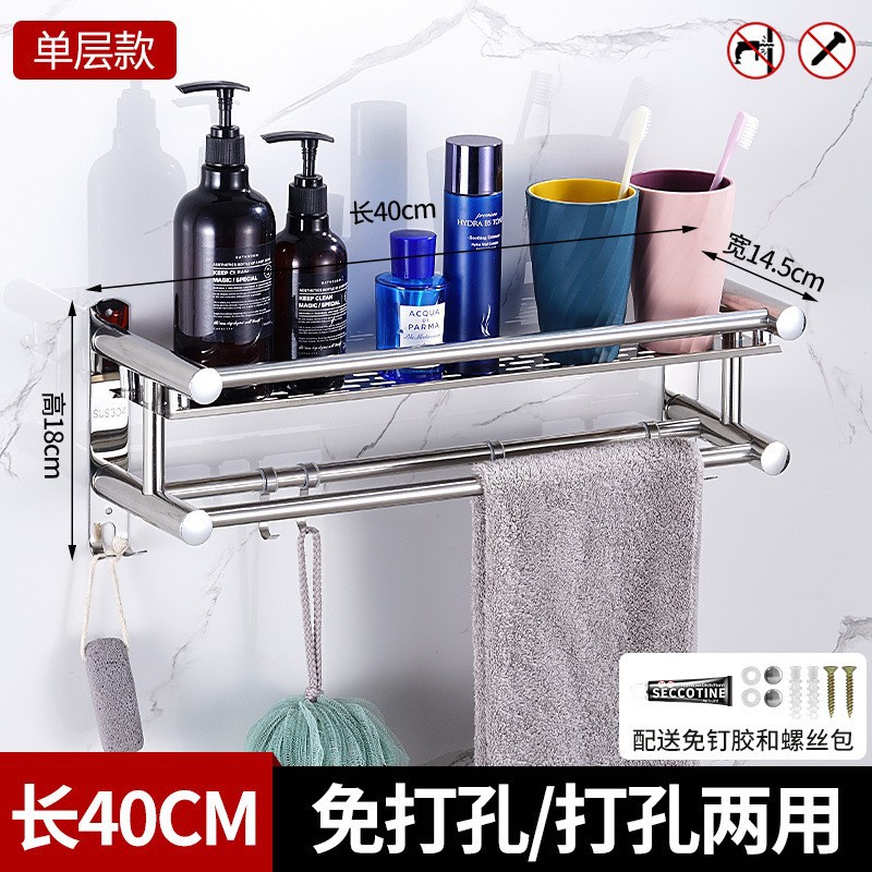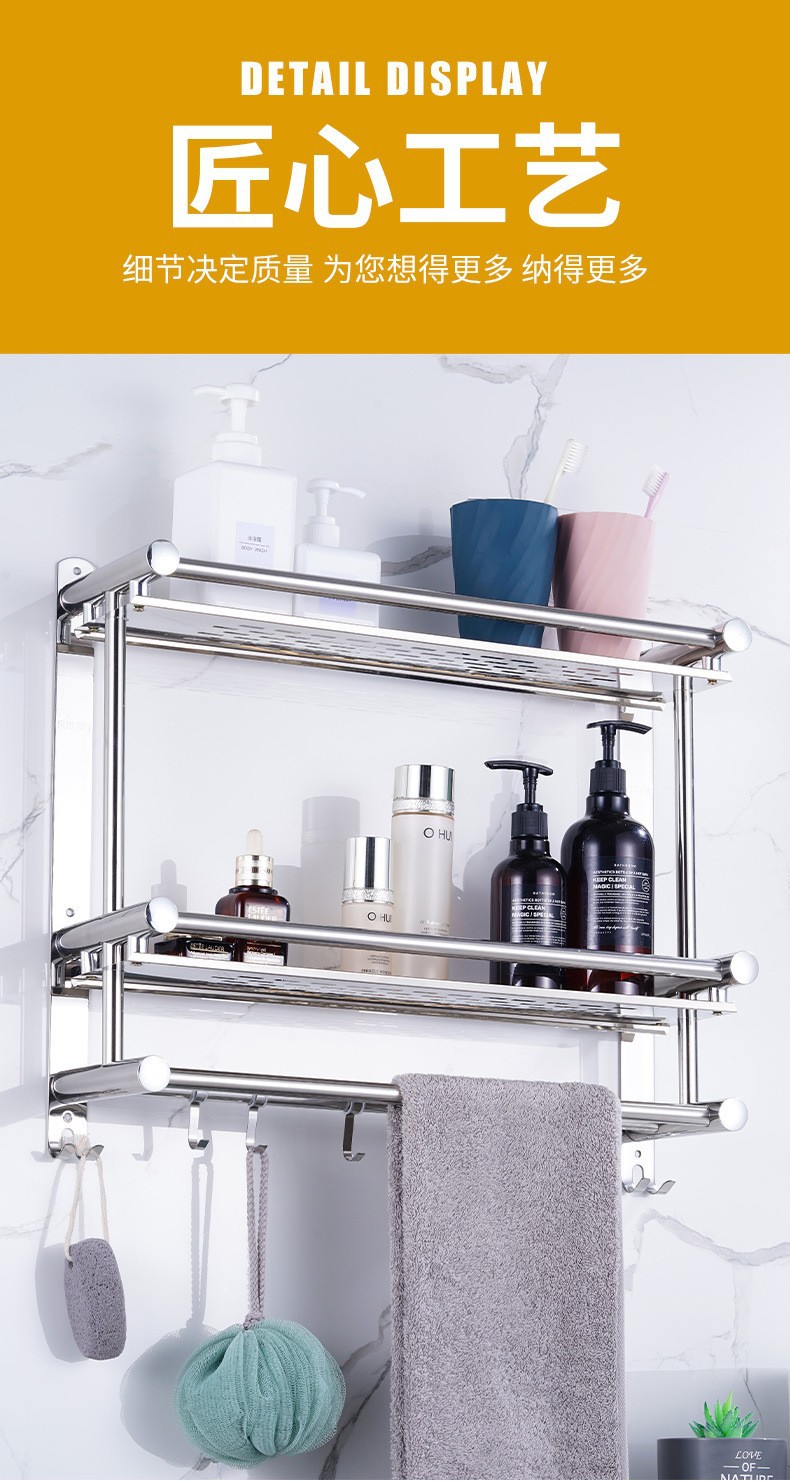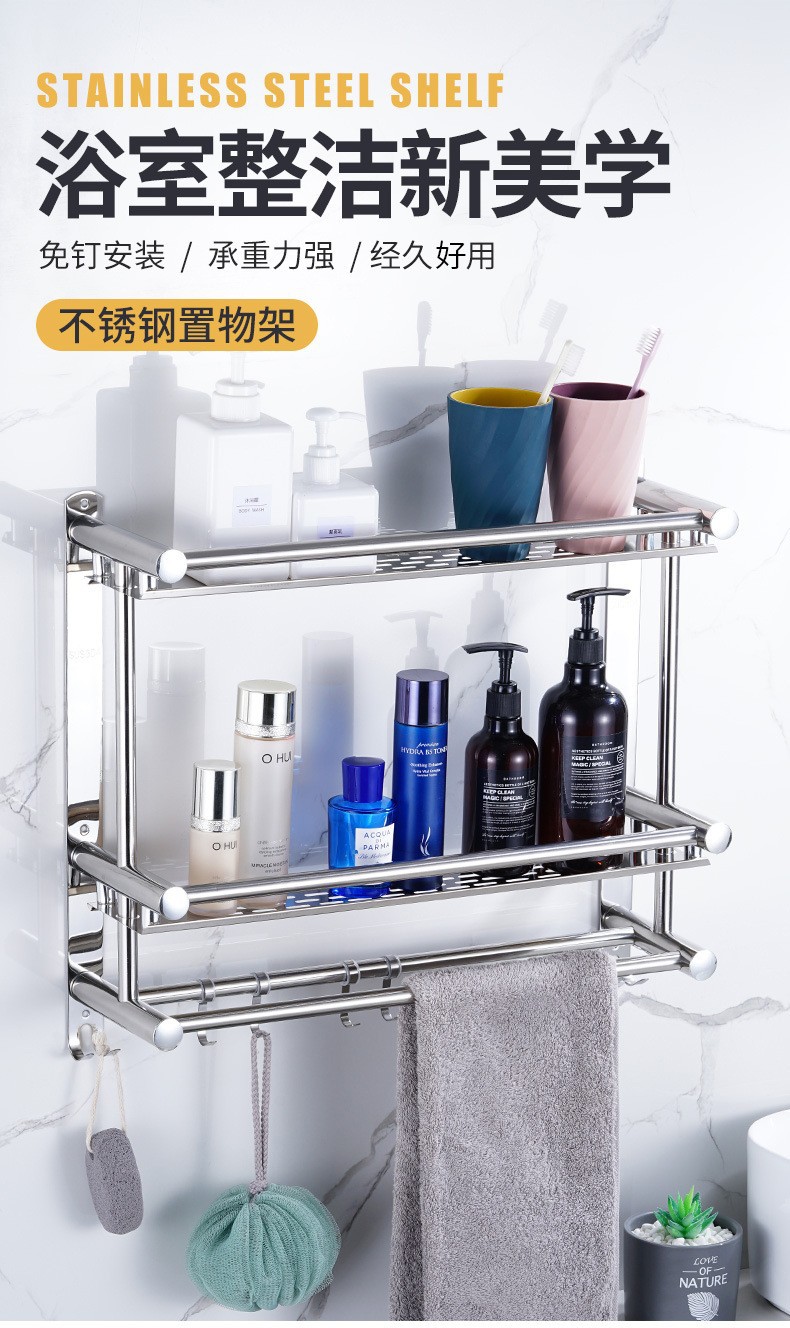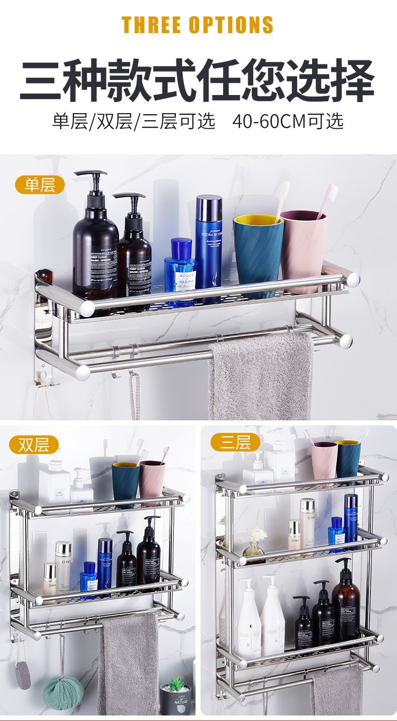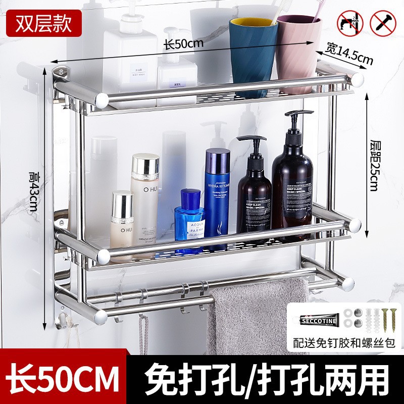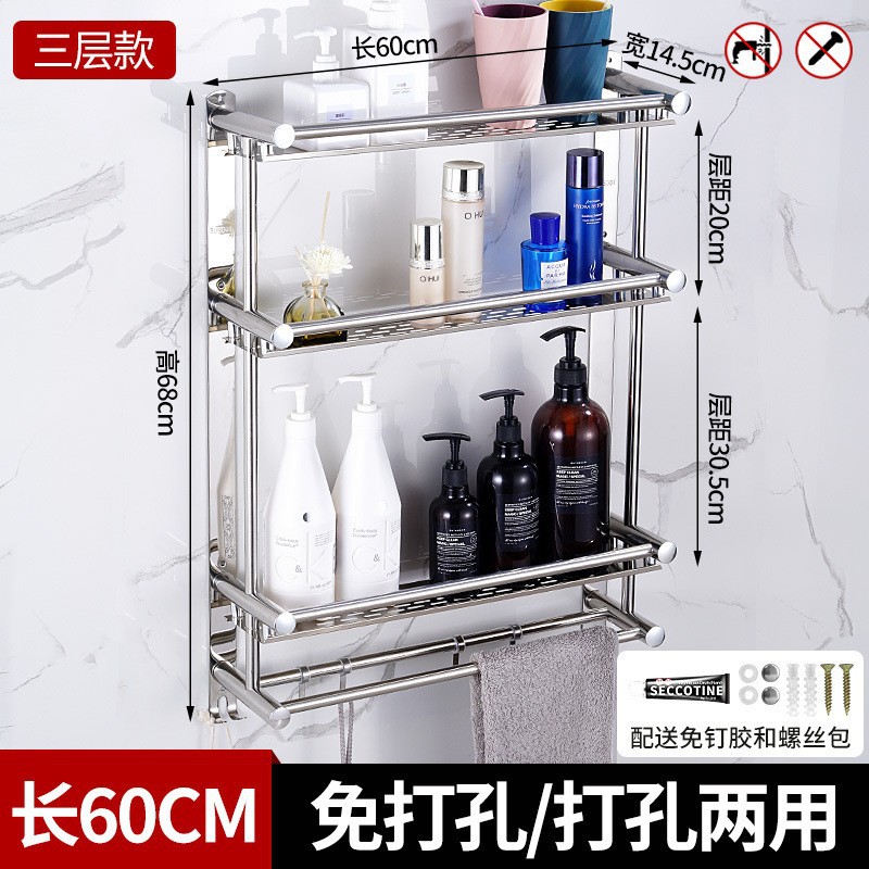 욕실 스테인레스 스틸 3층 수납 선반, 펀치 없는 2층 수납 선반, 욕실 2층 목욕 수건 선반, 벽걸이형스토어 가기