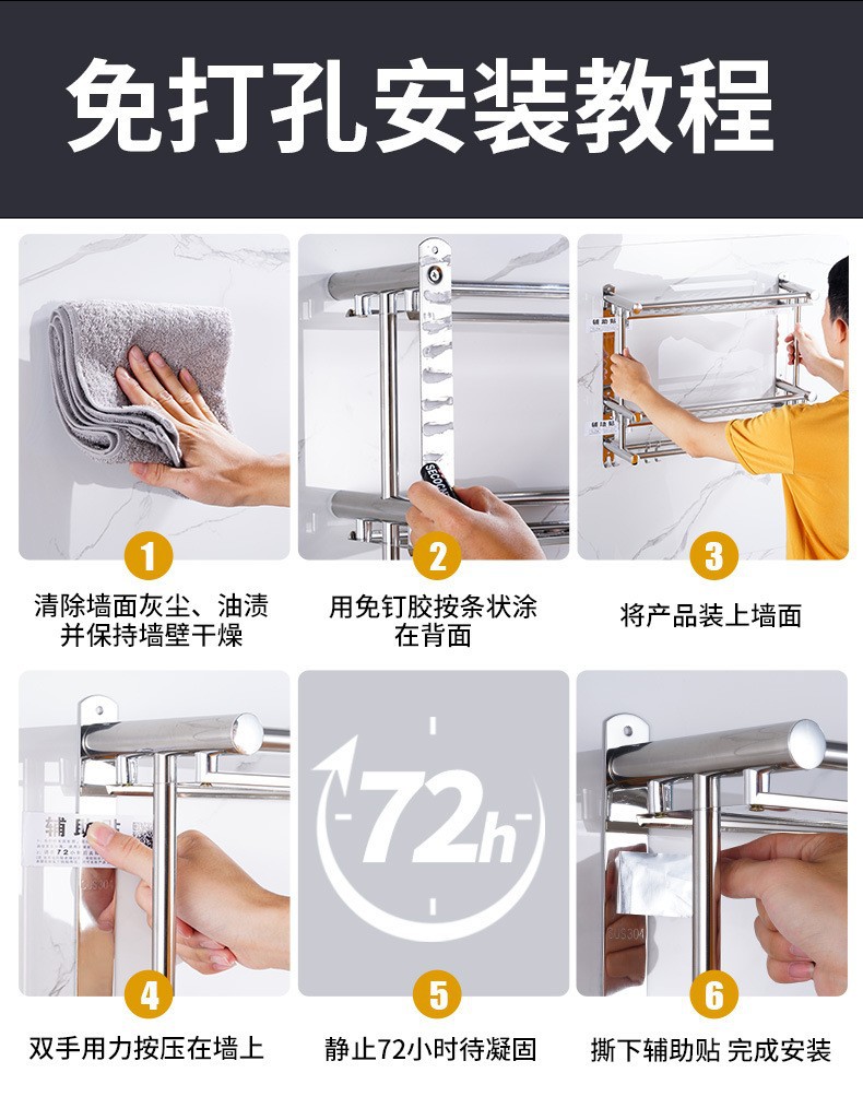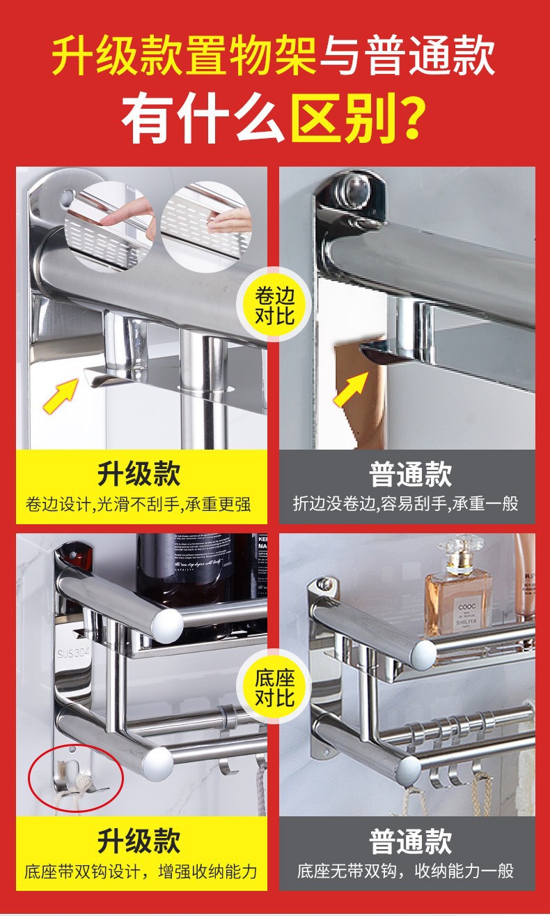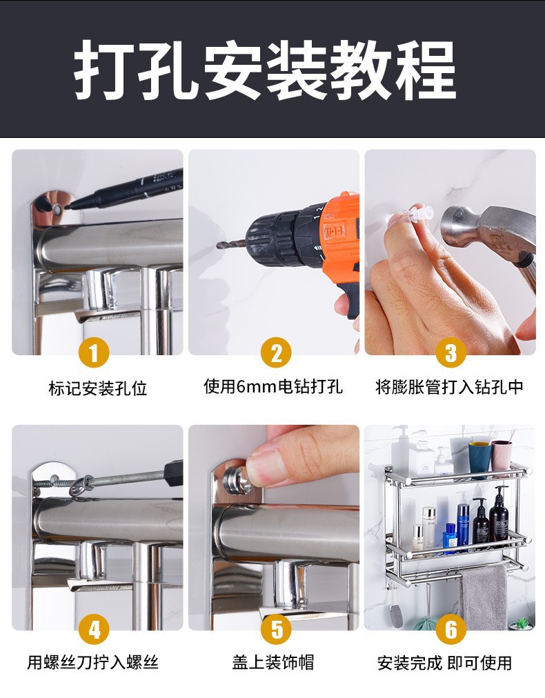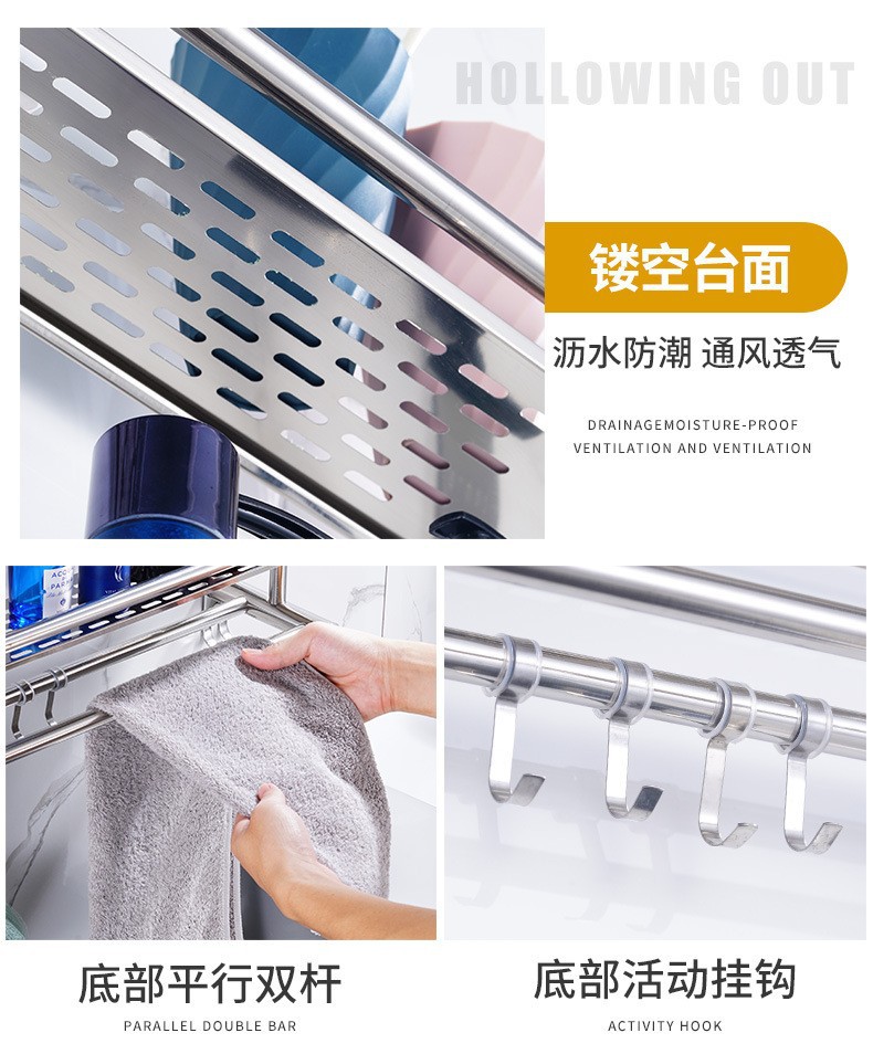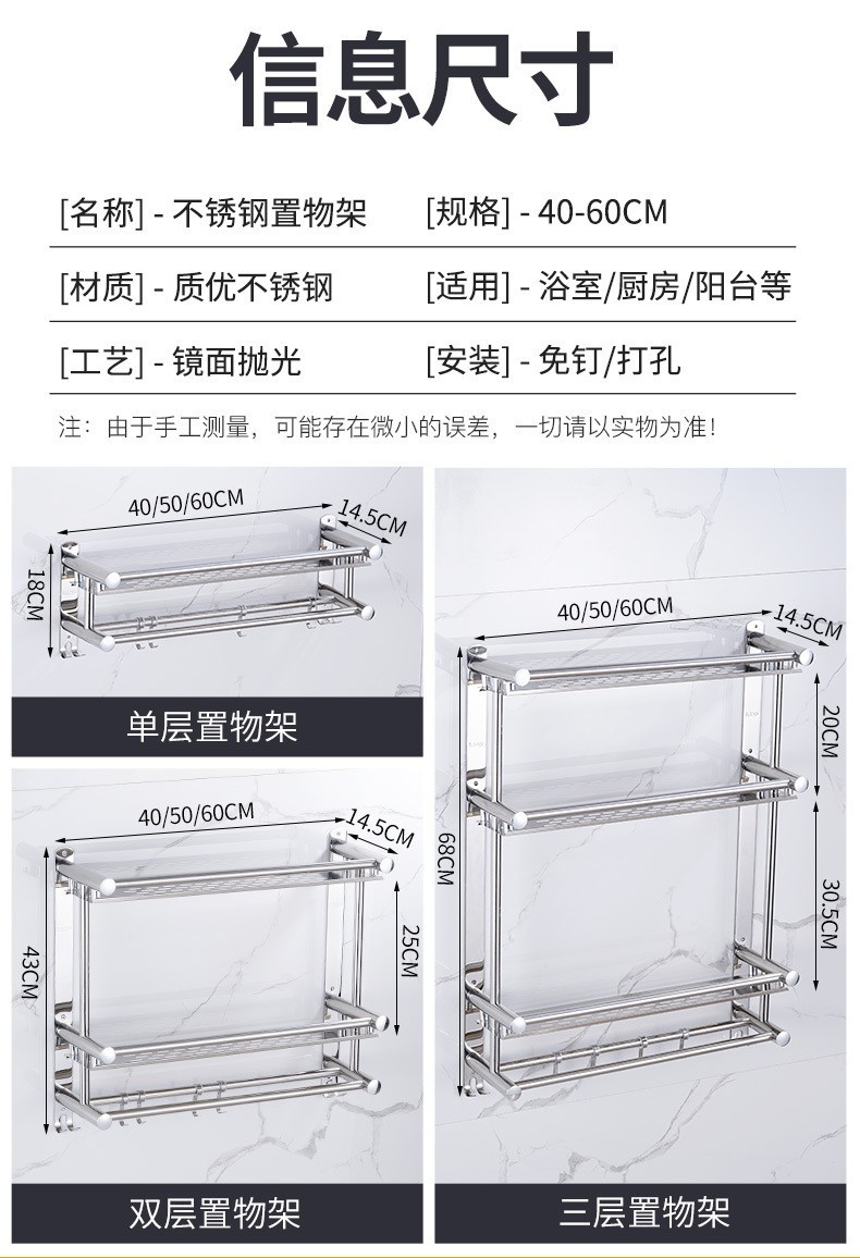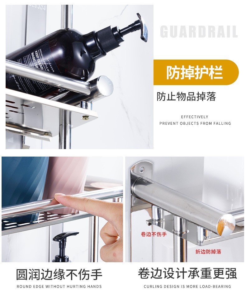 욕실 스테인레스 스틸 3층 수납 선반, 펀치 없는 2층 수납 선반, 욕실 2층 목욕 수건 선반, 벽걸이형스토어 가기