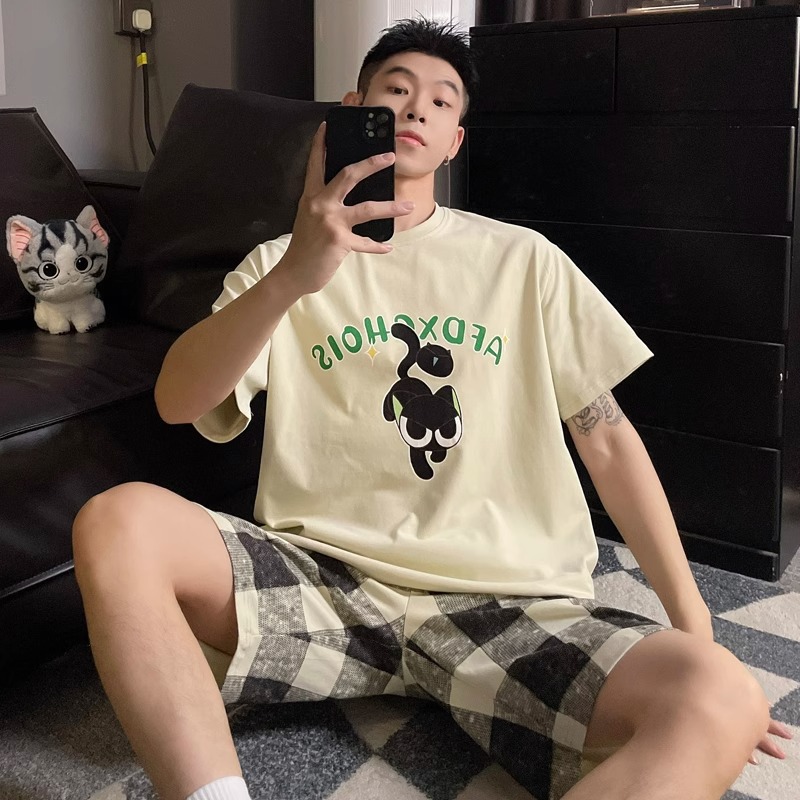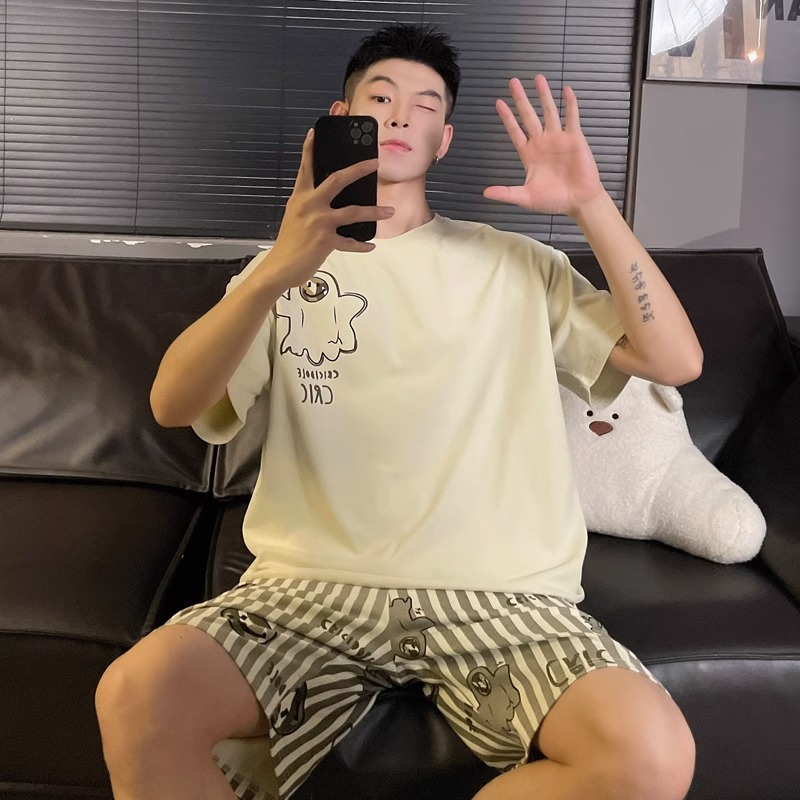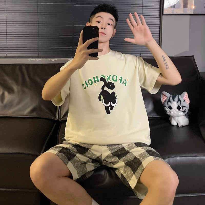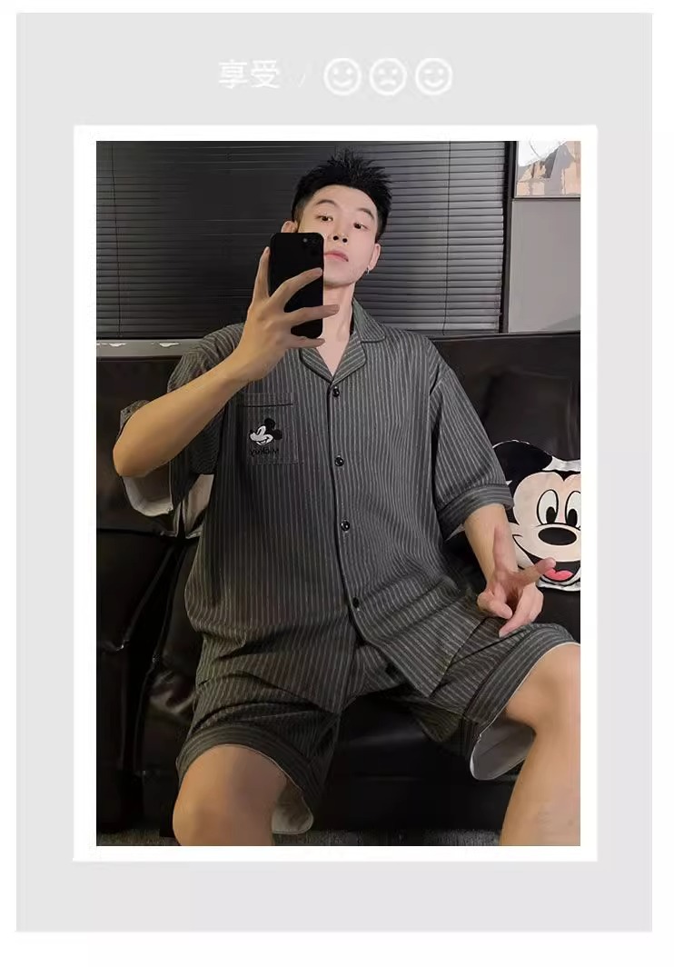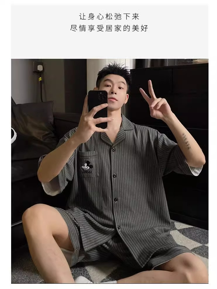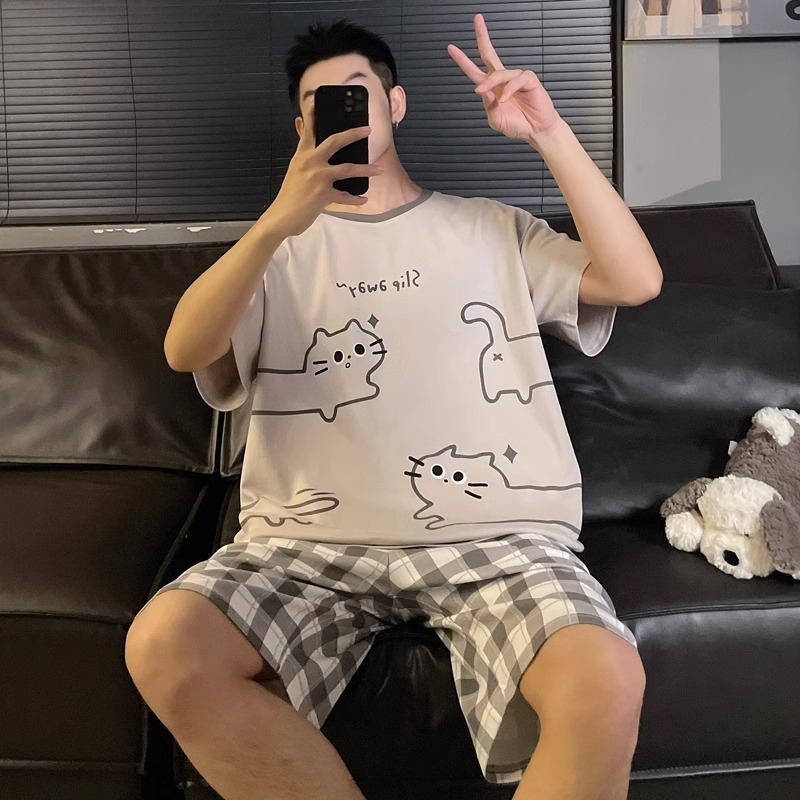 2025 새로운 뚱뚱한 잠옷 플러스 사이즈 뚱뚱한 남자의 얇은 순수한 짧은 소매면 세트 뚱뚱한 남자 초대형 5XL스토어 가기