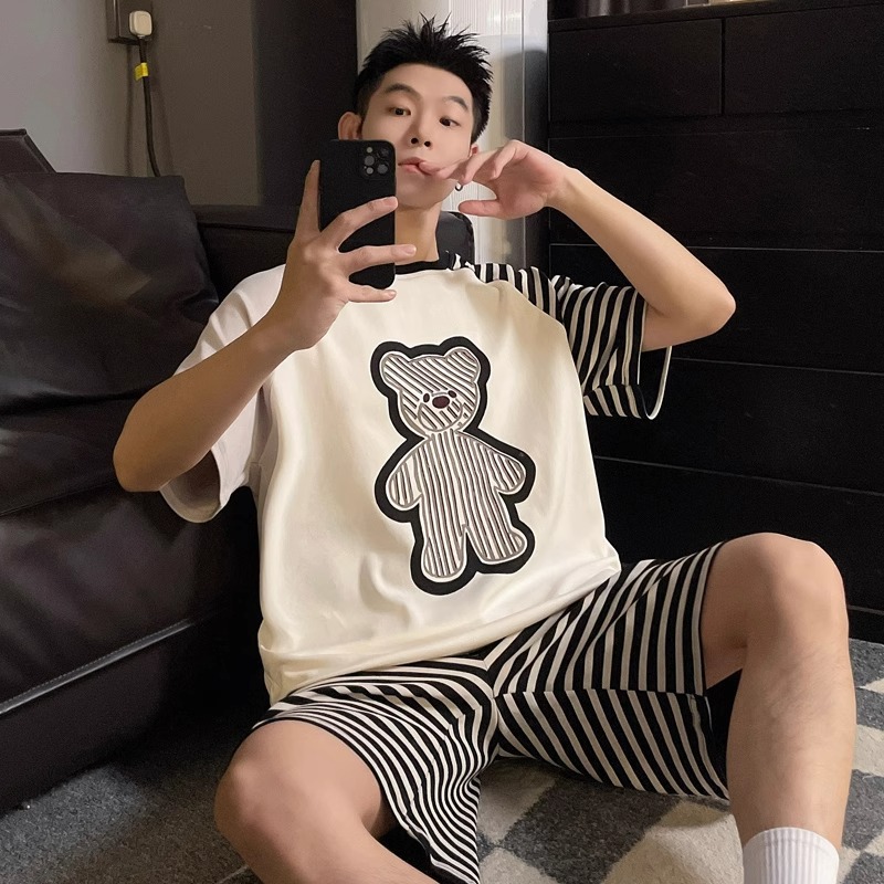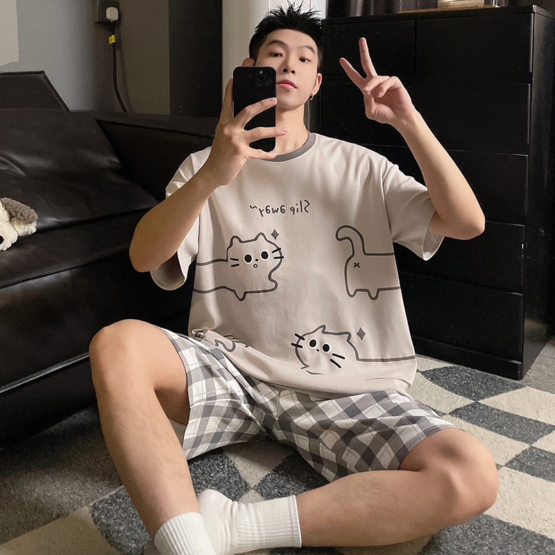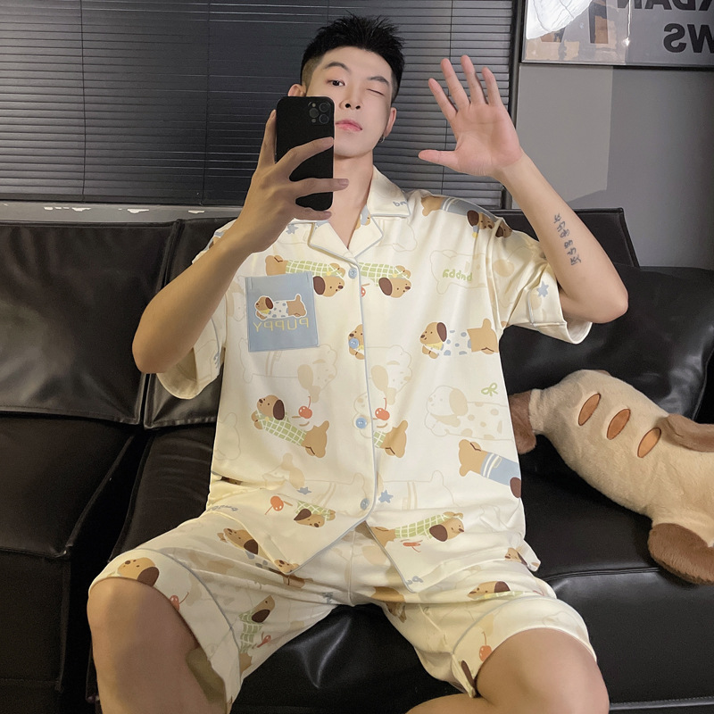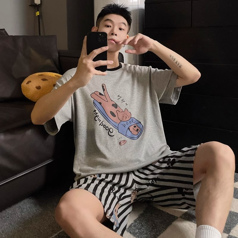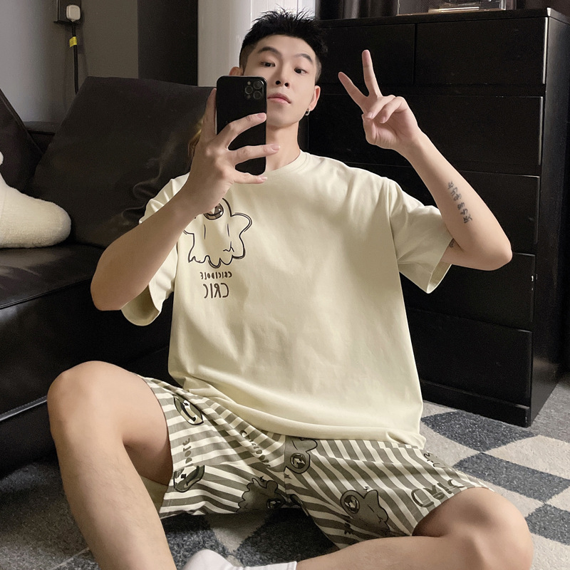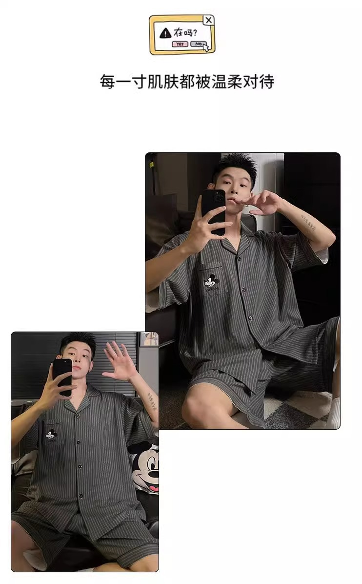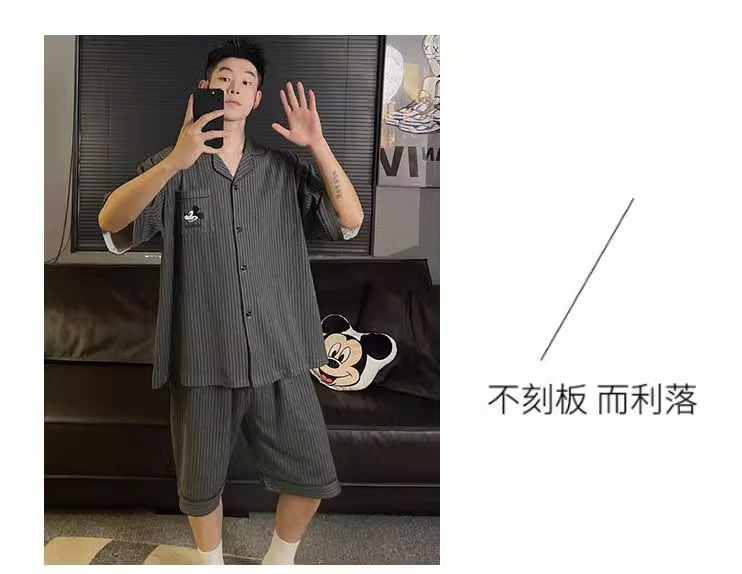2025 새로운 뚱뚱한 잠옷 플러스 사이즈 뚱뚱한 남자의 얇은 순수한 짧은 소매면 세트 뚱뚱한 남자 초대형 5XL스토어 가기