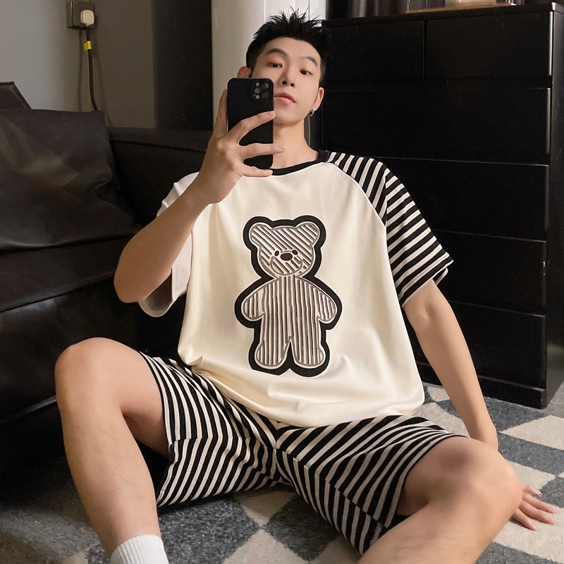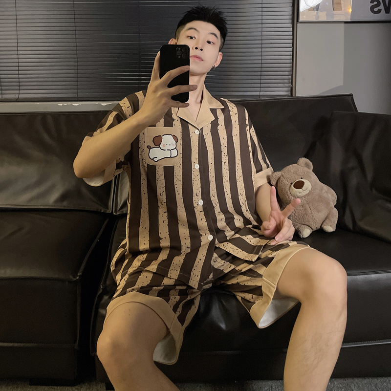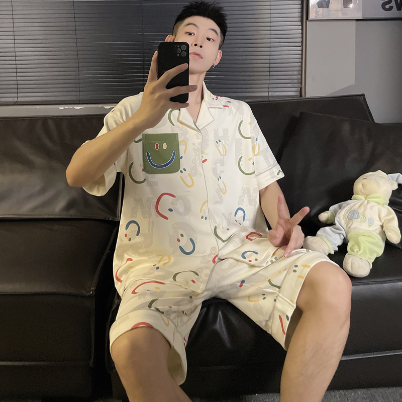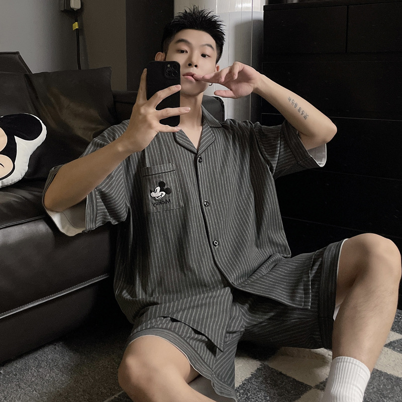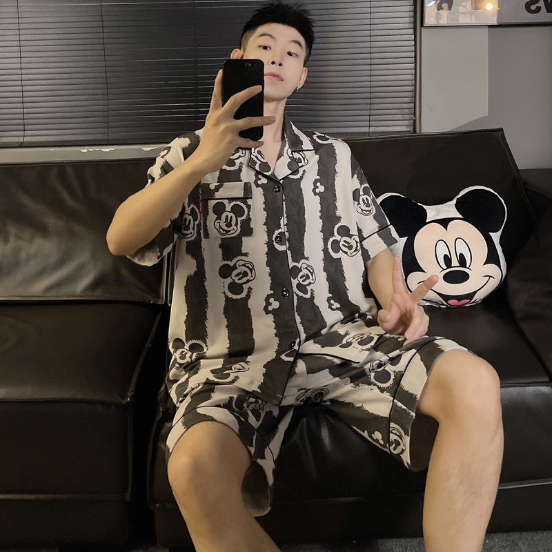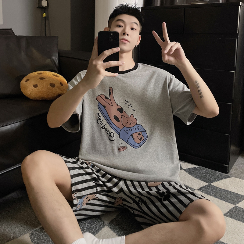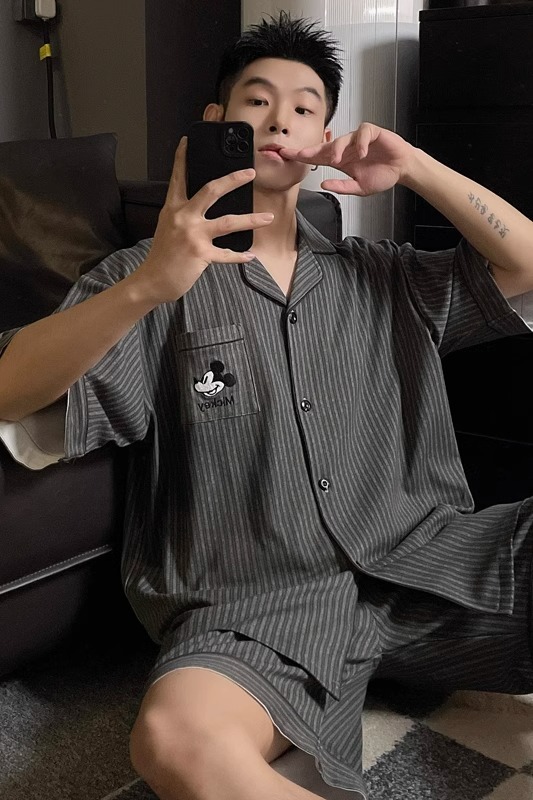 2025 새로운 뚱뚱한 잠옷 플러스 사이즈 뚱뚱한 남자의 얇은 순수한 짧은 소매면 세트 뚱뚱한 남자 초대형 5XL스토어 가기