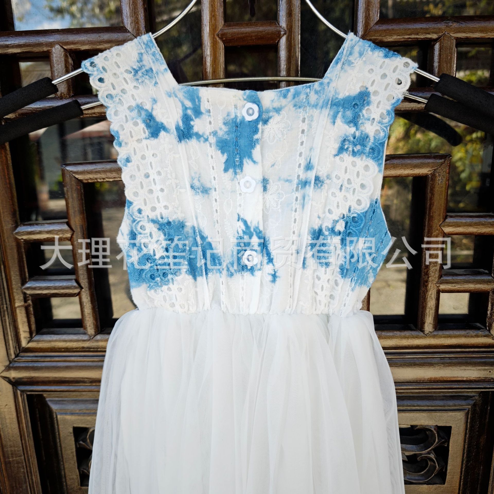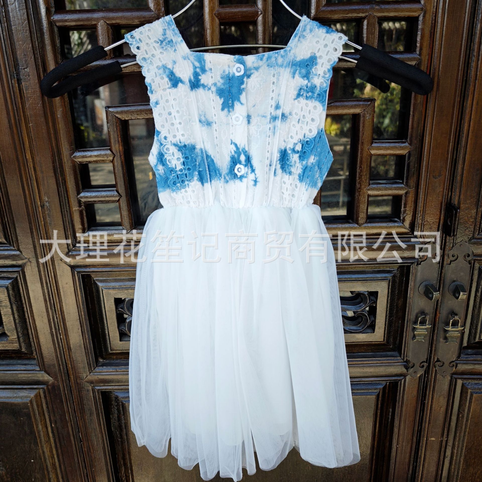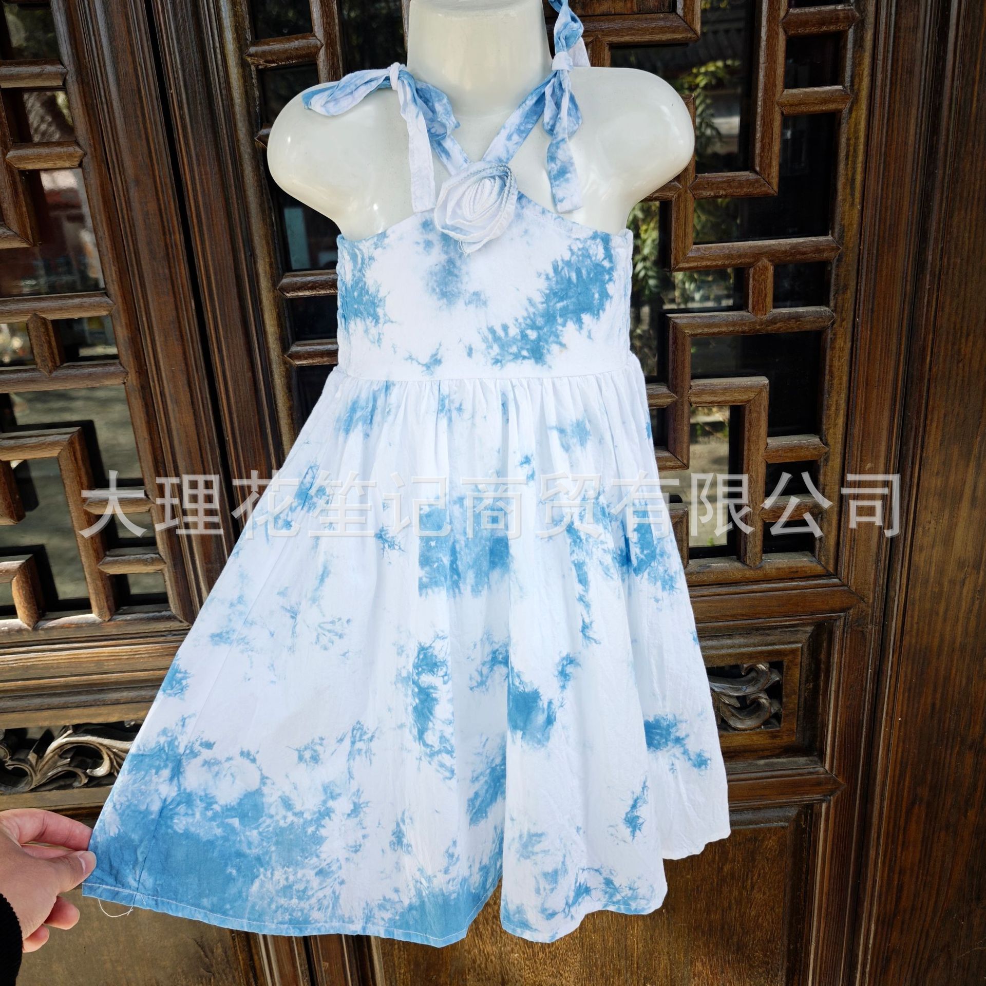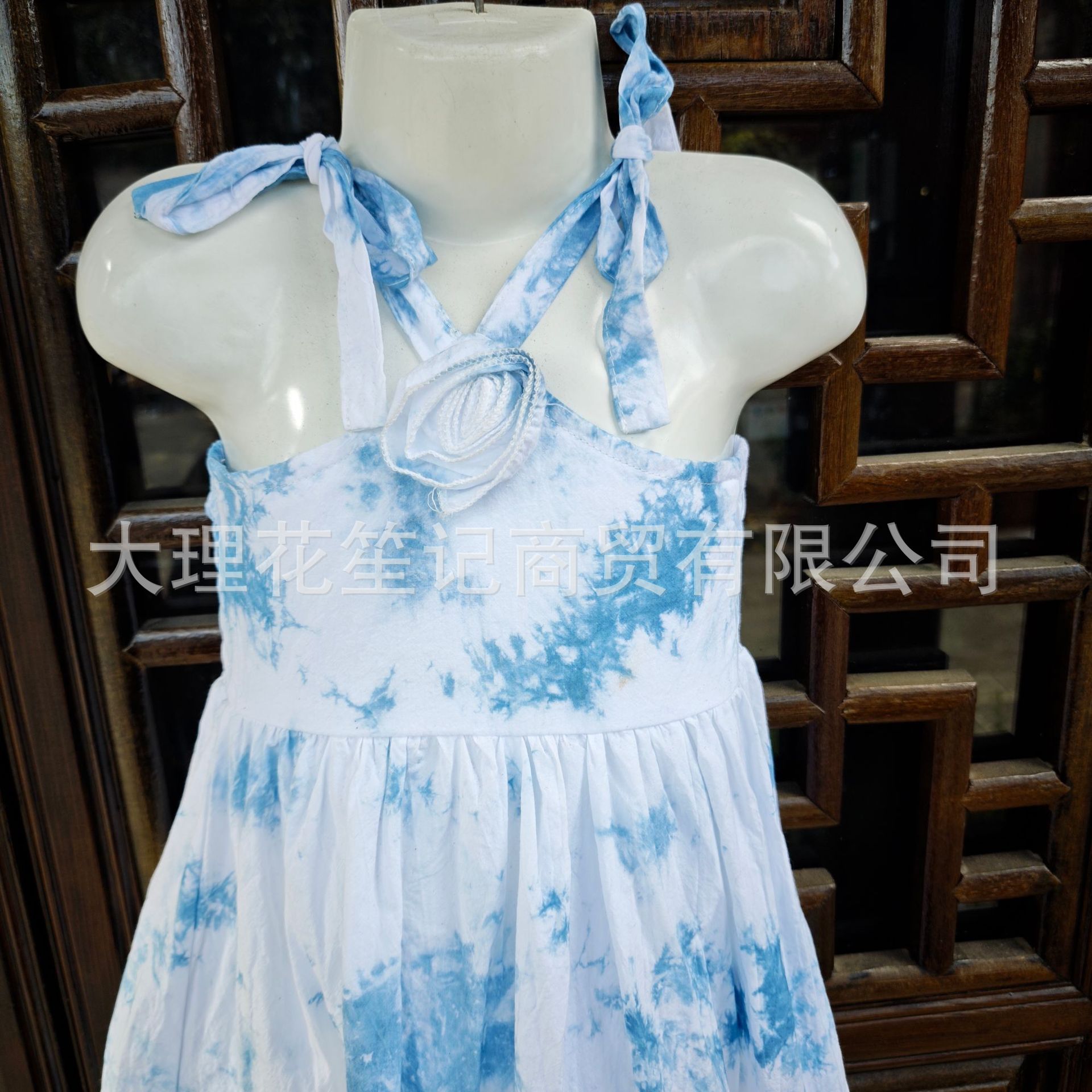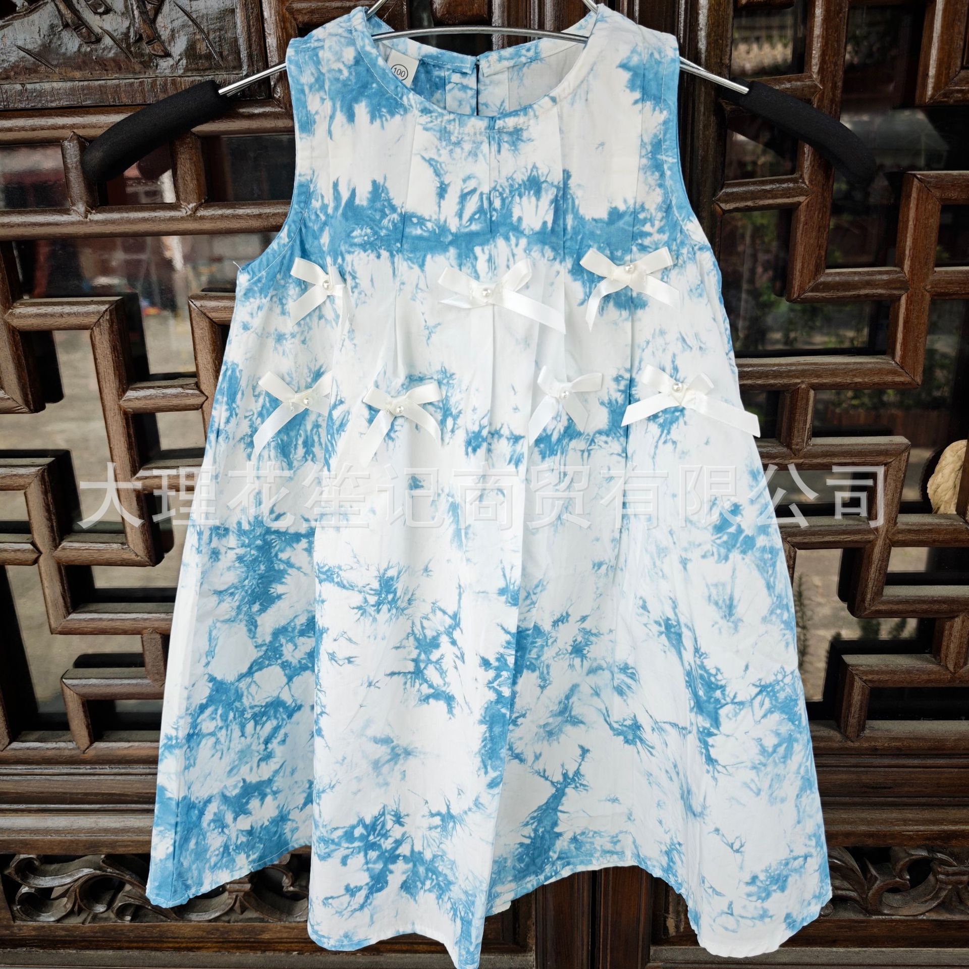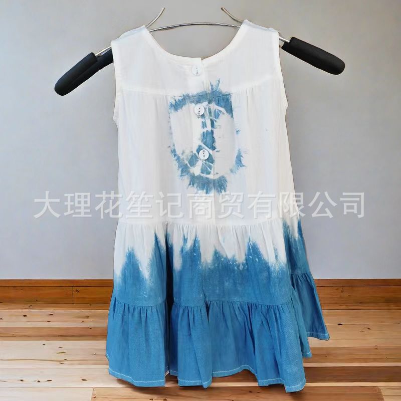 순수 천연 달리 수제 타이-염료 여름 민족 스타일 소녀의 원피스 여행 휴일 블루 다이 민소매 어린이 치마스토어 가기
