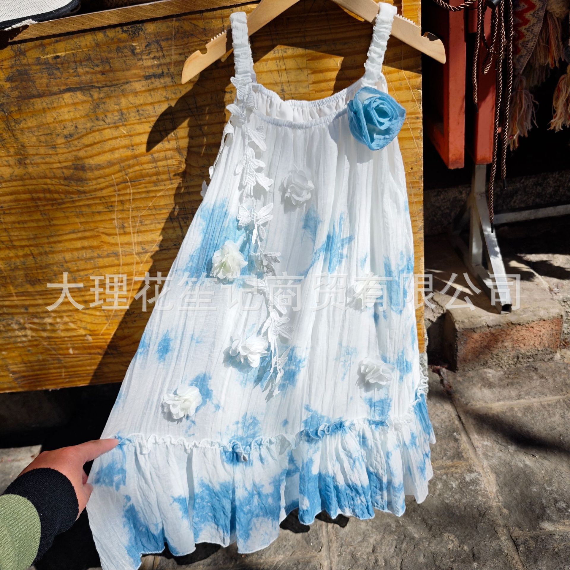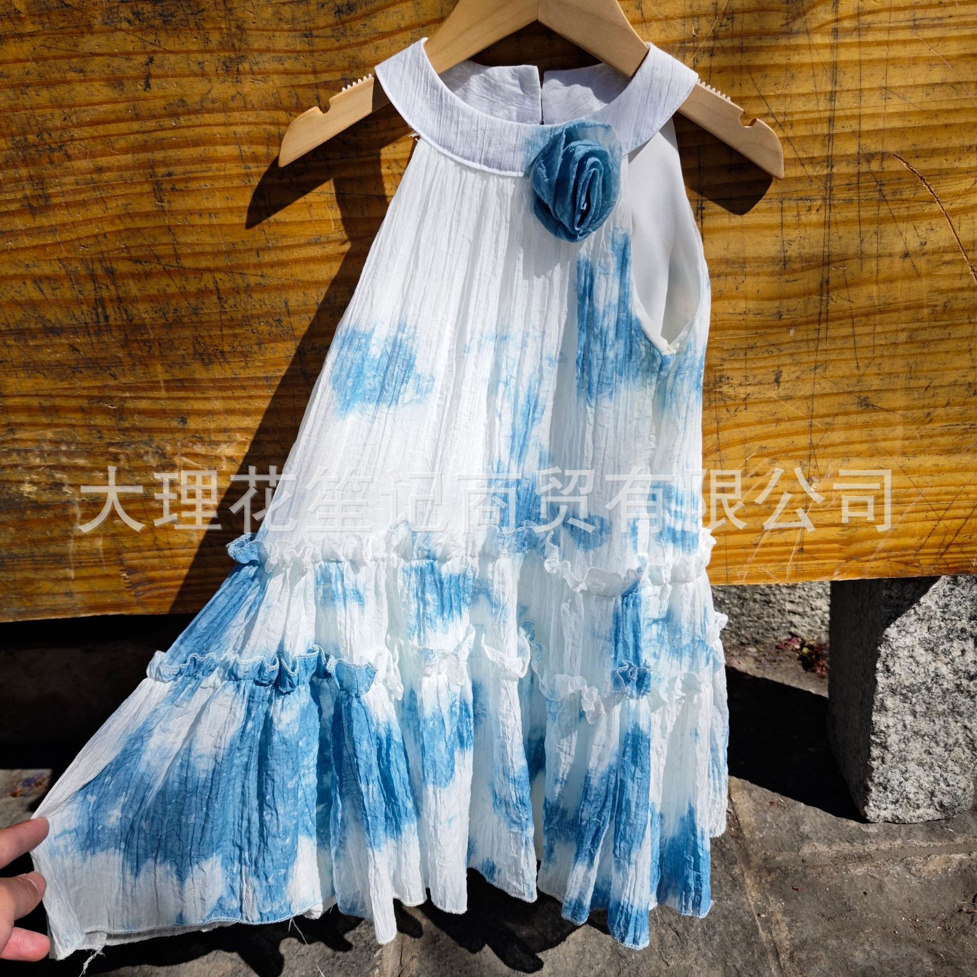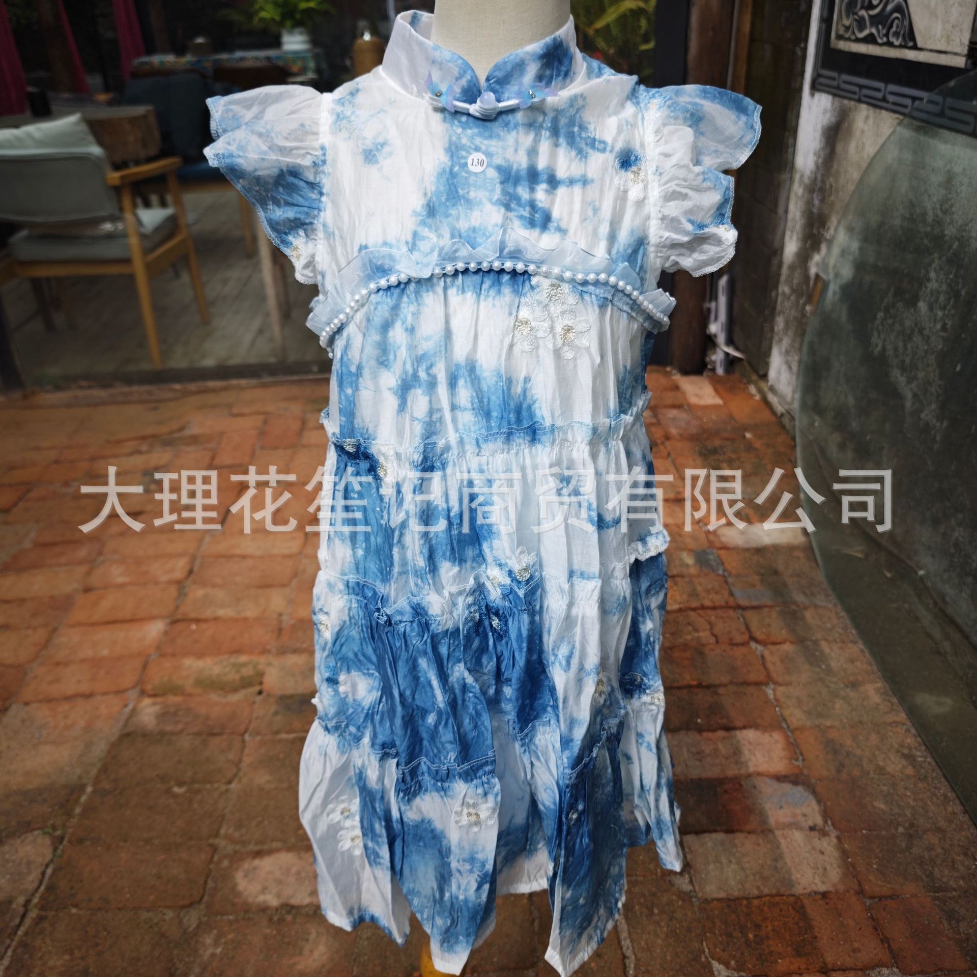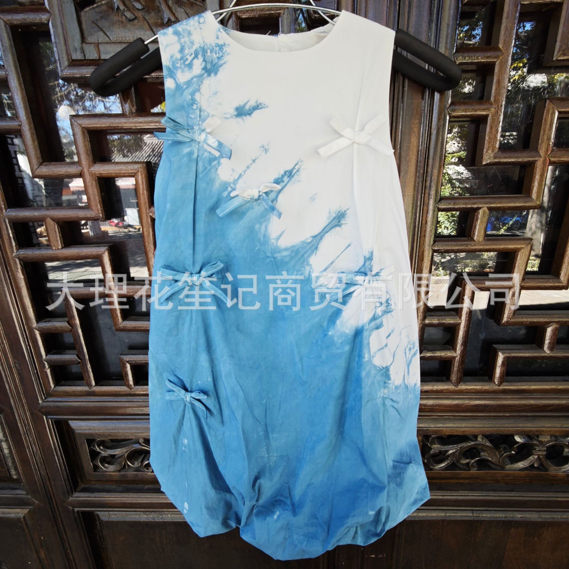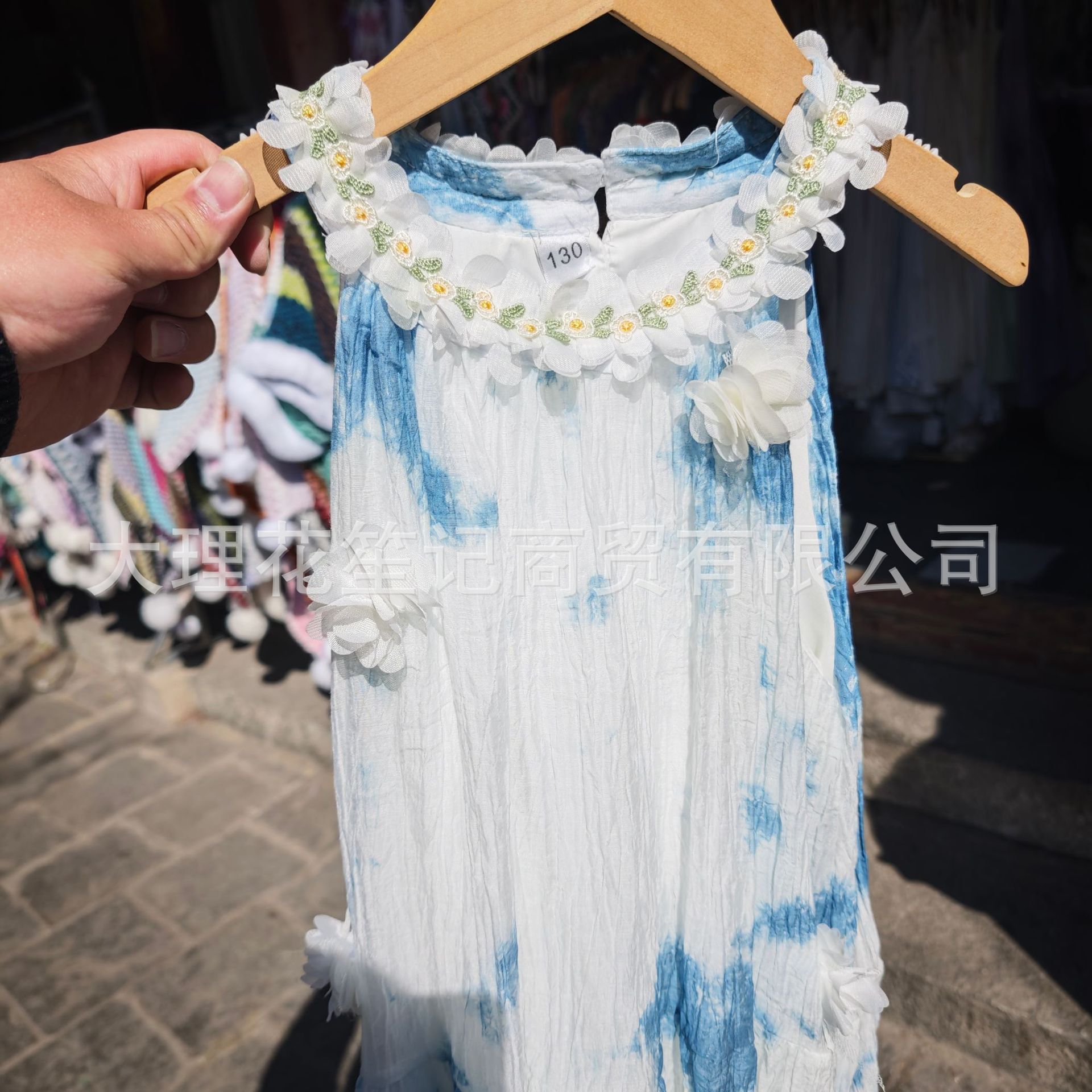 순수 천연 달리 수제 타이-염료 여름 민족 스타일 소녀의 원피스 여행 휴일 블루 다이 민소매 어린이 치마스토어 가기