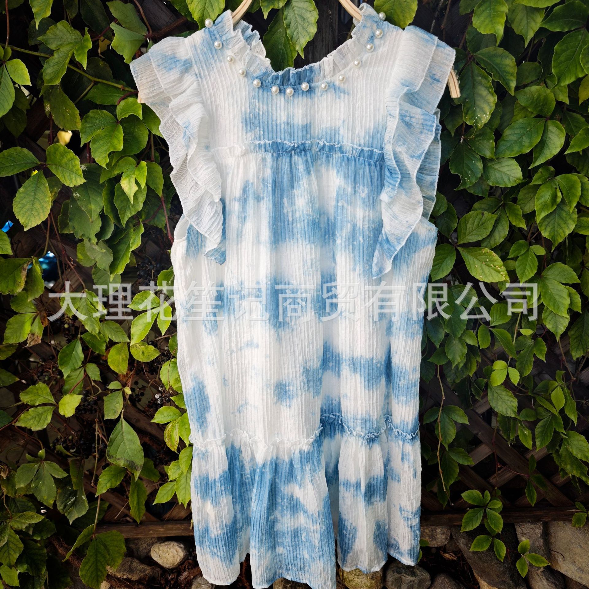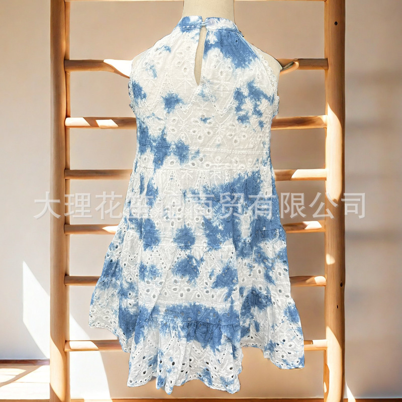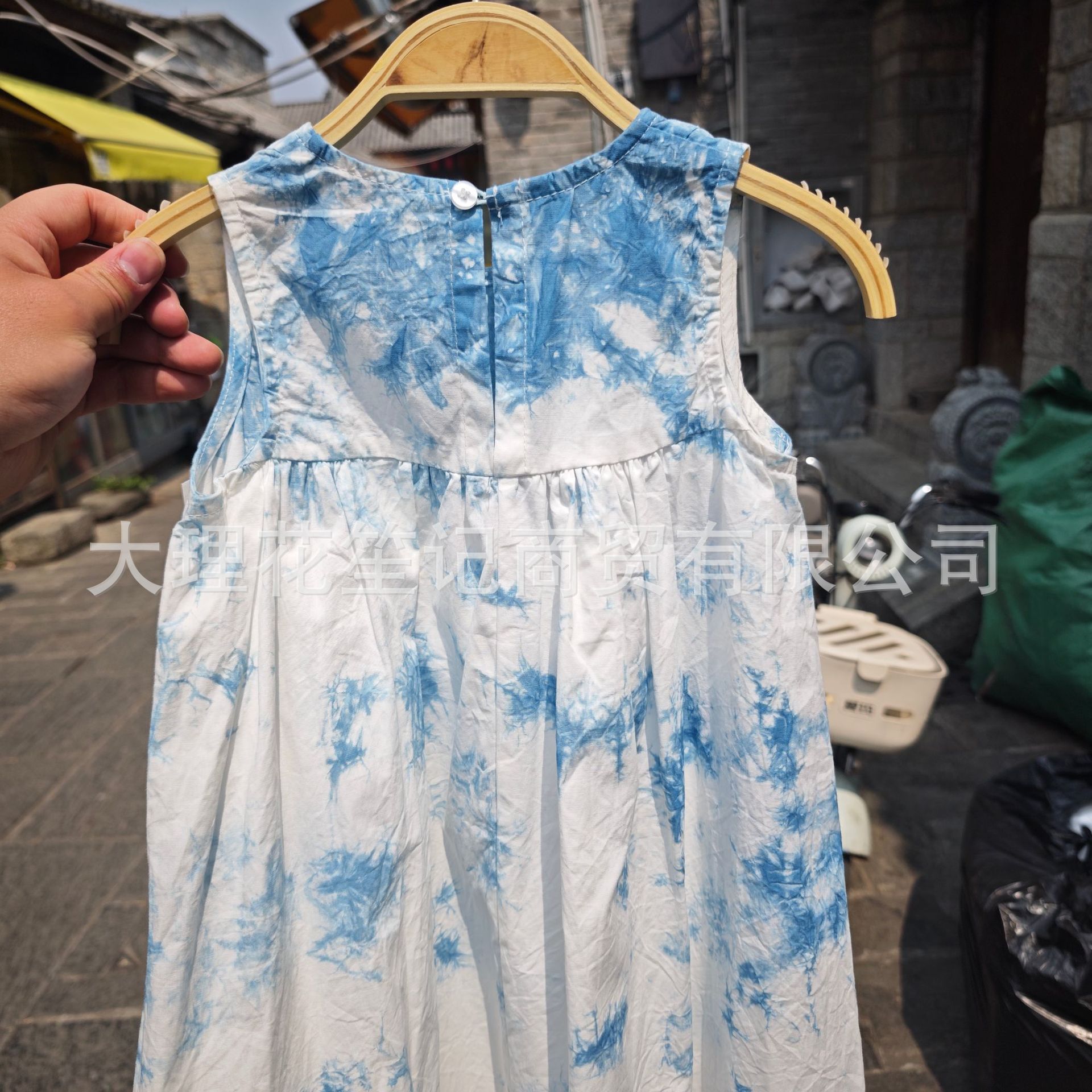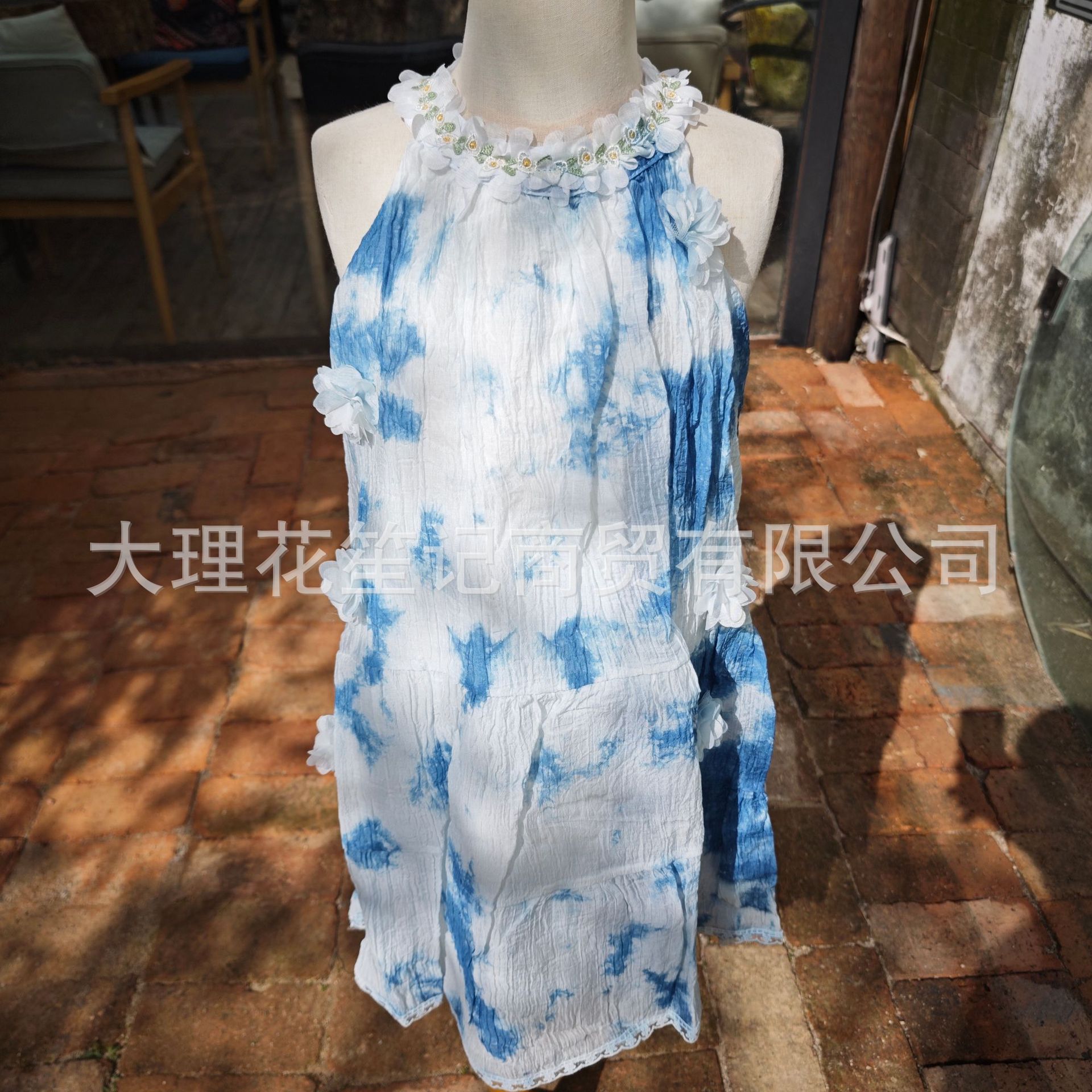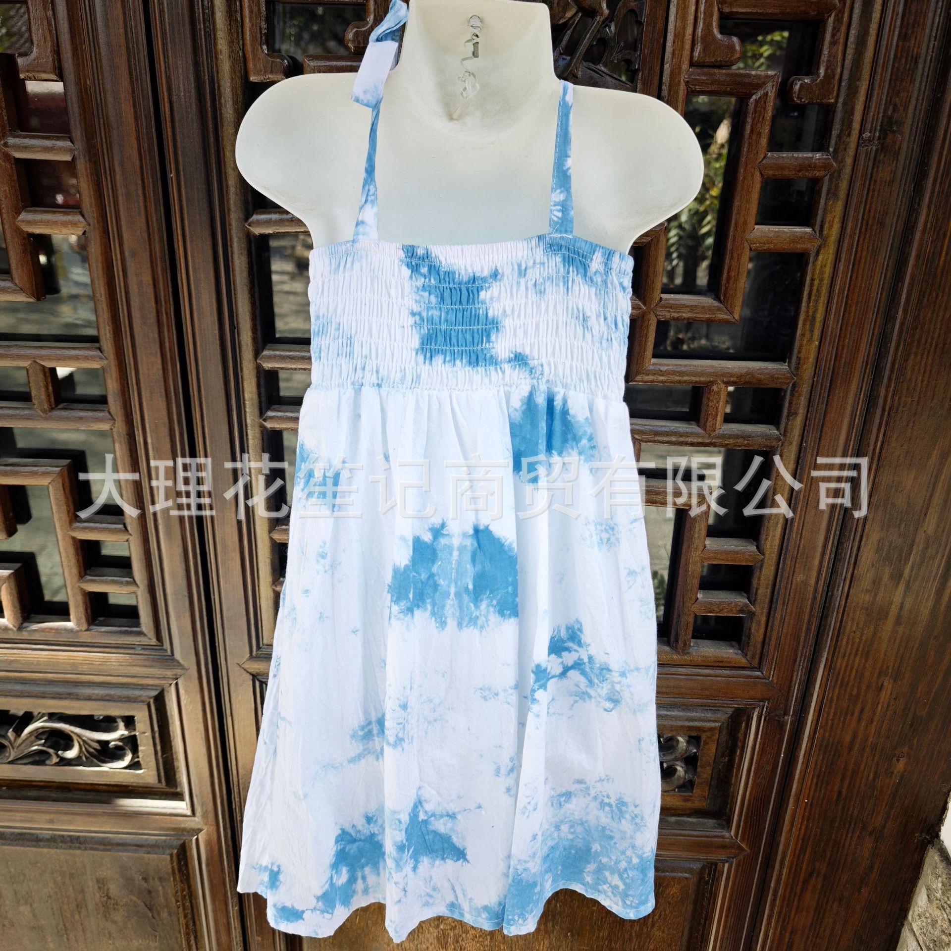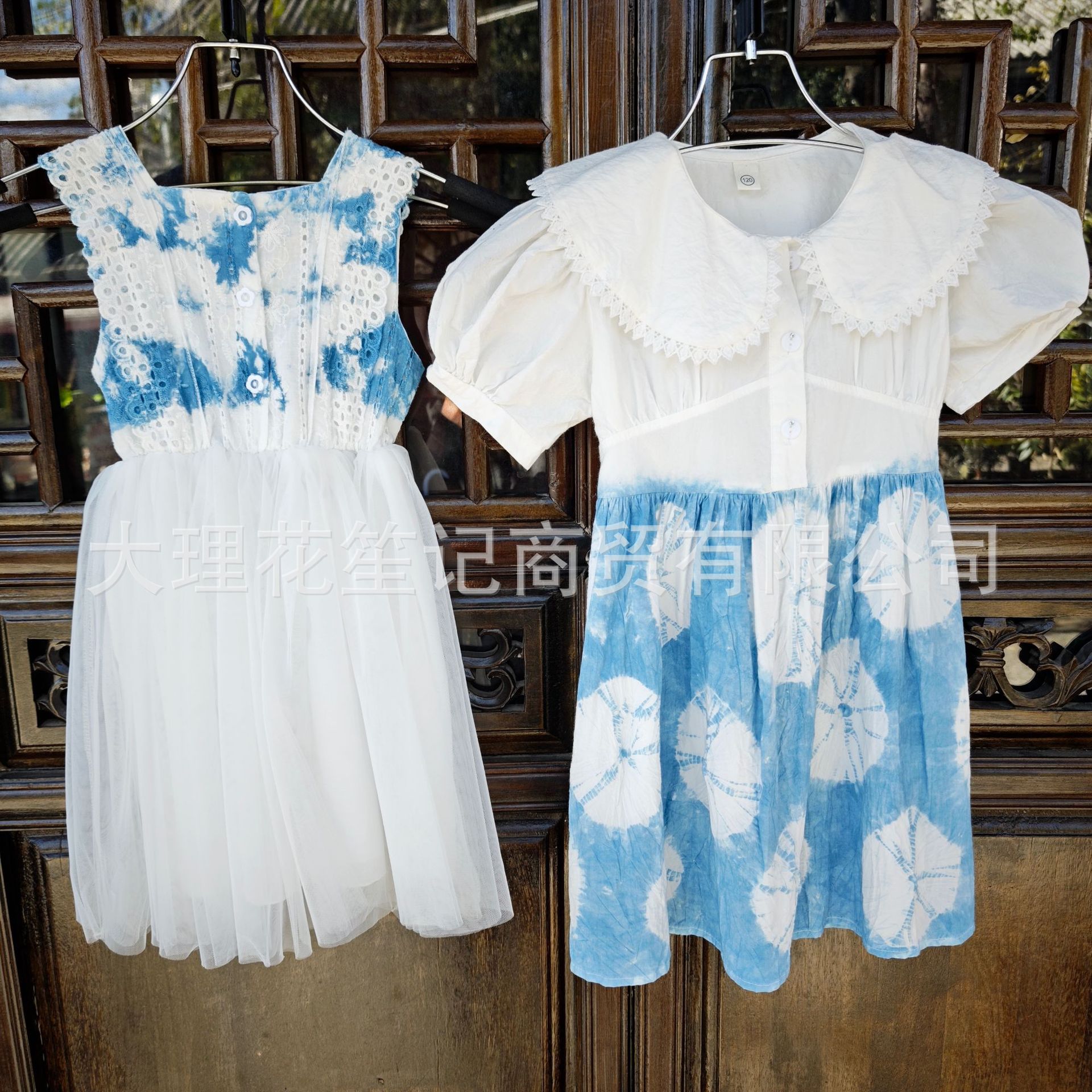순수 천연 달리 수제 타이-염료 여름 민족 스타일 소녀의 원피스 여행 휴일 블루 다이 민소매 어린이 치마스토어 가기