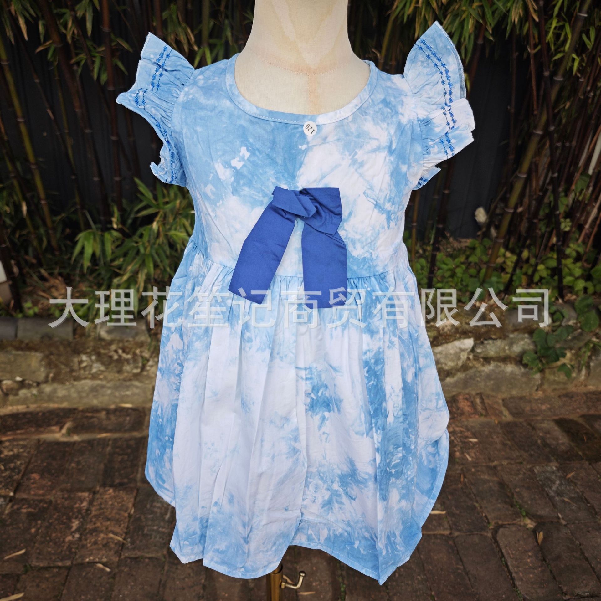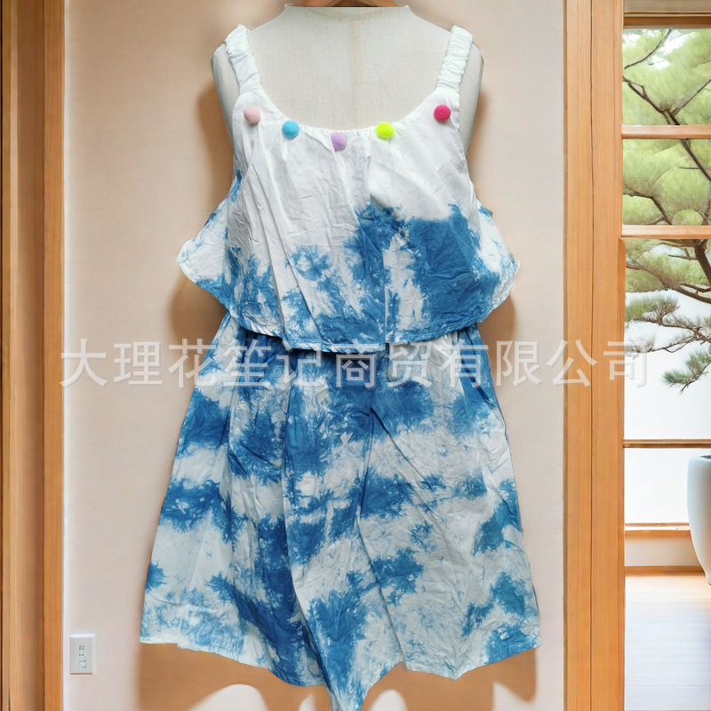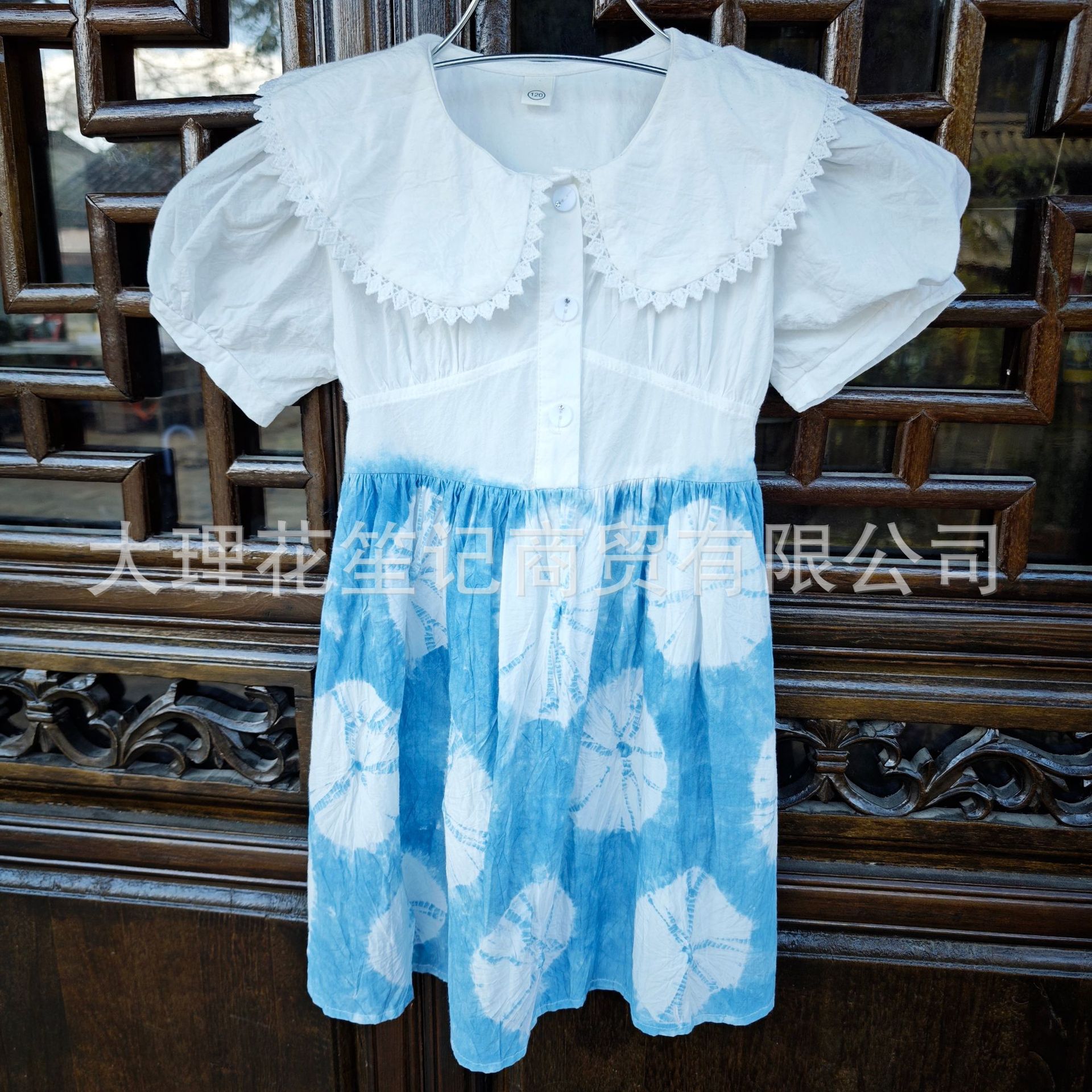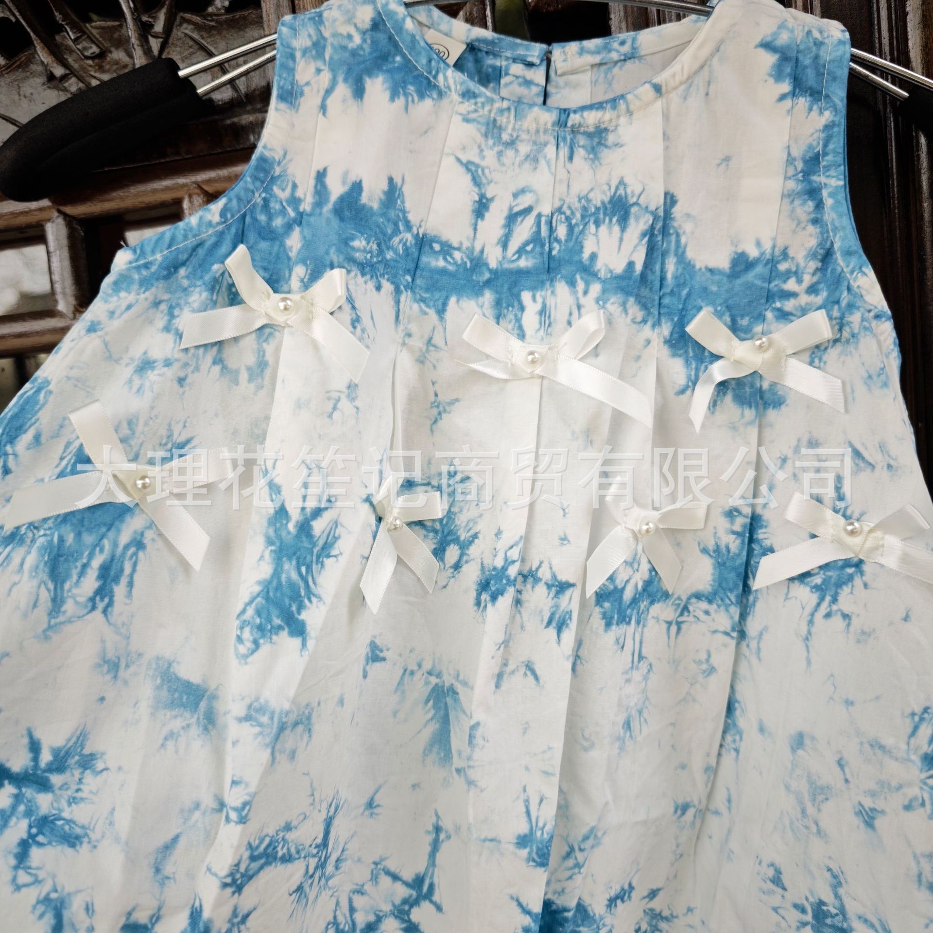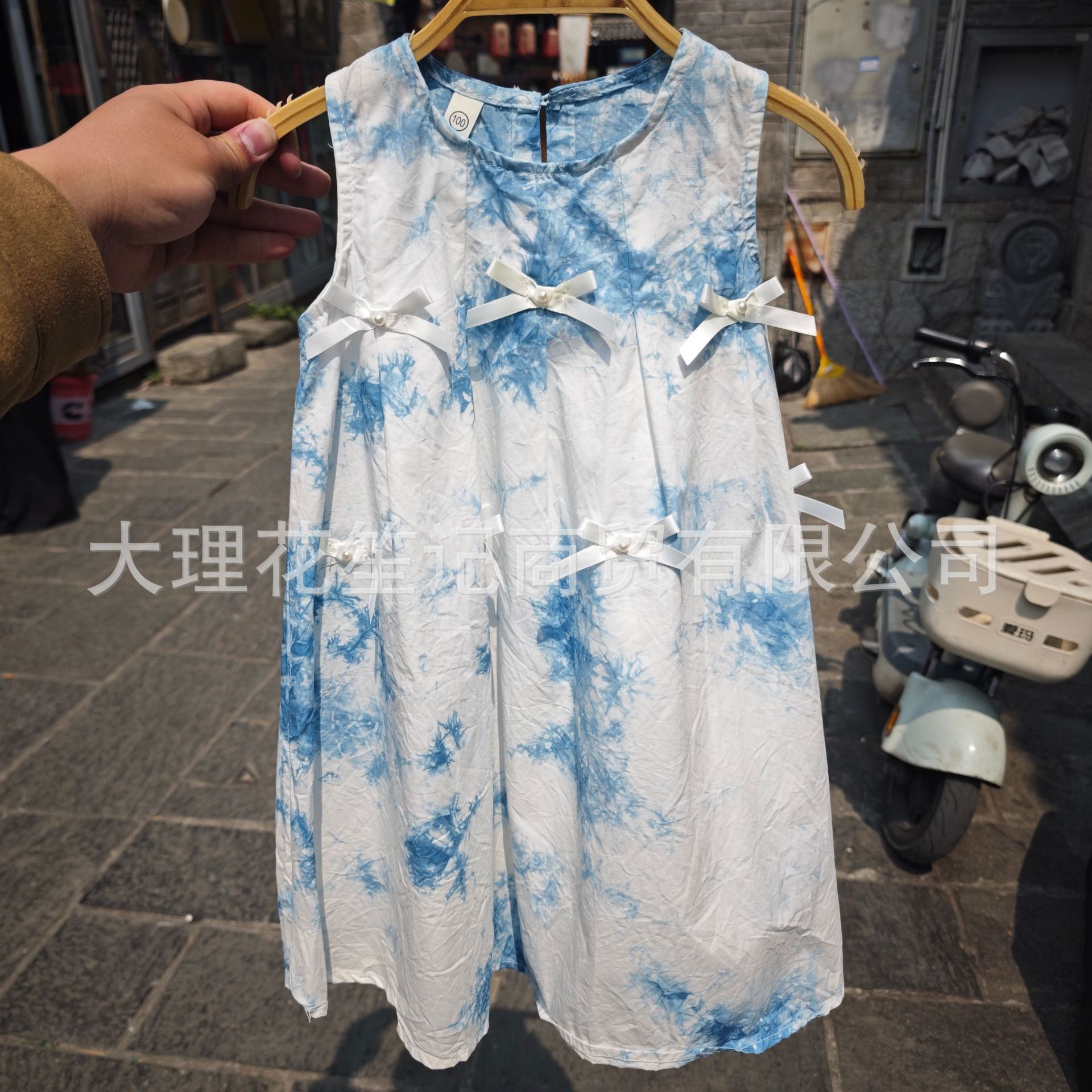 순수 천연 달리 수제 타이-염료 여름 민족 스타일 소녀의 원피스 여행 휴일 블루 다이 민소매 어린이 치마스토어 가기