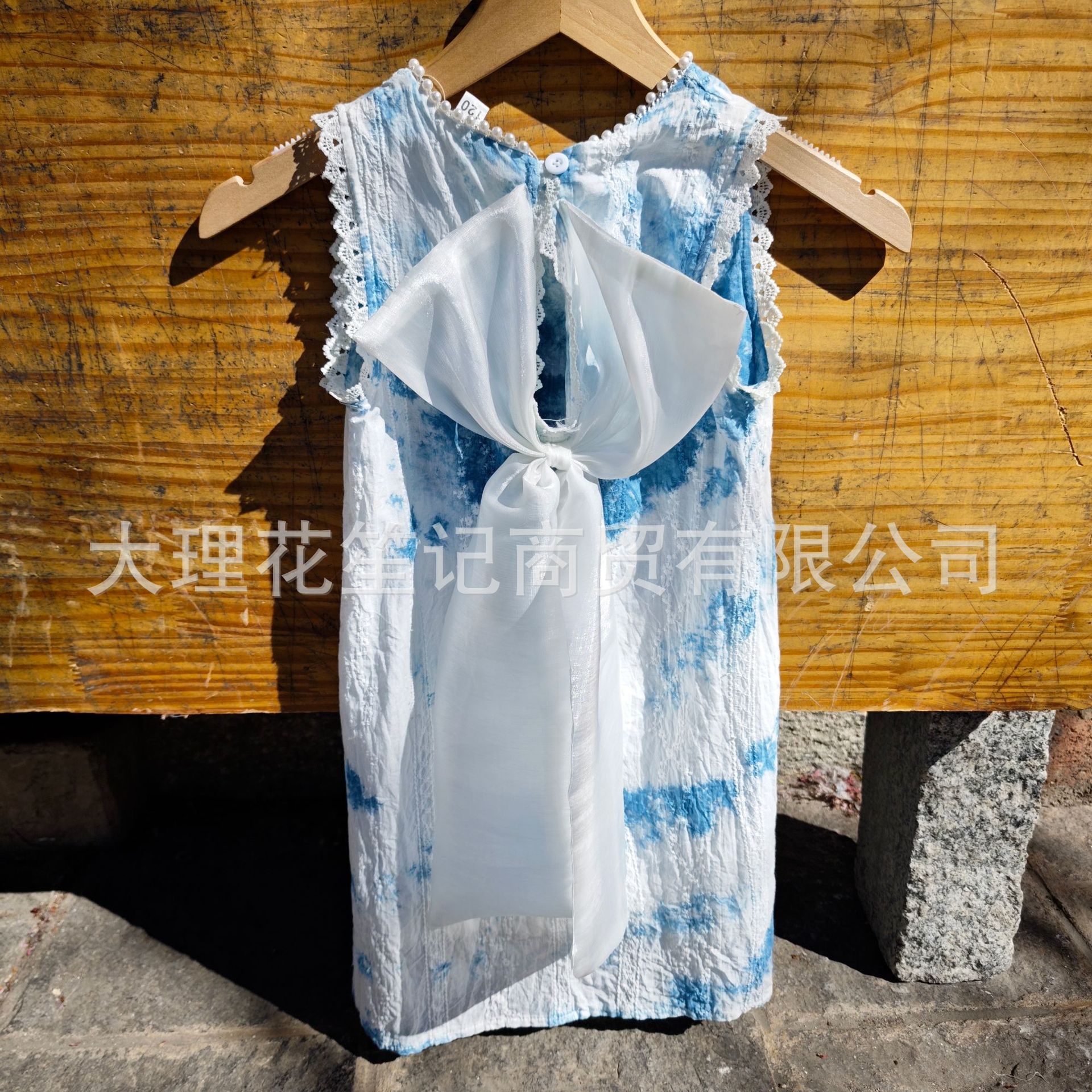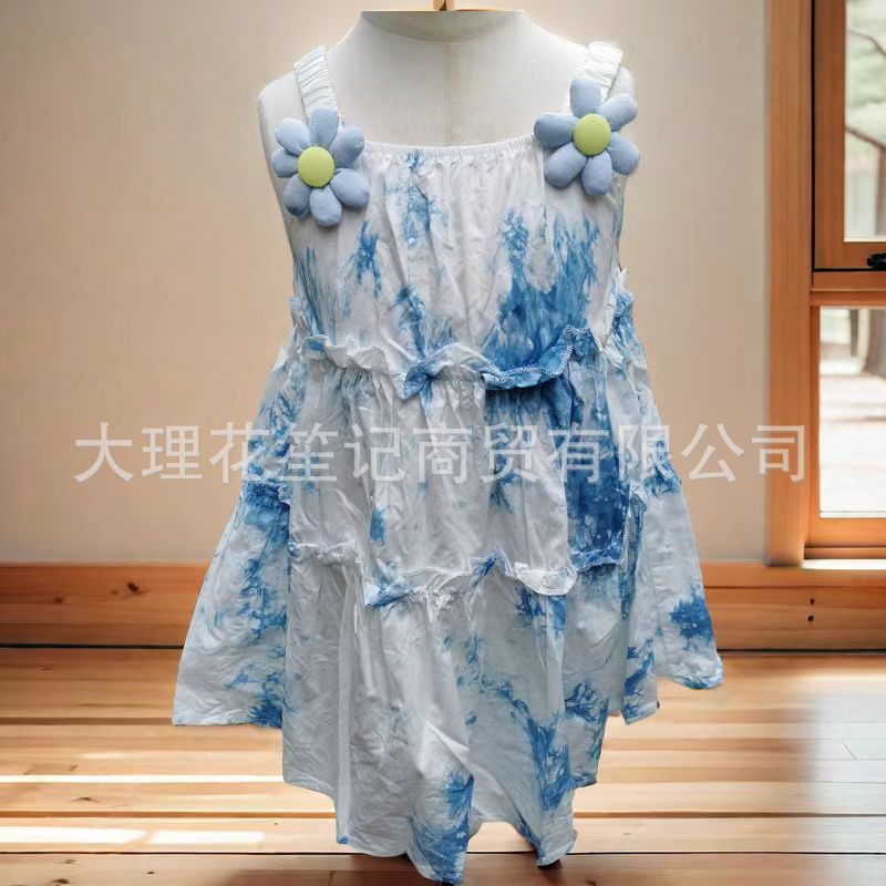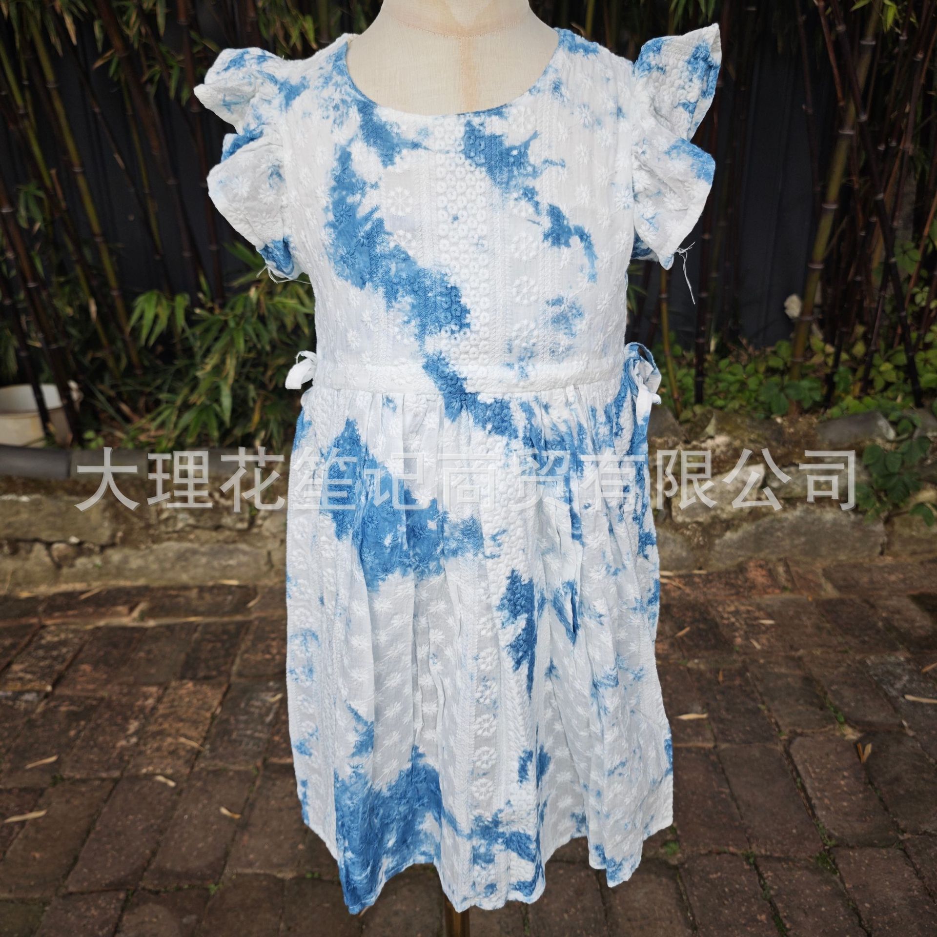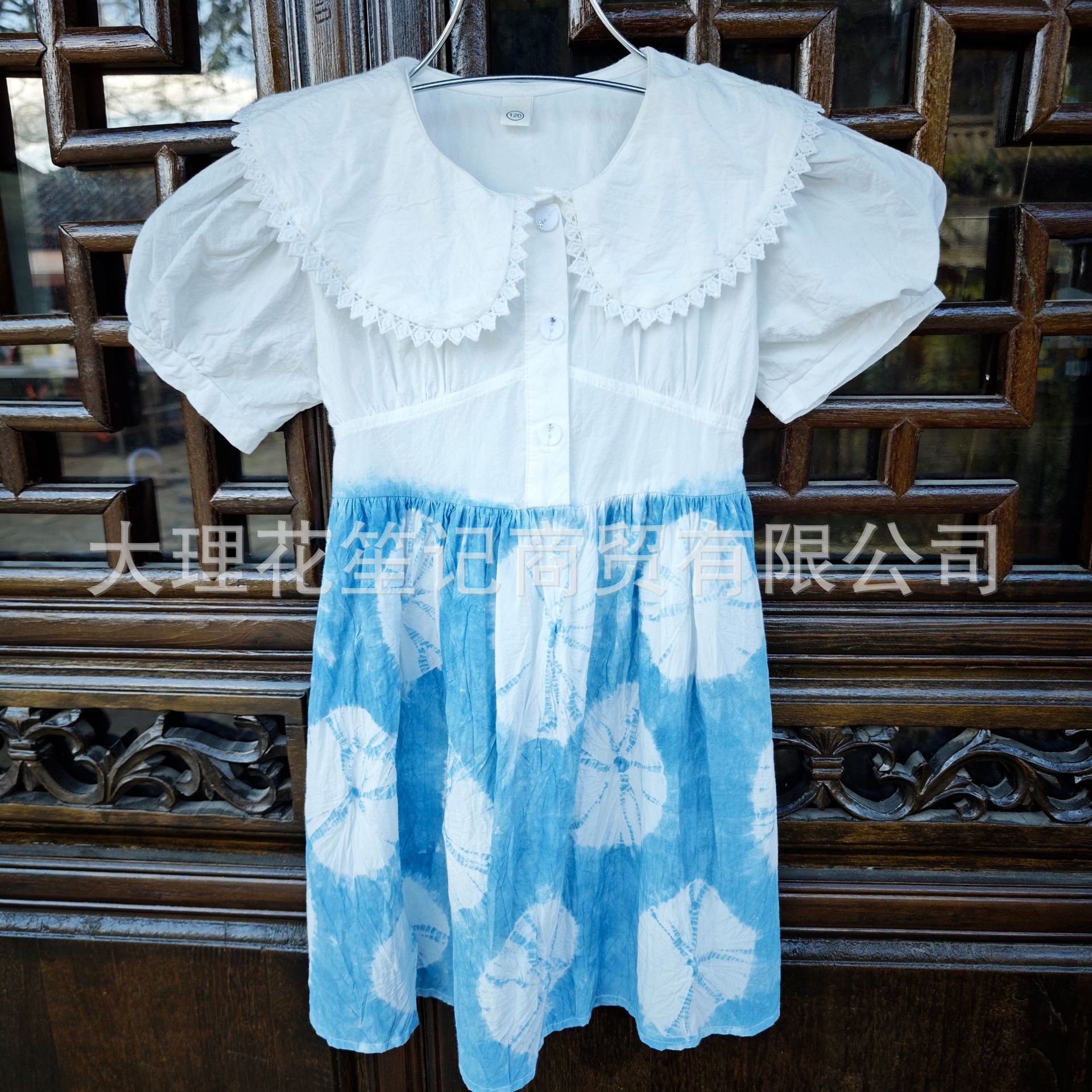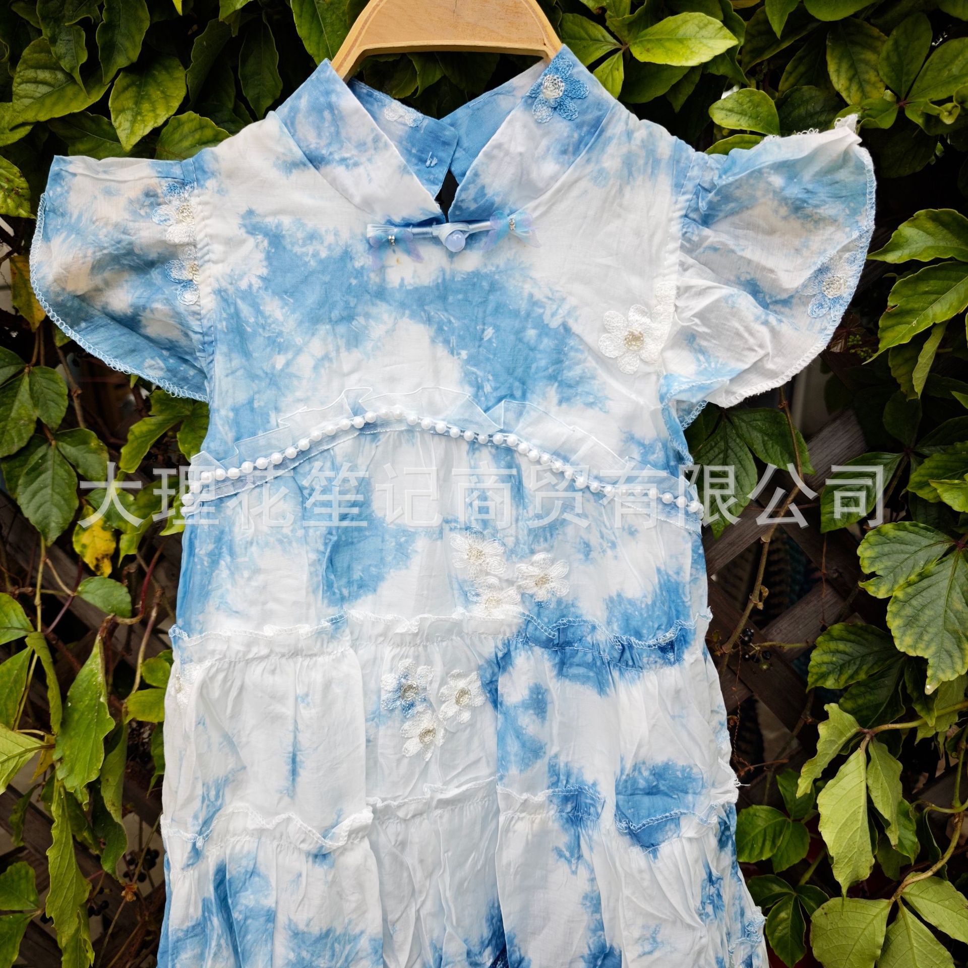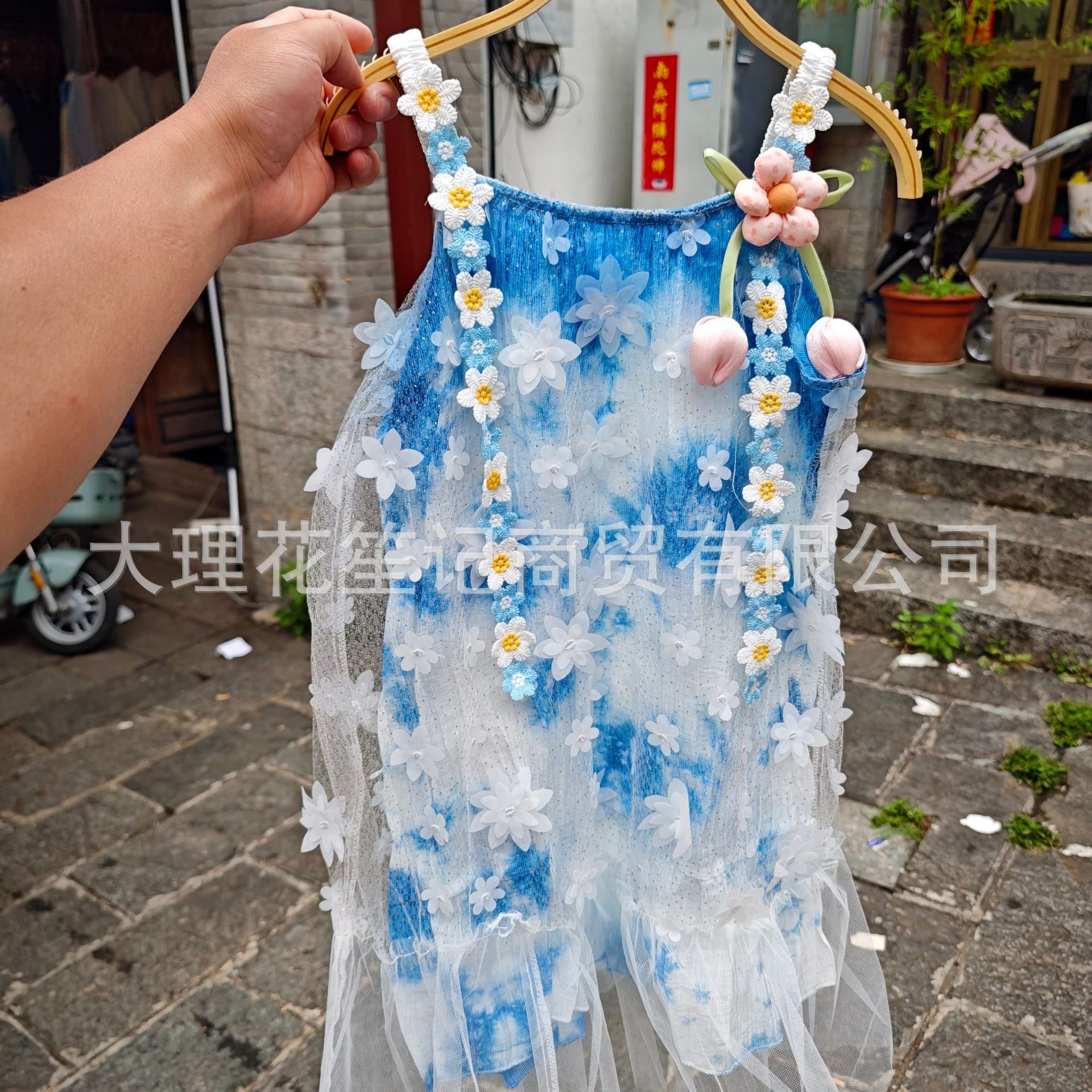 순수 천연 달리 수제 타이-염료 여름 민족 스타일 소녀의 원피스 여행 휴일 블루 다이 민소매 어린이 치마스토어 가기