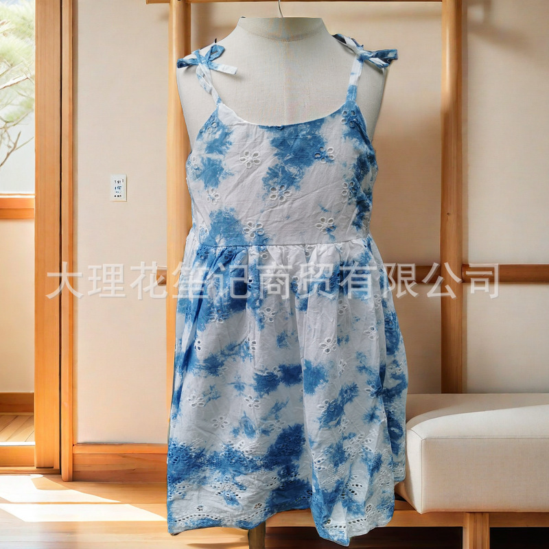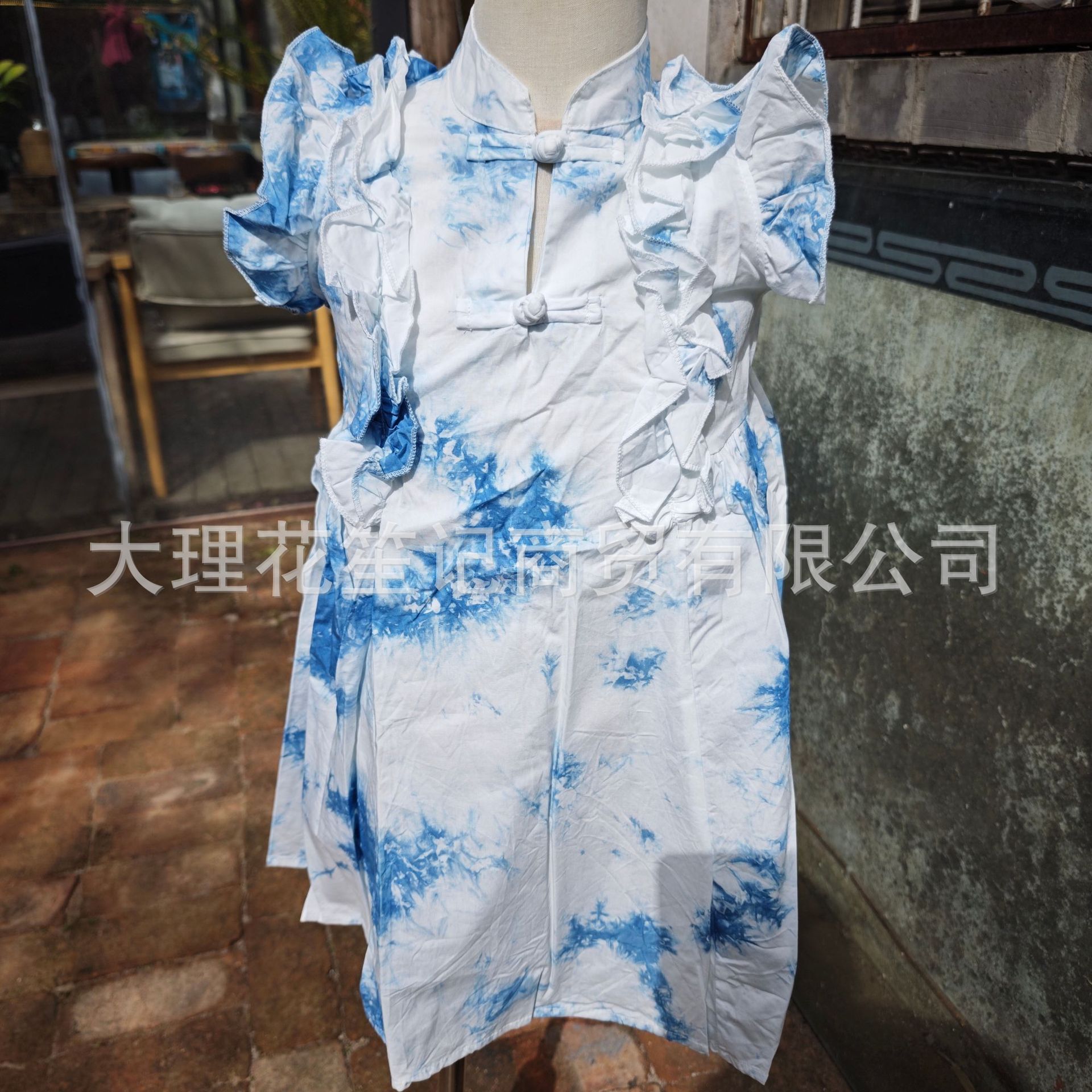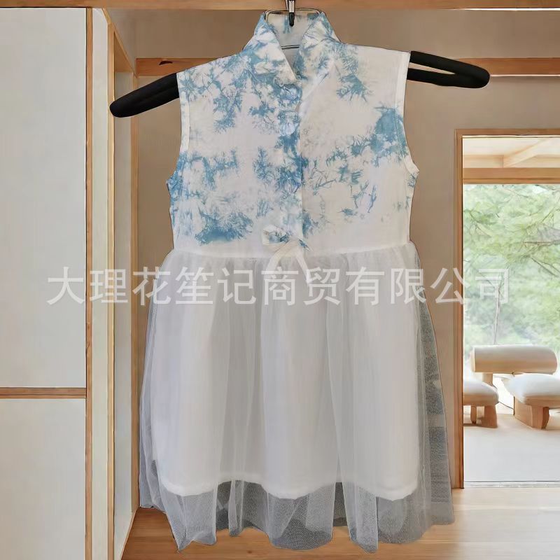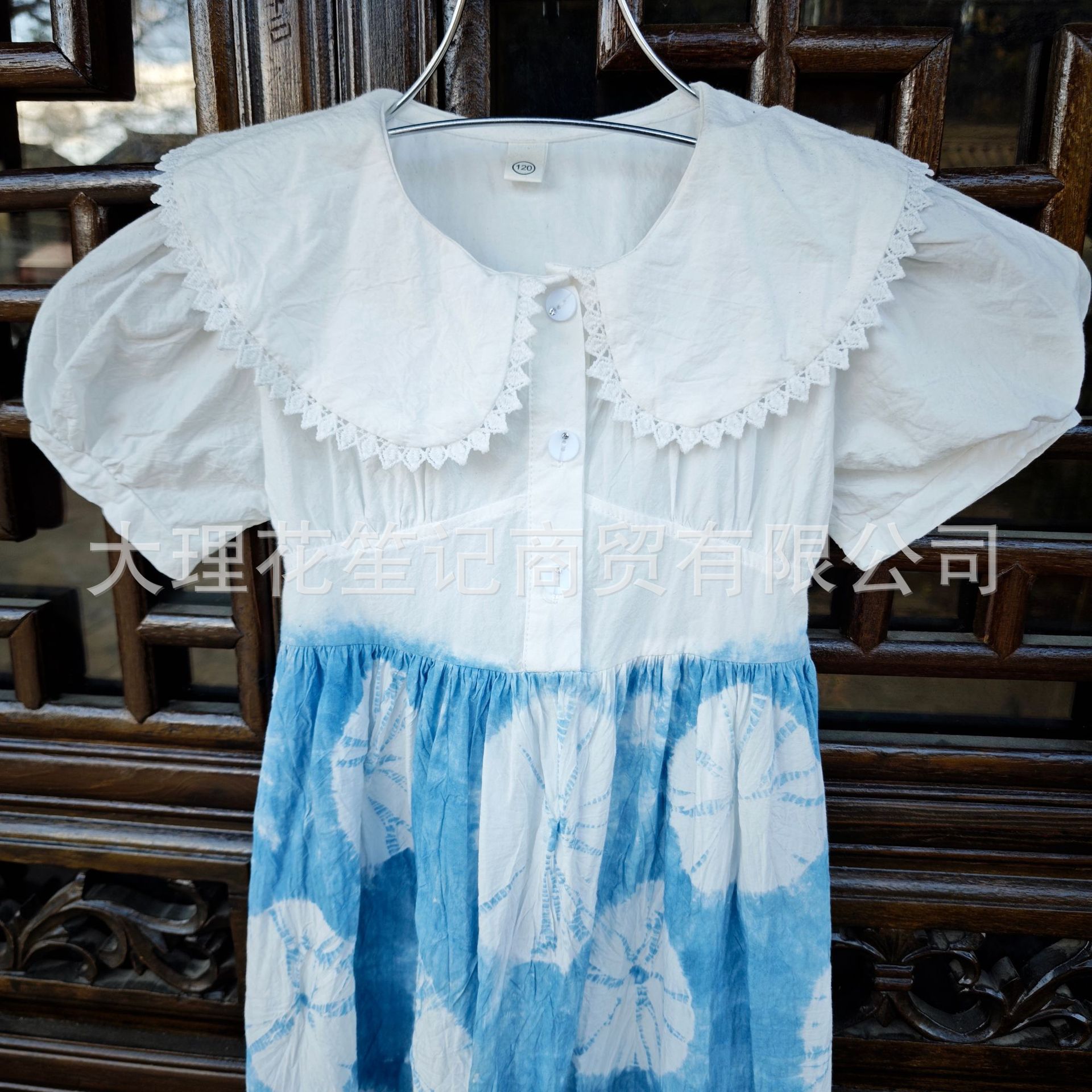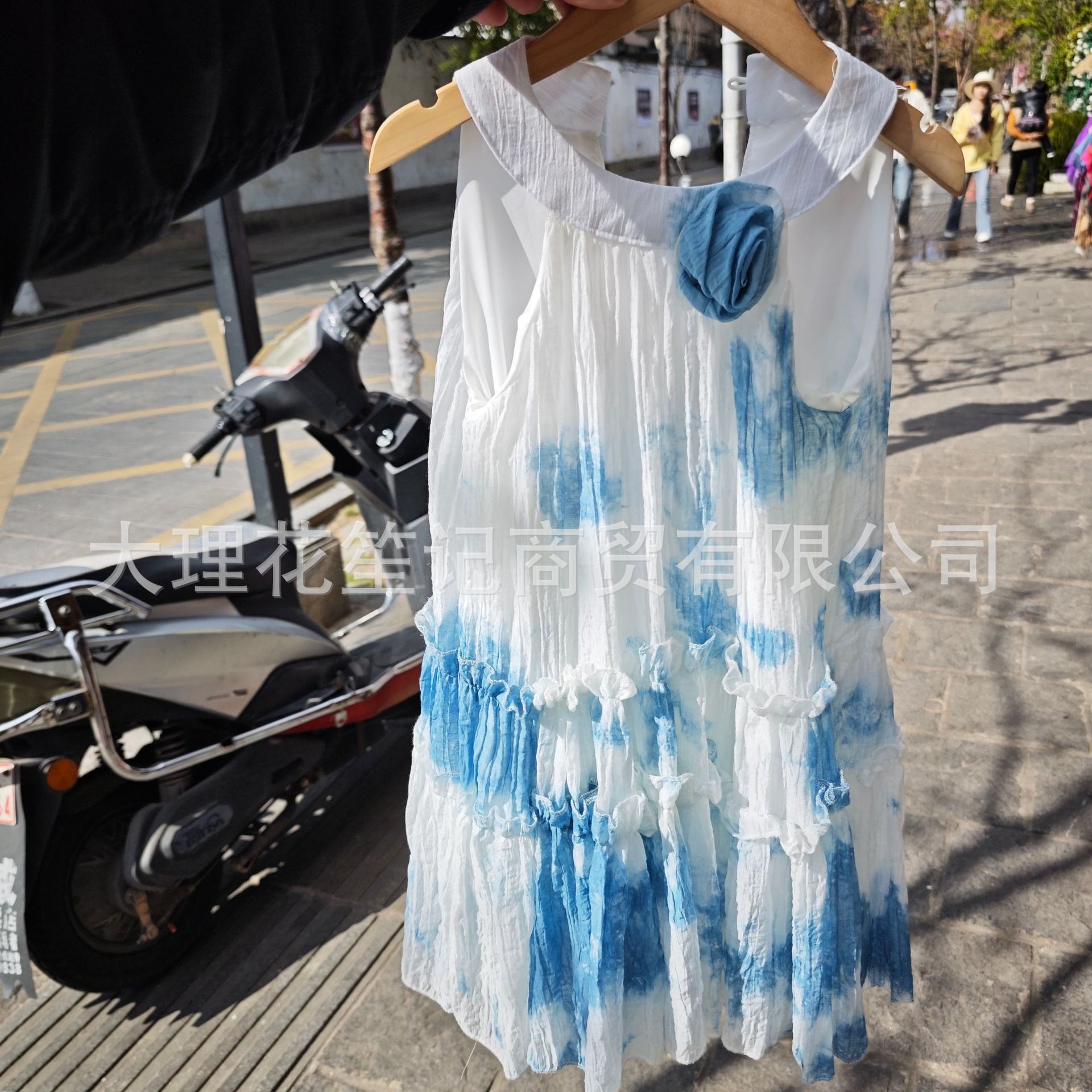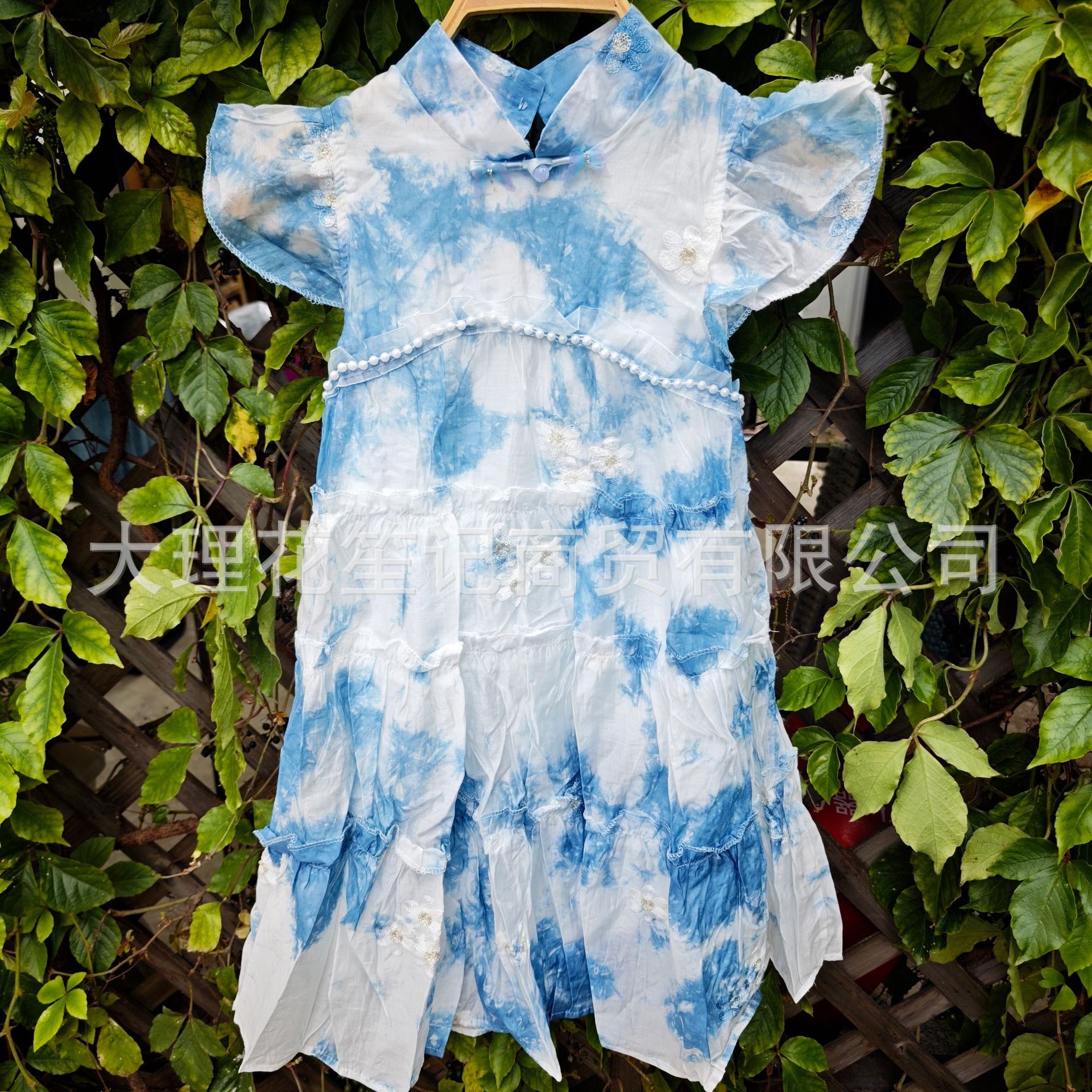 순수 천연 달리 수제 타이-염료 여름 민족 스타일 소녀의 원피스 여행 휴일 블루 다이 민소매 어린이 치마스토어 가기