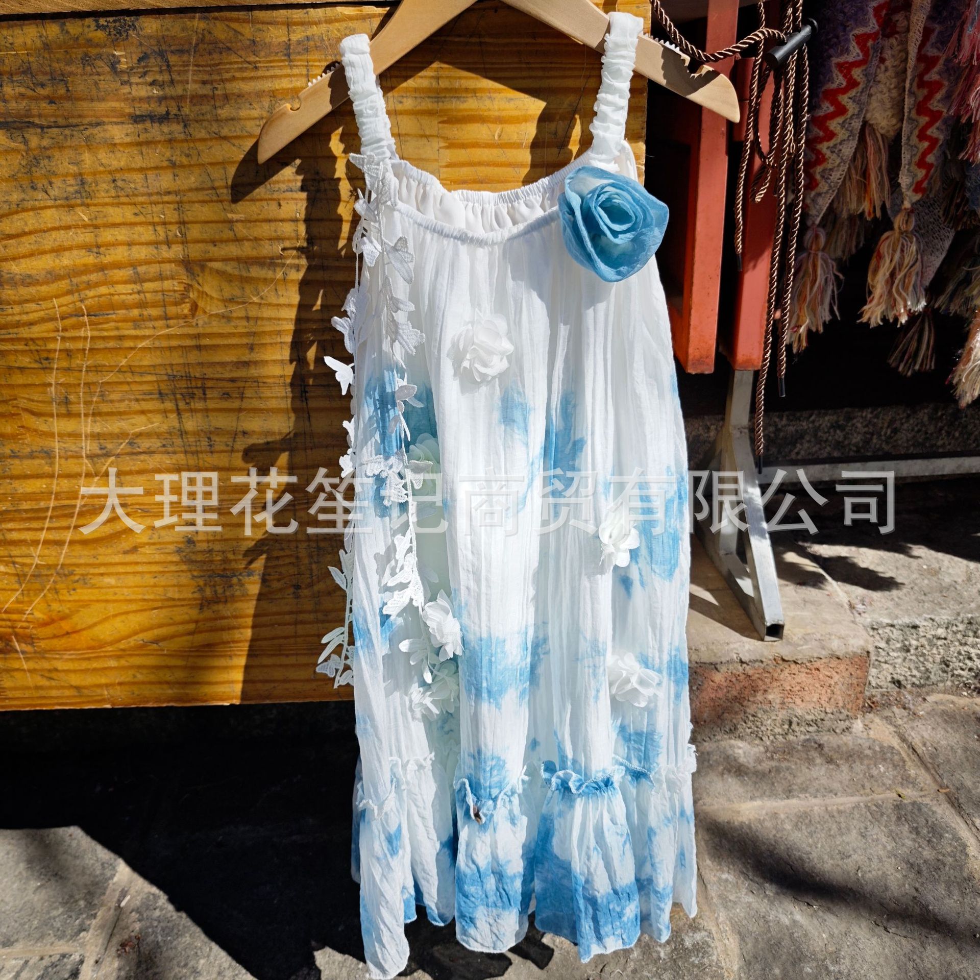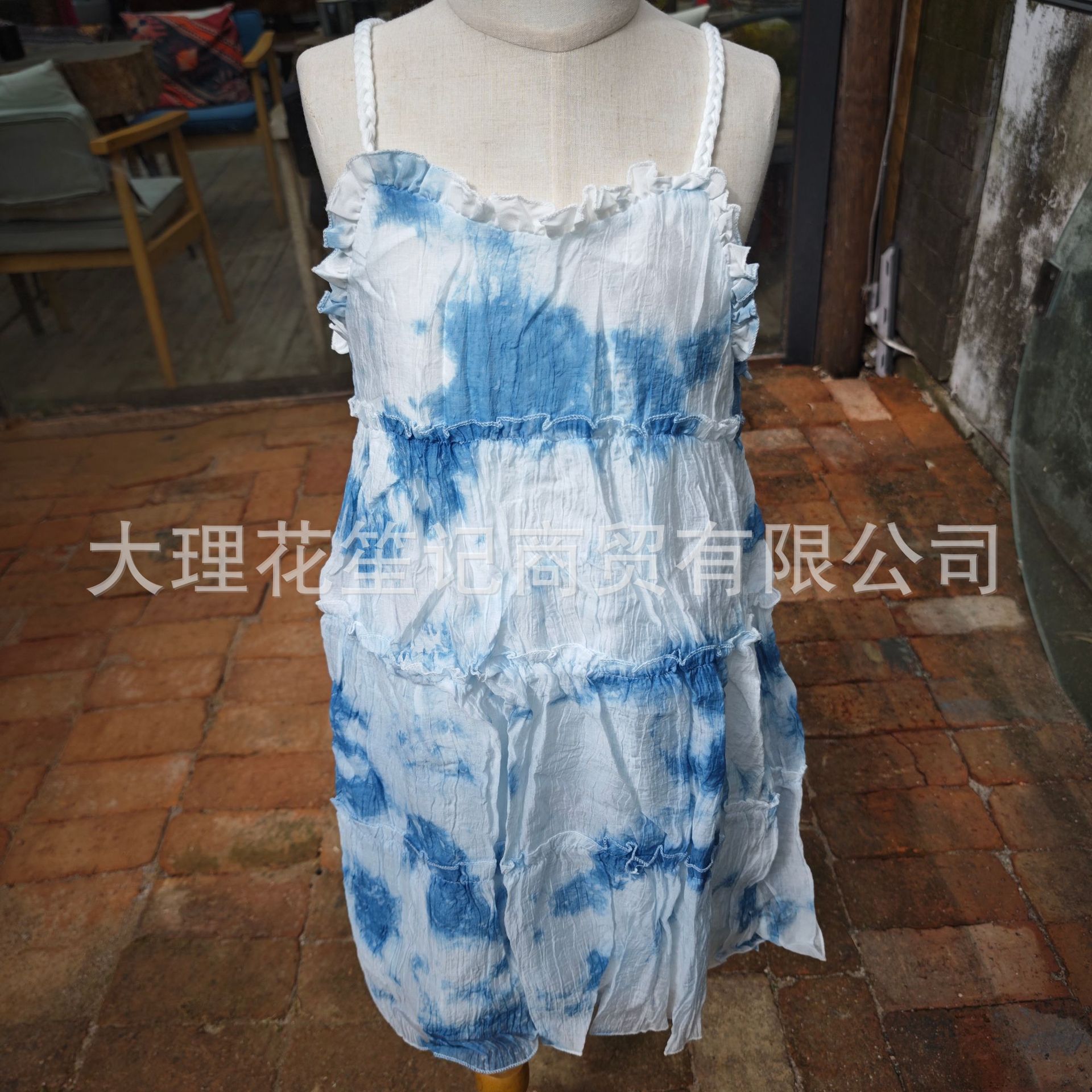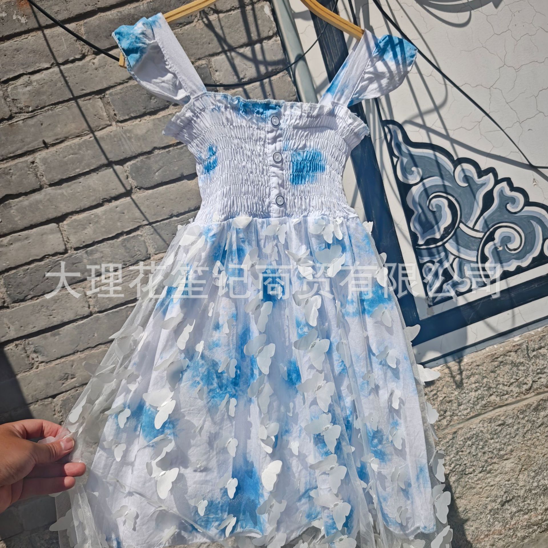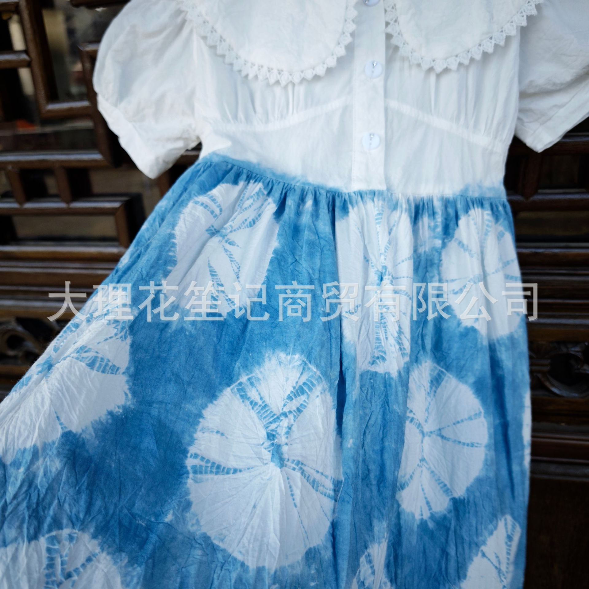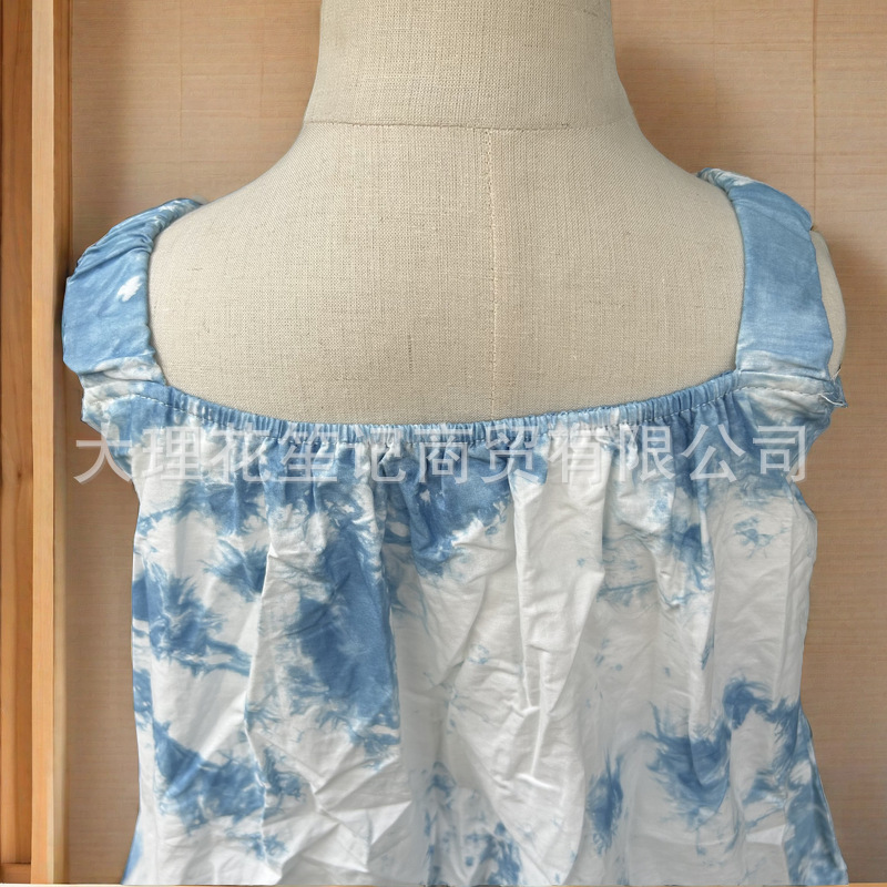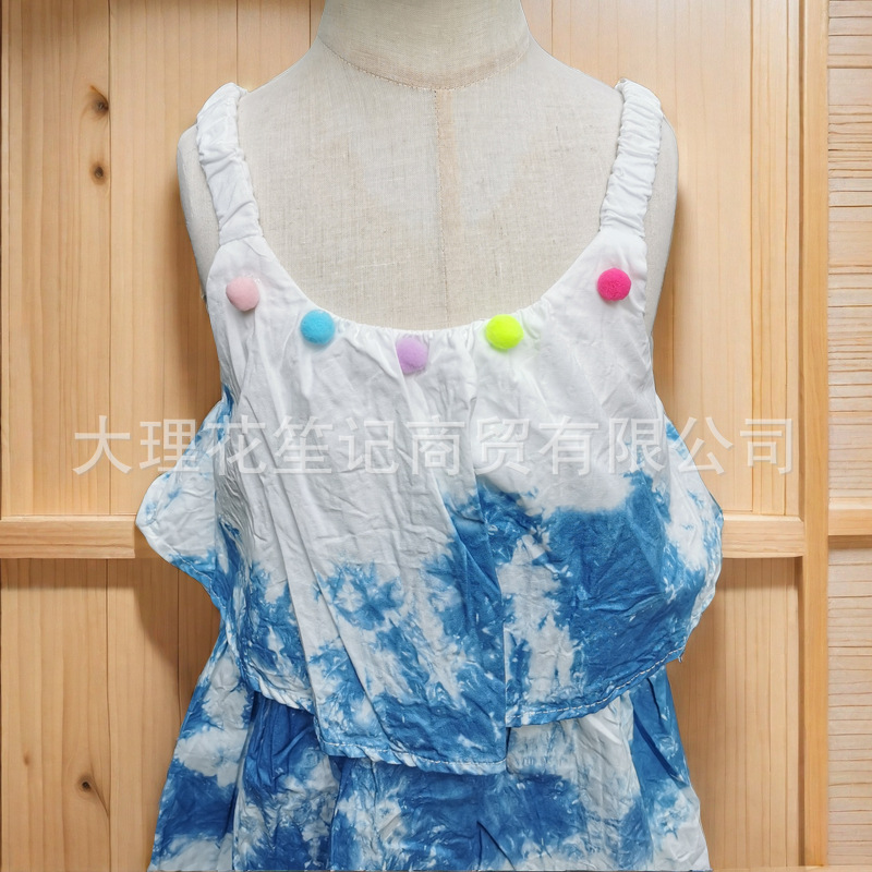 순수 천연 달리 수제 타이-염료 여름 민족 스타일 소녀의 원피스 여행 휴일 블루 다이 민소매 어린이 치마스토어 가기