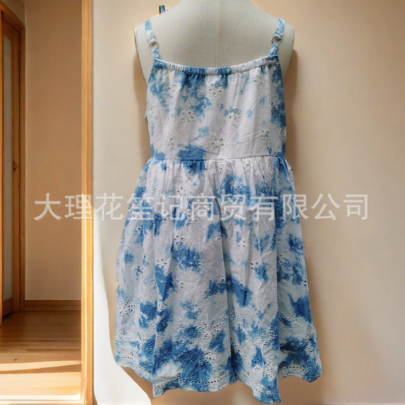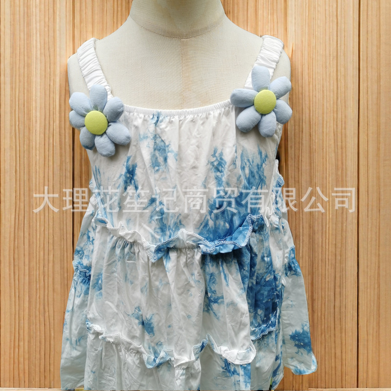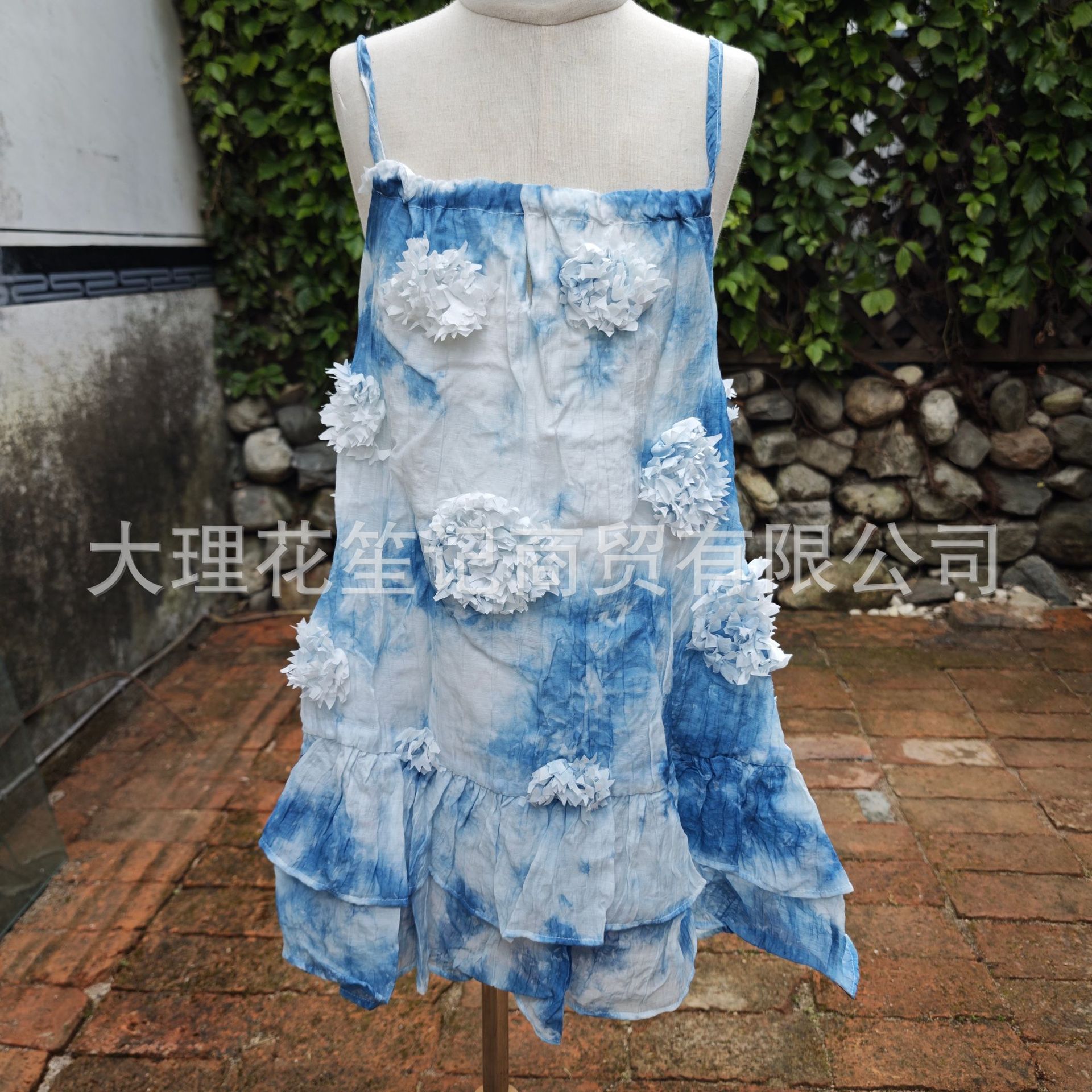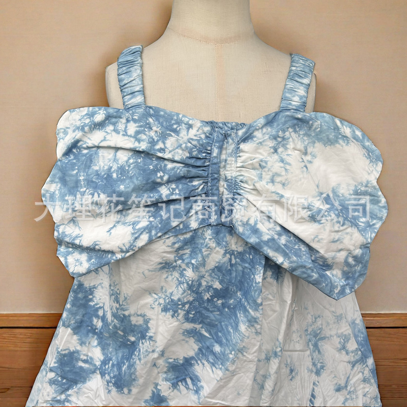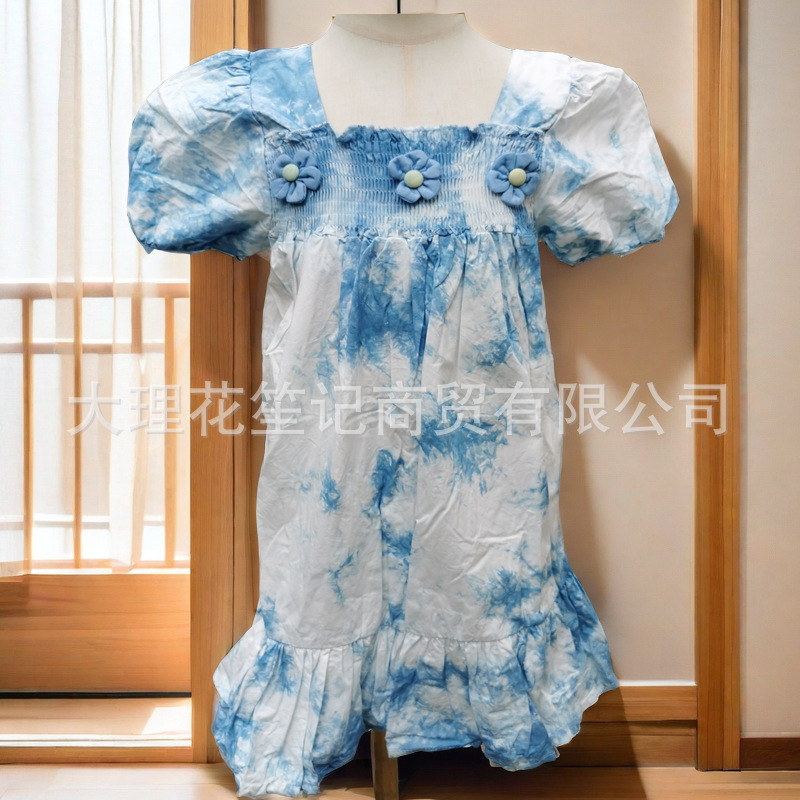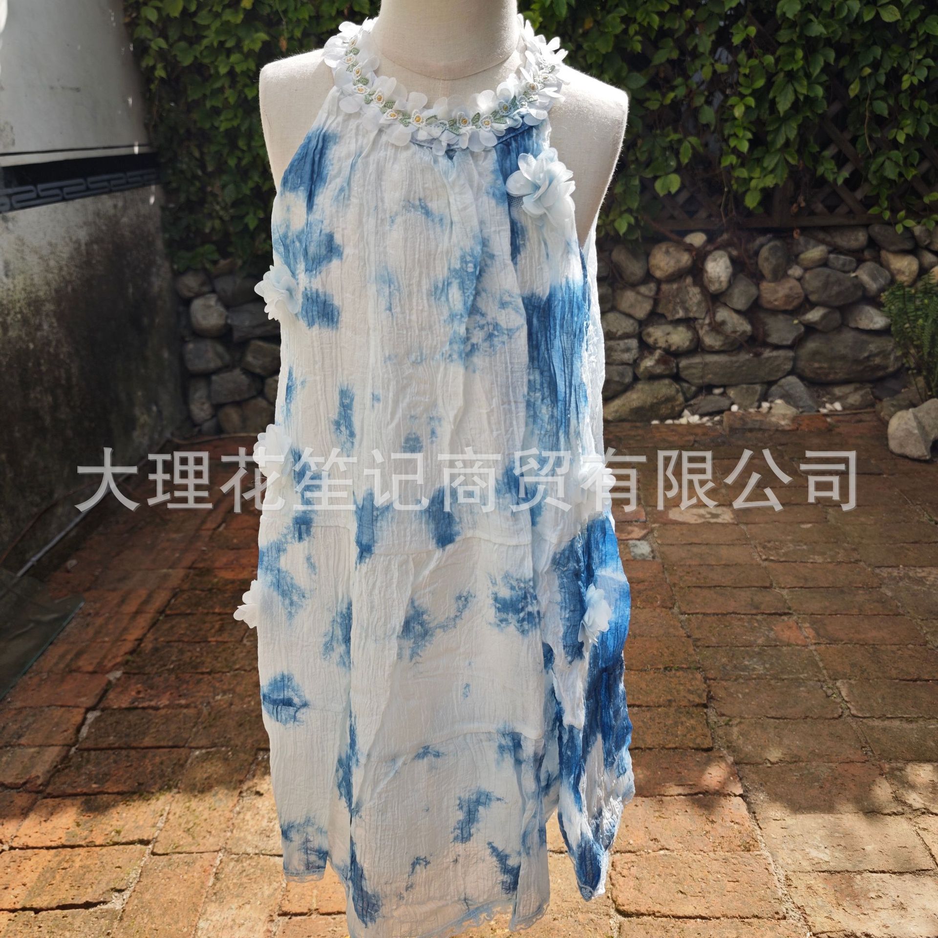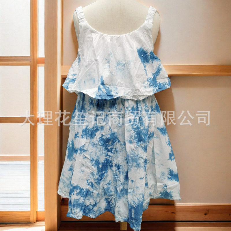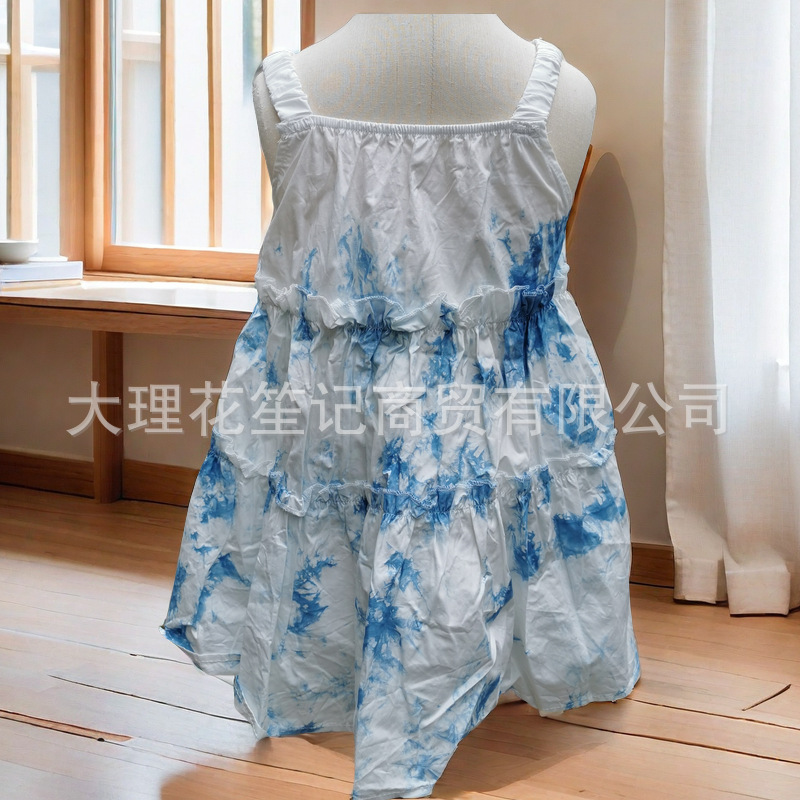 순수 천연 달리 수제 타이-염료 여름 민족 스타일 소녀의 원피스 여행 휴일 블루 다이 민소매 어린이 치마스토어 가기