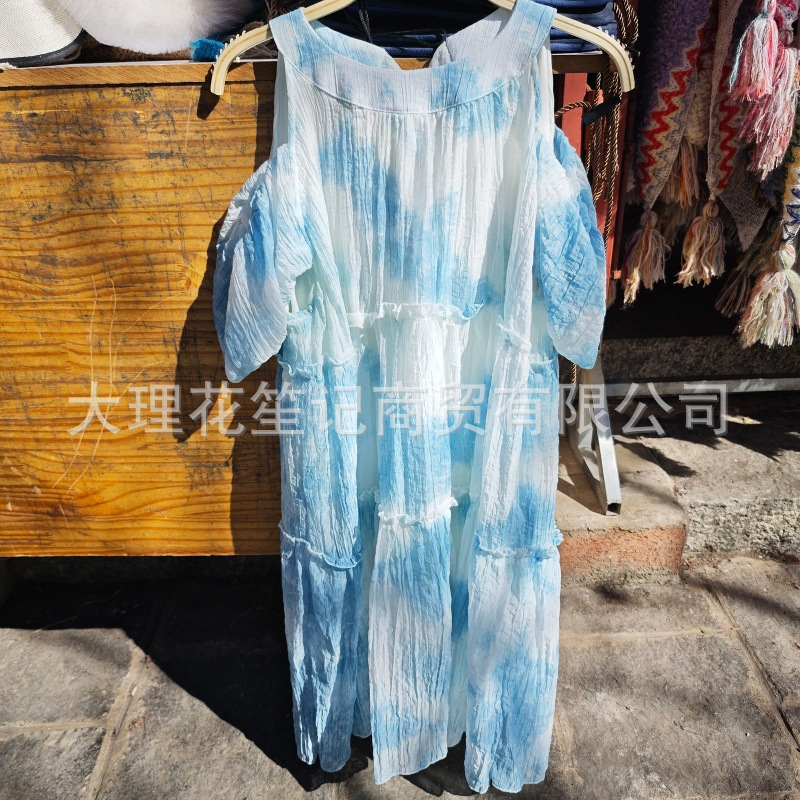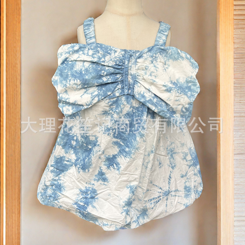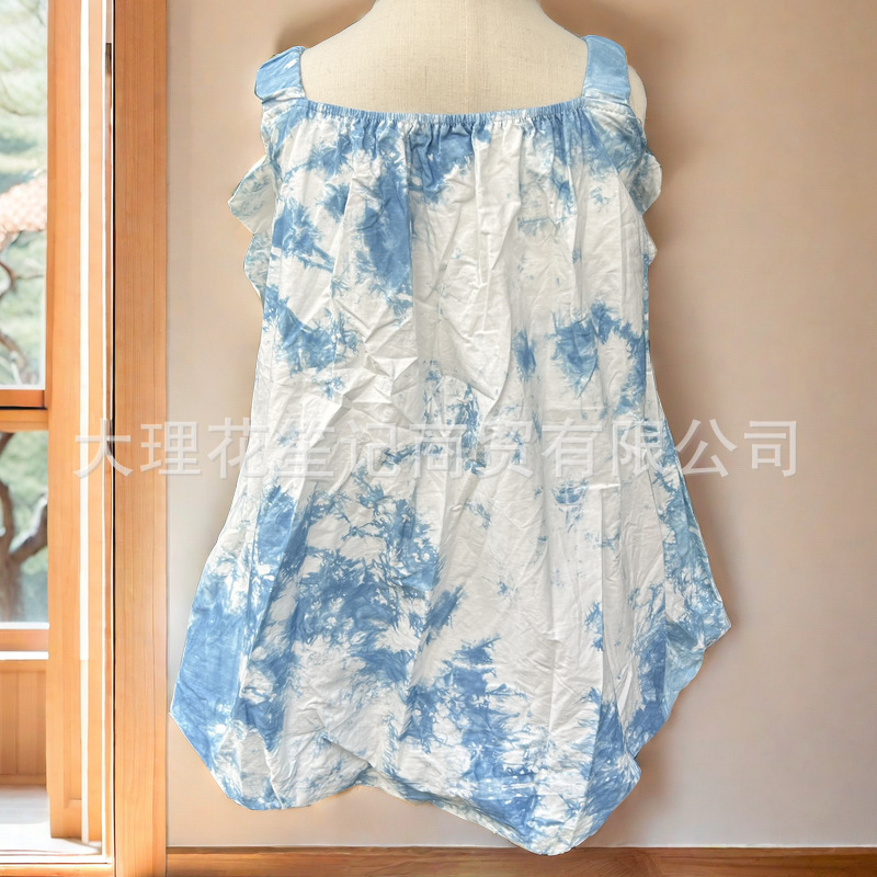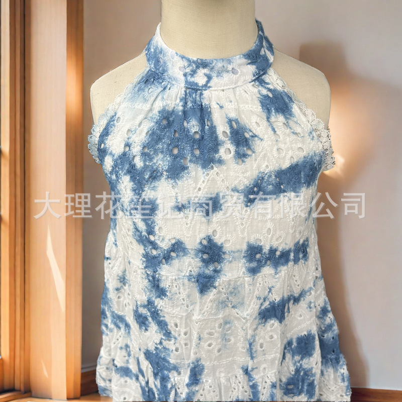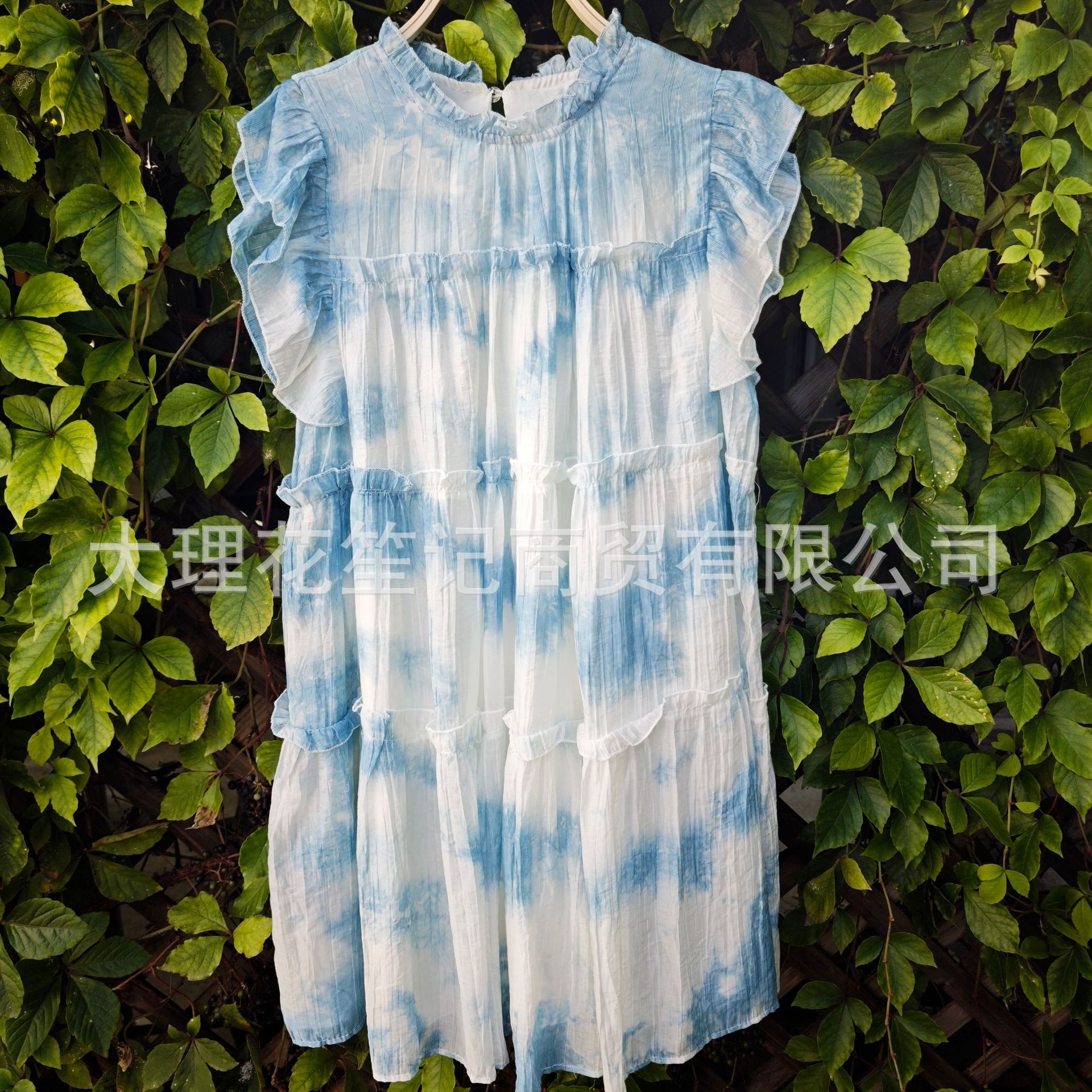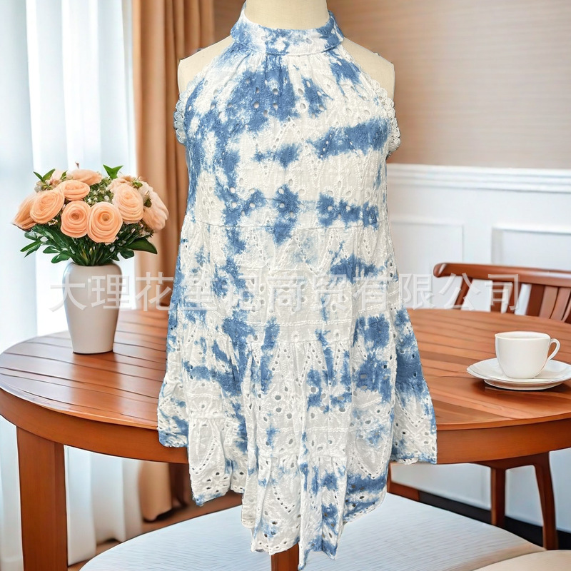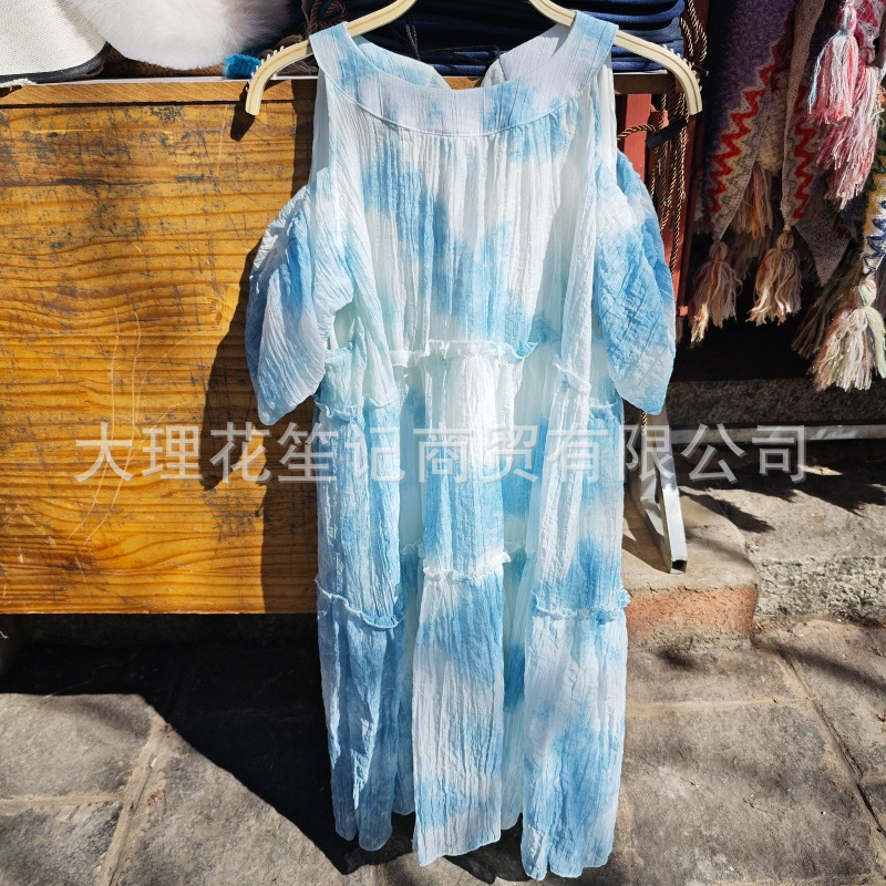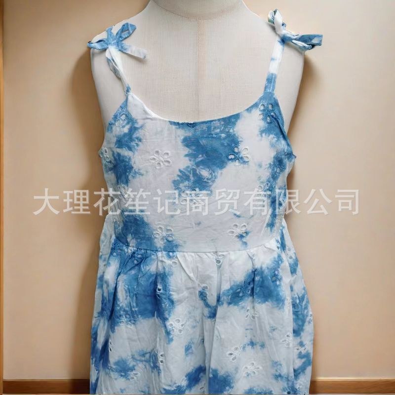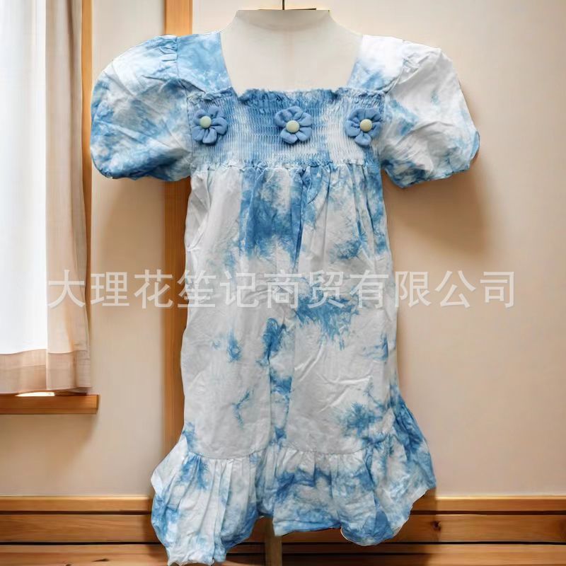 순수 천연 달리 수제 타이-염료 여름 민족 스타일 소녀의 원피스 여행 휴일 블루 다이 민소매 어린이 치마스토어 가기