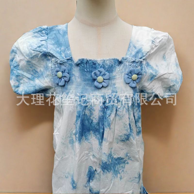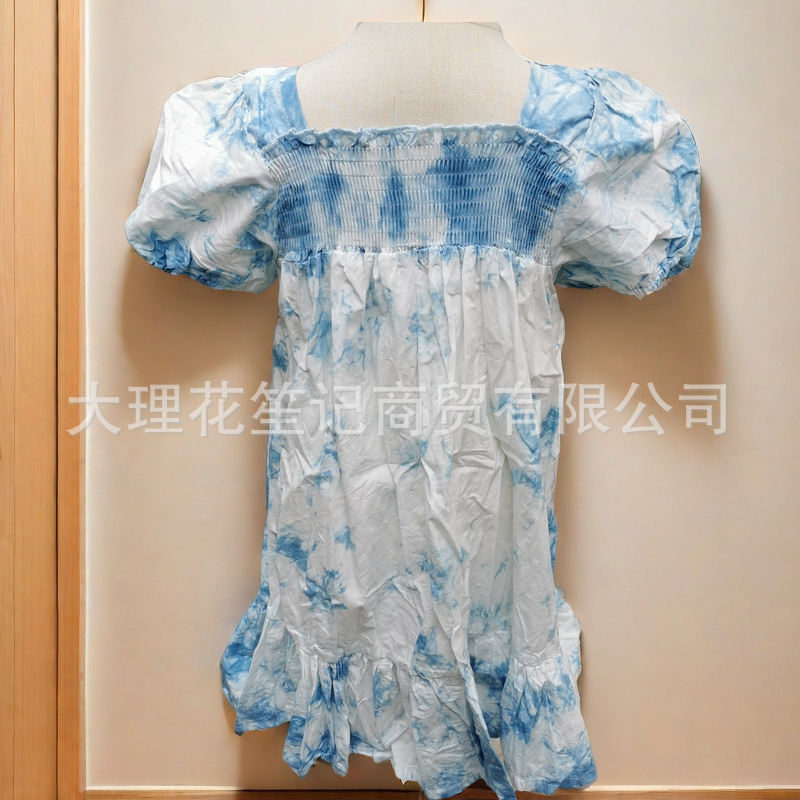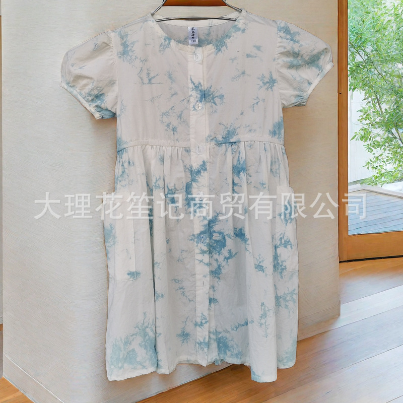순수 천연 달리 수제 타이-염료 여름 민족 스타일 소녀의 원피스 여행 휴일 블루 다이 민소매 어린이 치마