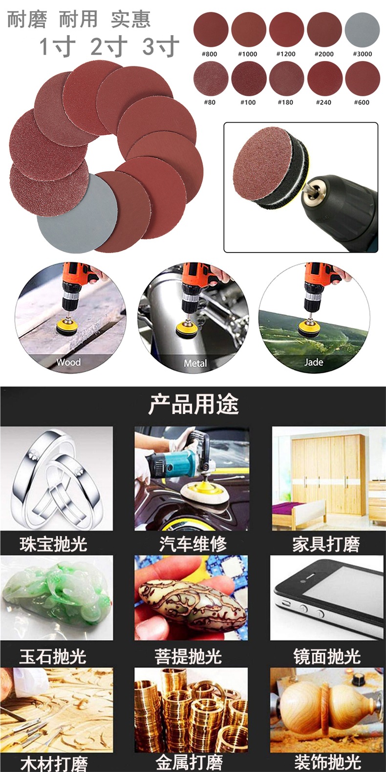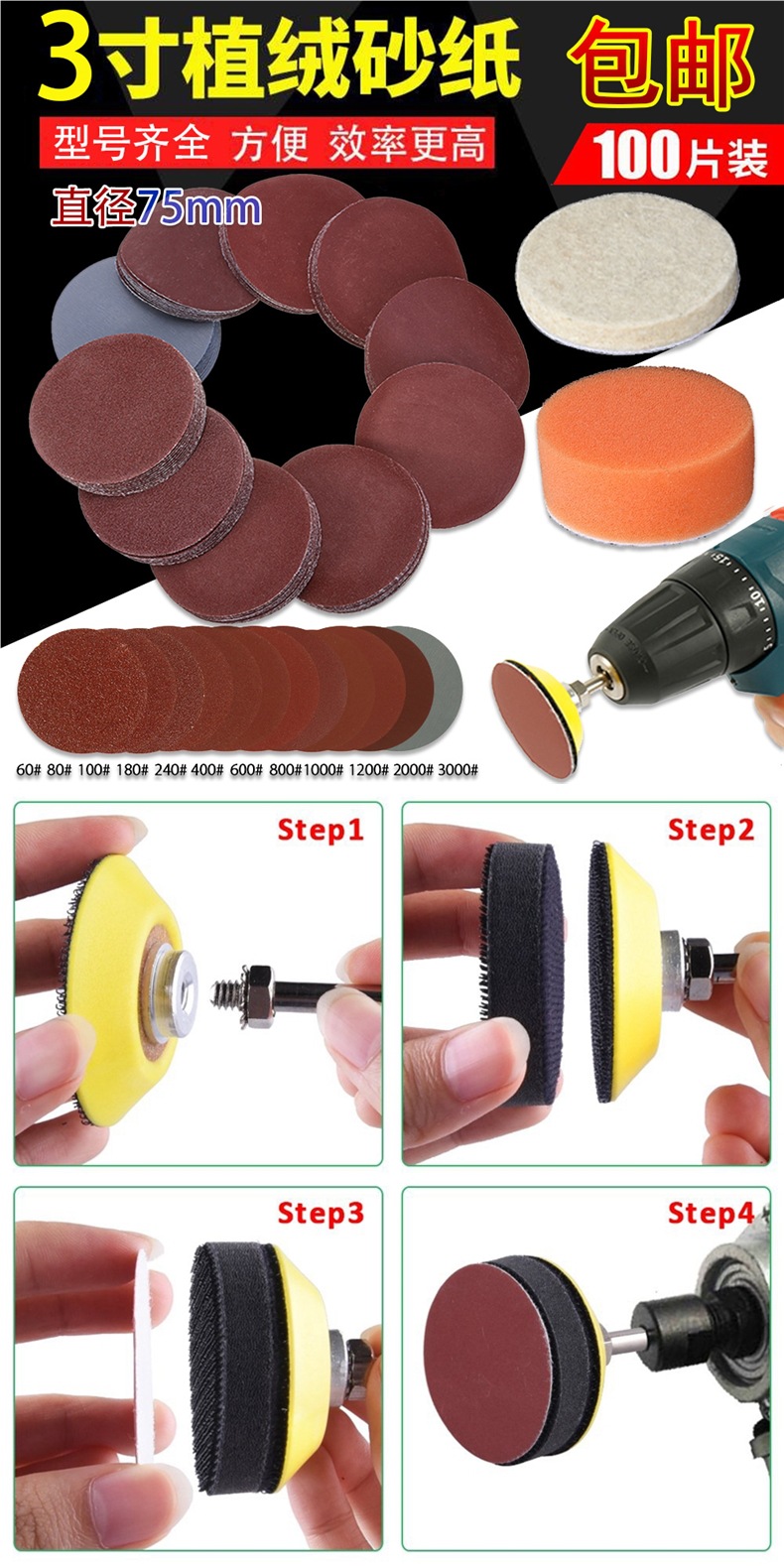 • 3인치 80-3000 메쉬, 총 100개 [1세트] 혼합 버전
