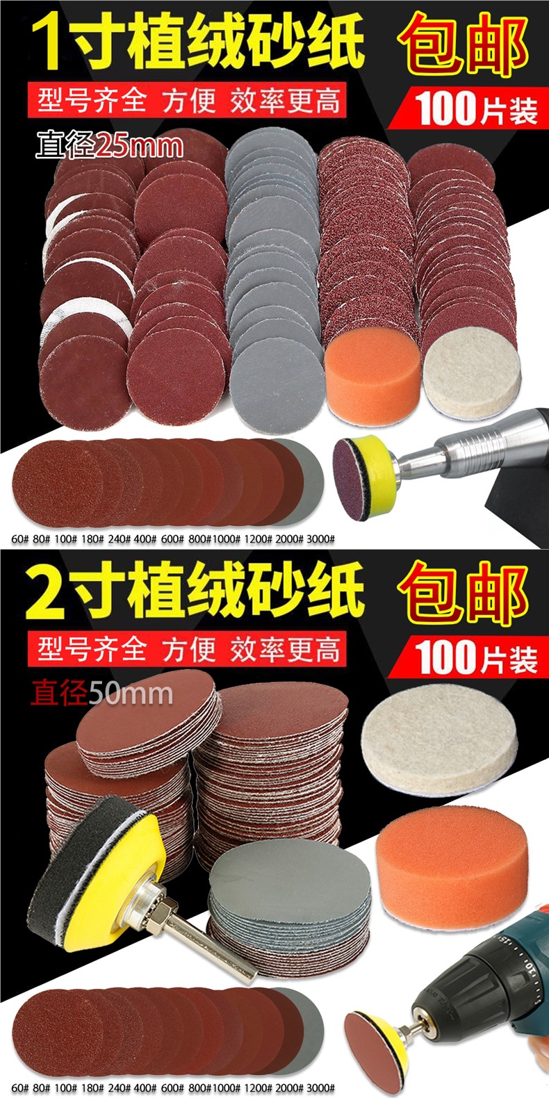 • 2인치 80-3000 메쉬, 총 100개 [1세트] 혼합 버전
