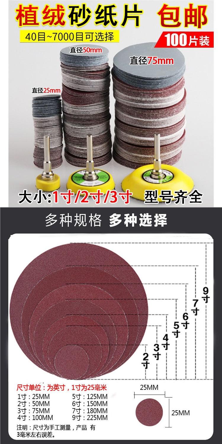 1 인치 2 인치 3 인치 자체 접착 디스크 샌드페이퍼 브러시 시트 샌드 디스크 원형 공기 연삭 전기 연마 플로킹 사포 시트스토어 가기