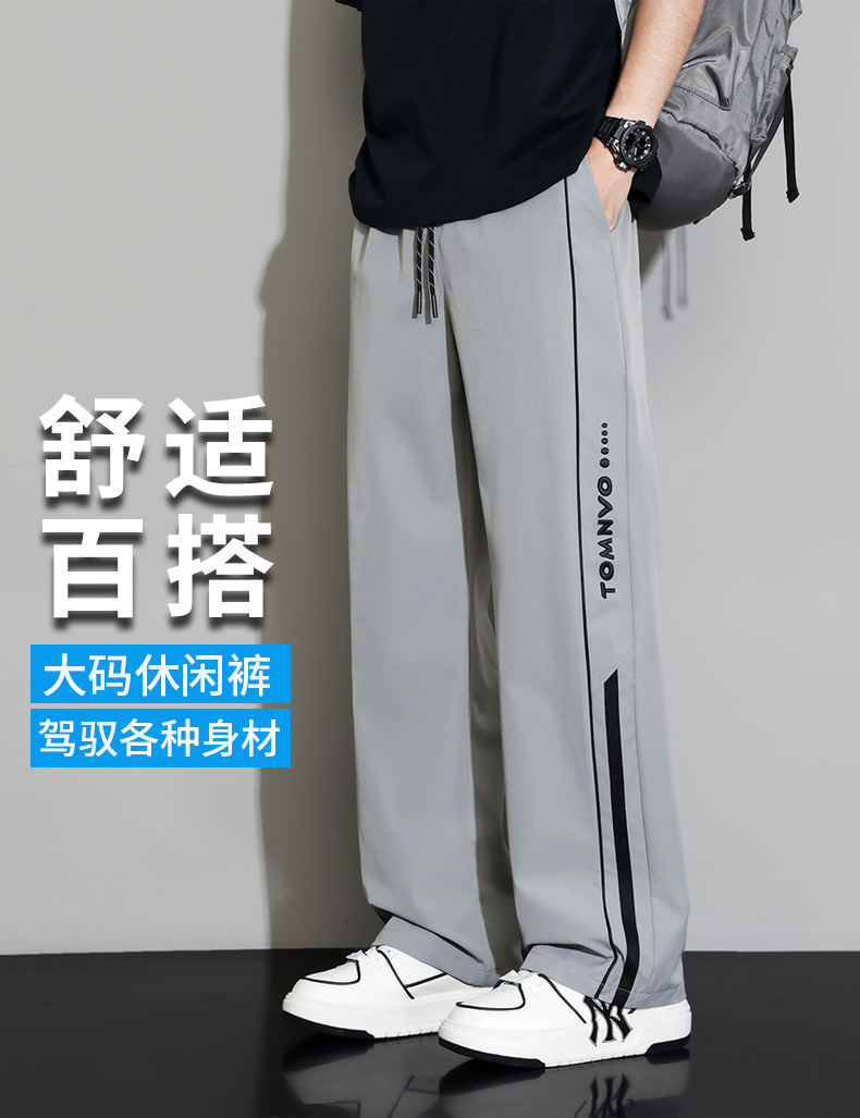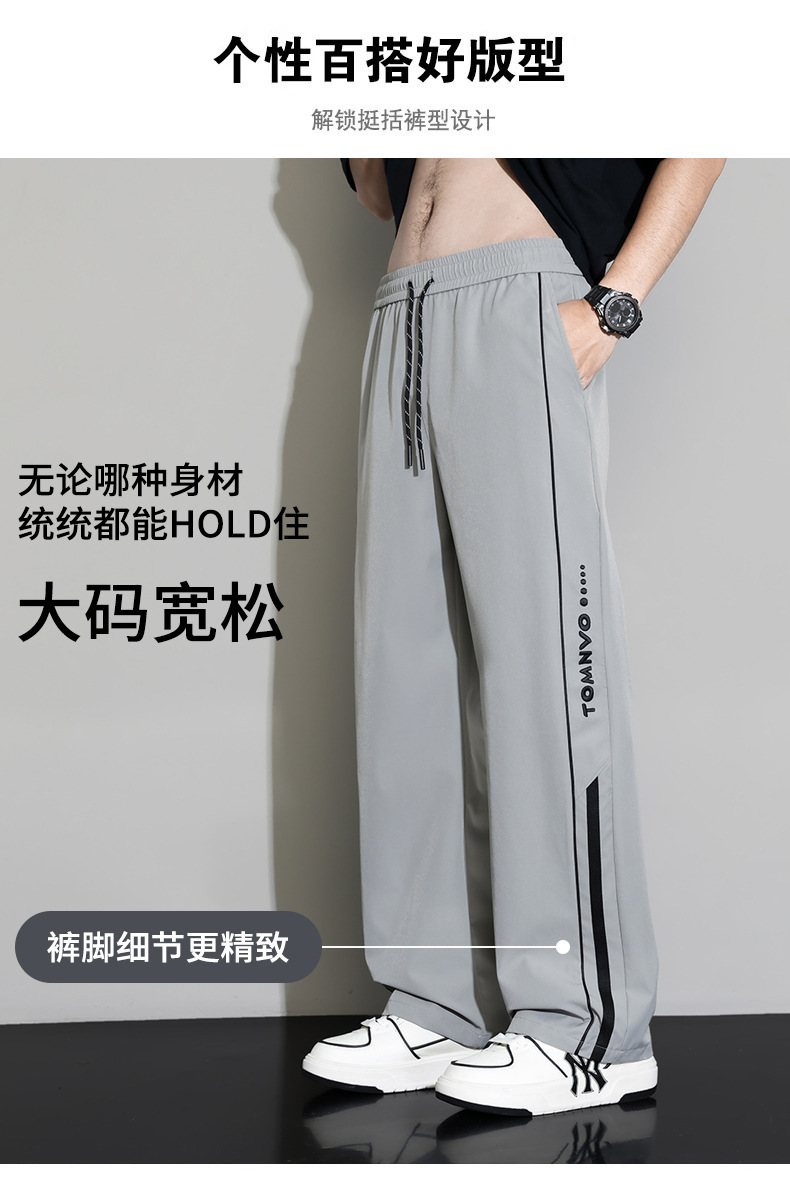 Kong79 아이스 실크 에어컨 바지 스포츠 남성용 속건성 바지 여름 트렌디 브랜드 플러스 사이즈 통기성 캐주얼 스트레이트 스웨트 팬츠스토어 가기