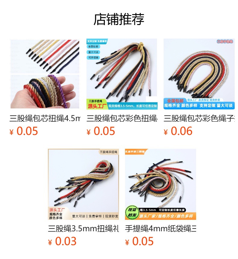 손잡이끈 4mm 새해 선물 상자 끈 명절 핸드백 끈 3가닥 꼬임끈 폴리에스터 끈 땋은 끈 걸이끈스토어 가기