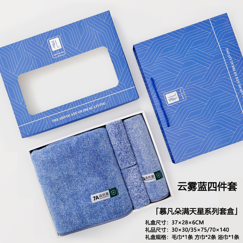 Mu Fanduo Gimmel 하이 엔드 라이트 럭셔리 목욕 타월 선물 상자 수건 손 선물 3 피스 세트 활동 선물 두껍게스토어 가기
