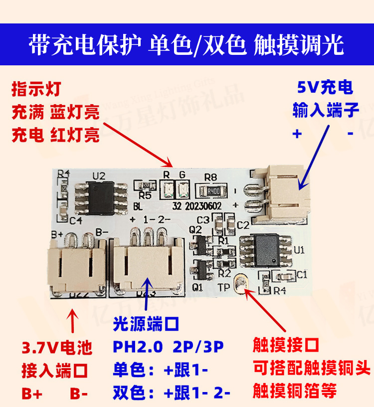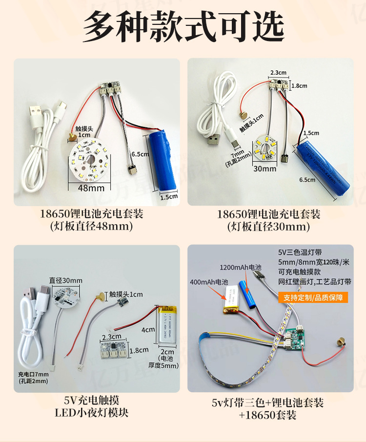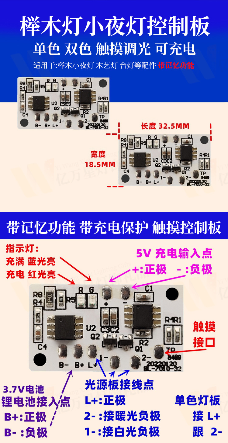5V 싱글 및 더블 컬러 터치 디밍 가변 야간 조명 Type-C 충전 제어 보드 led 데스크 램프 모듈 와이어 프리스토어 가기