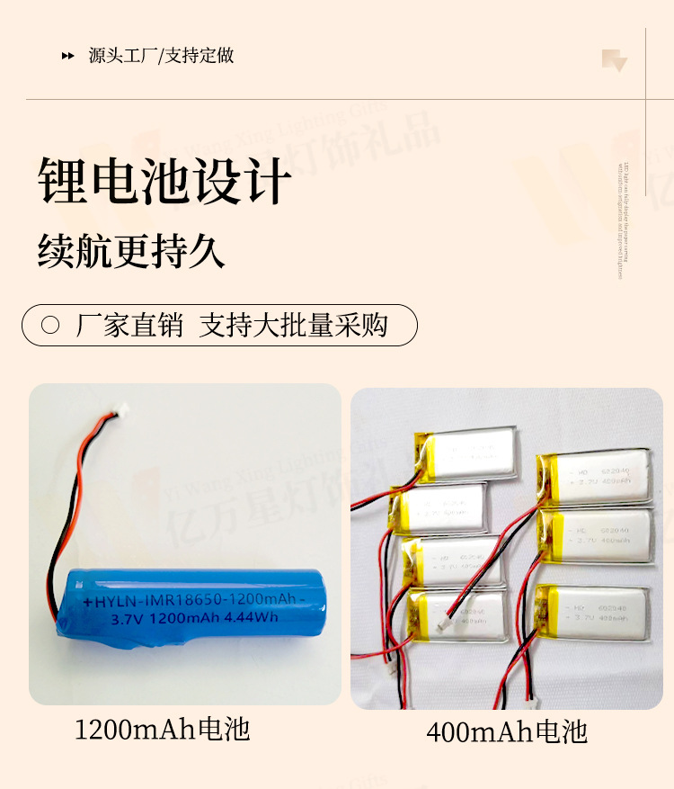 • 3색 Typec 충전식 모델 - 완전한 세트(400mAh 배터리 + 1m개의 라이트 스트립) 120구슬/미터