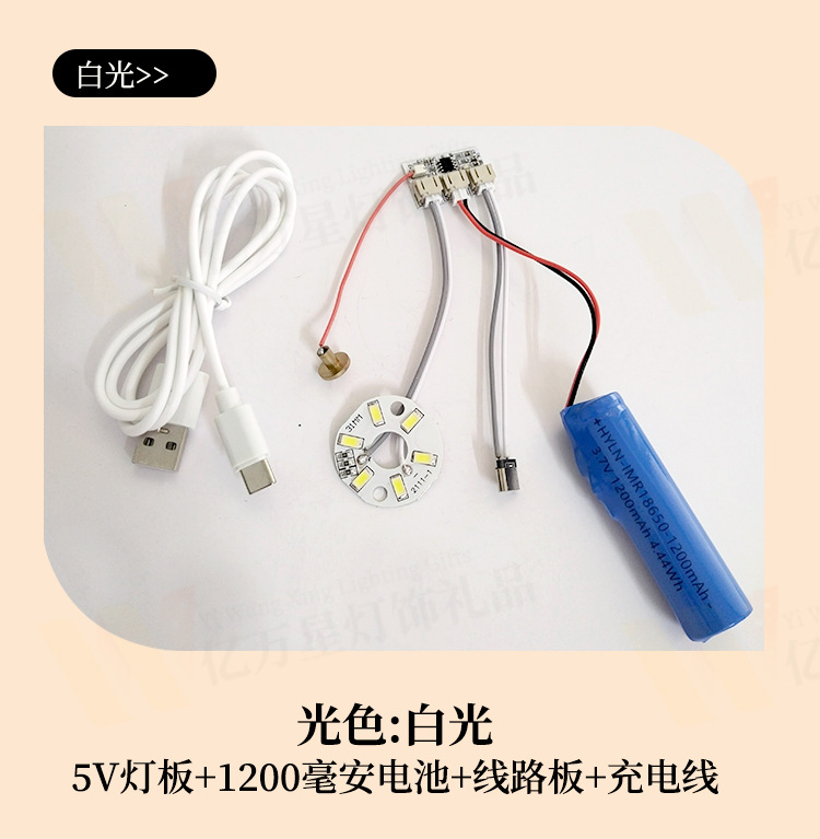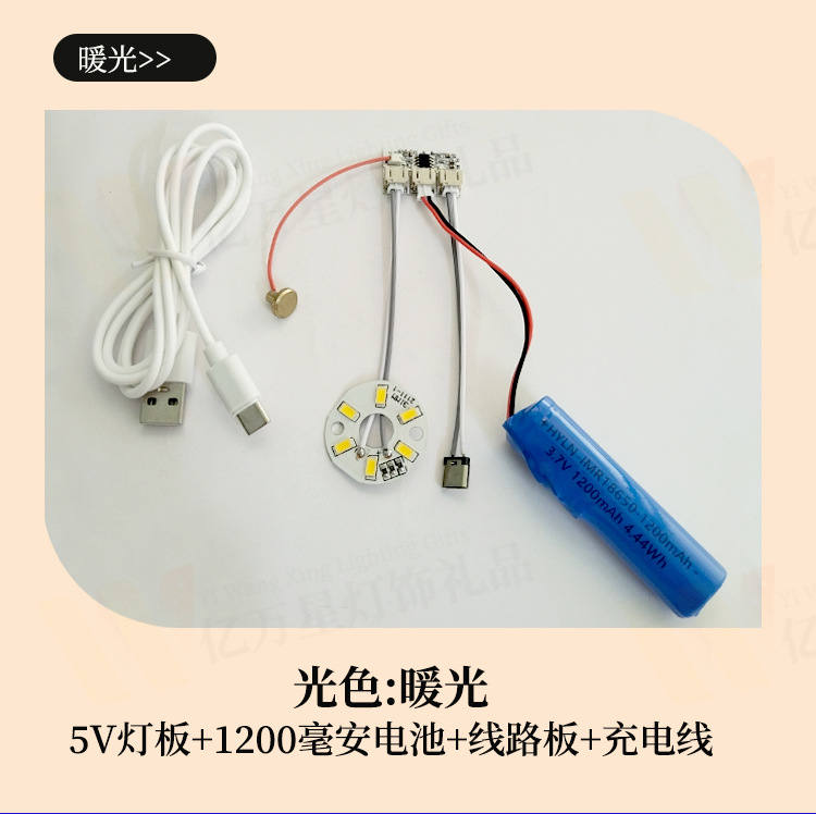 • 따뜻한 빛 5W(리튬 배터리 + 회로 기판 + USB 충전 케이블) - Typec