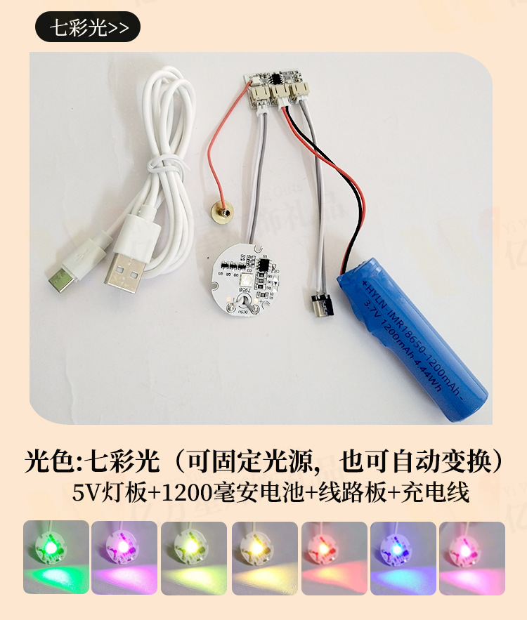 • 리모컨으로 다채로운/색상 수정 가능-3W(리튬 배터리 + 회로 기판 + USB 충전 케이블)-Typec