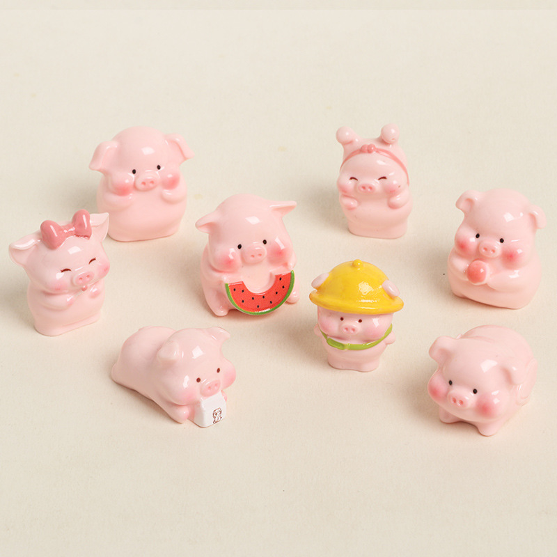 귀여운 만화 작은 분홍색 돼지 입체 수지 수공예 장식 자동차 데스크탑 소품 인형 공예품스토어 가기