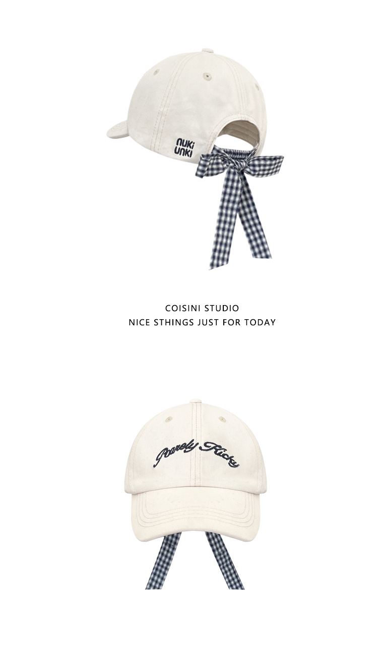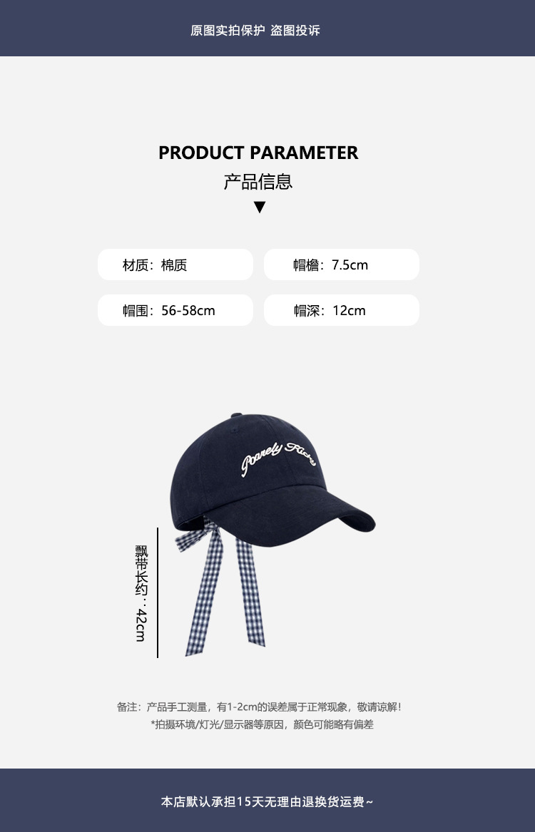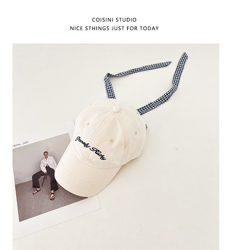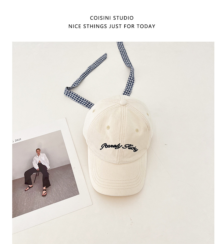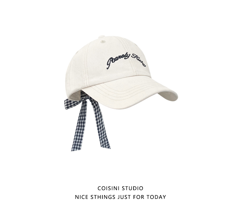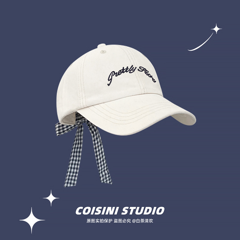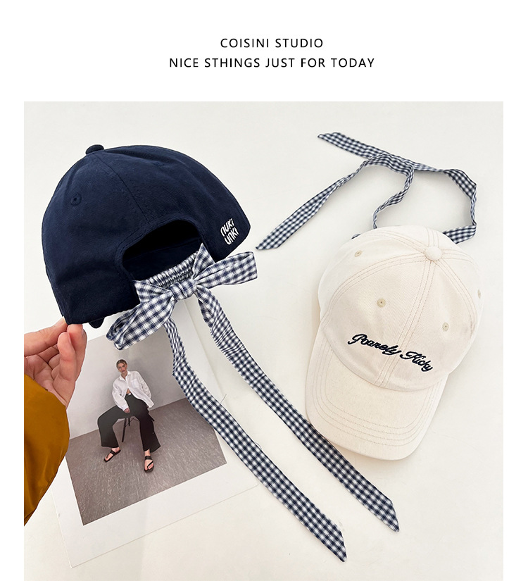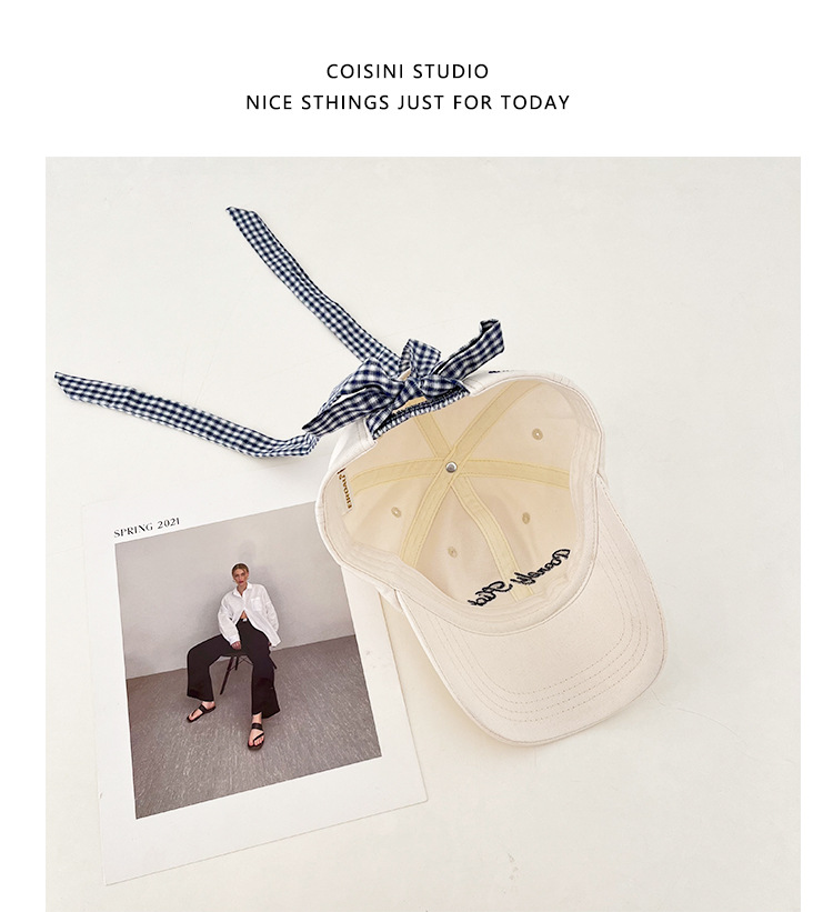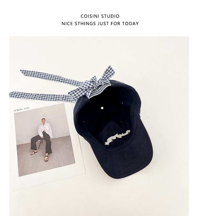 보우 스트랩 복고풍 격자 무늬 편지 자수 야구 모자 여자 한국식 봄 · 여름 올매치 얼굴 드나운 오리 혀 모자