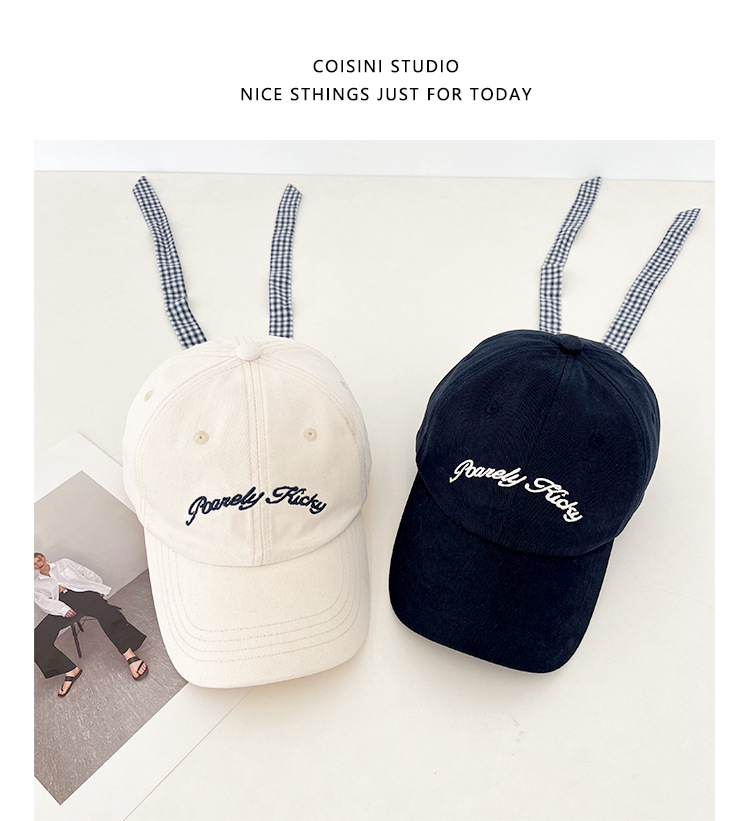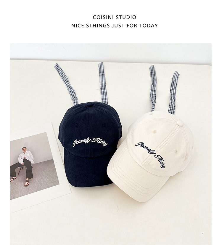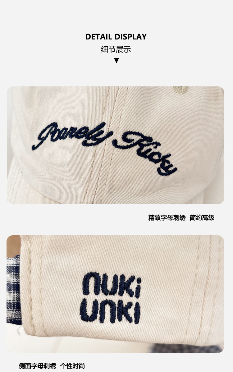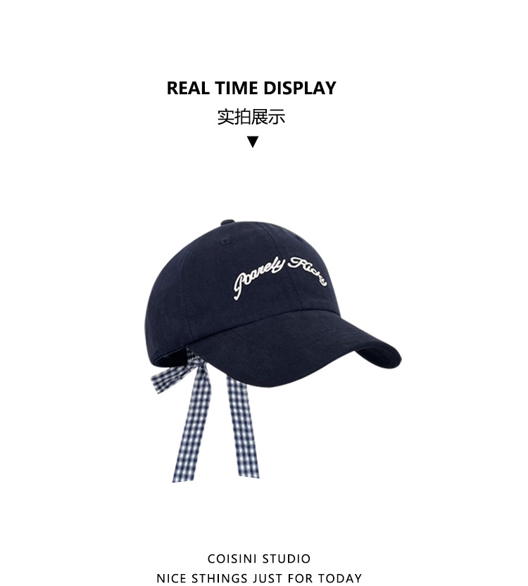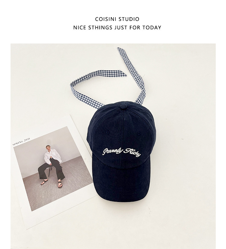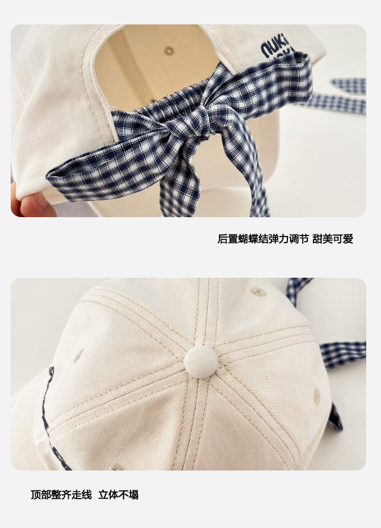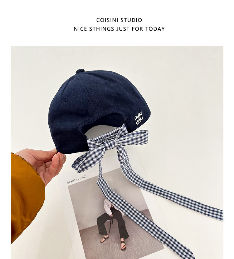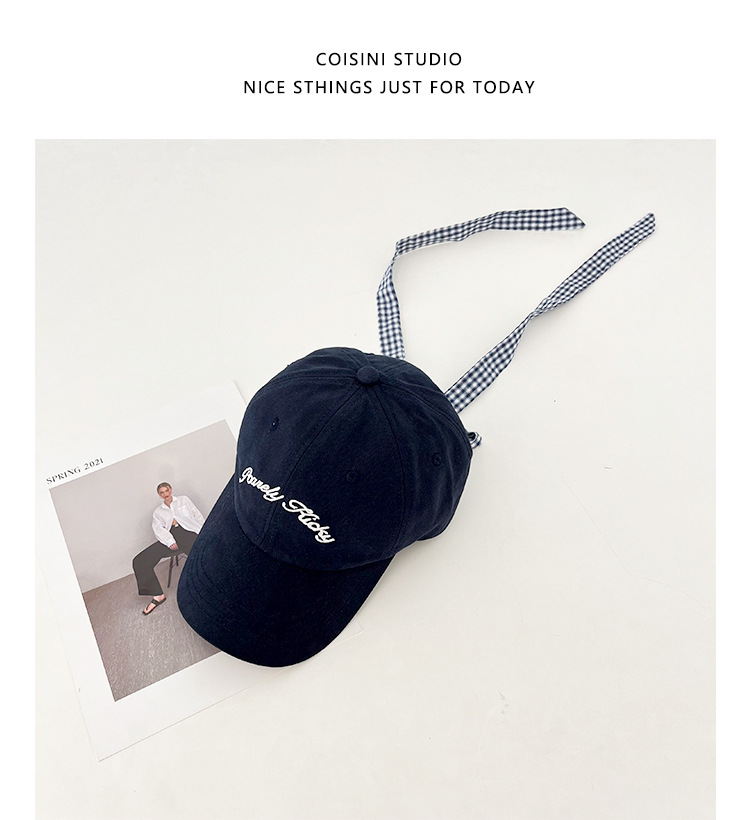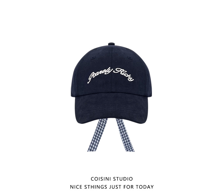 보우 스트랩 복고풍 격자 무늬 편지 자수 야구 모자 여자 한국식 봄 · 여름 올매치 얼굴 드나운 오리 혀 모자