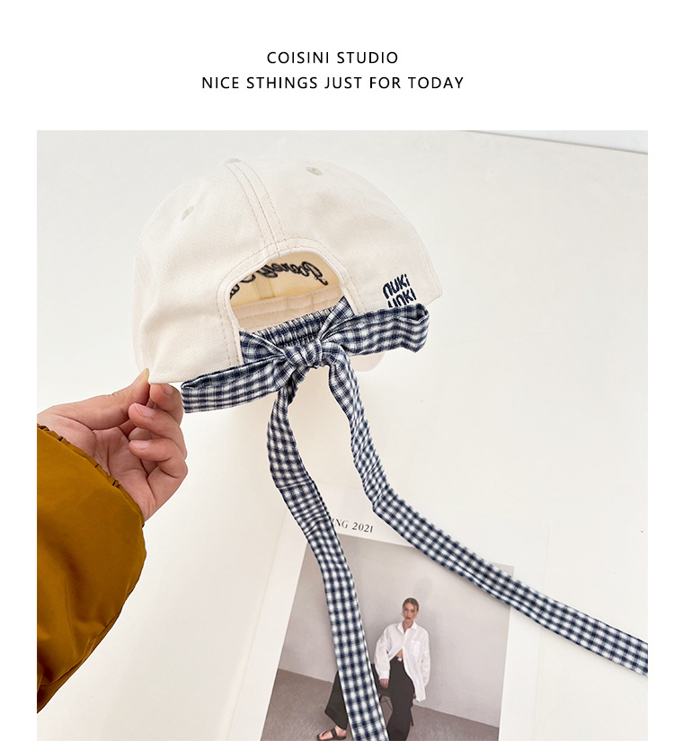 보우 스트랩 복고풍 격자 무늬 편지 자수 야구 모자 여자 한국식 봄 · 여름 올매치 얼굴 드나운 오리 혀 모자스토어 가기
