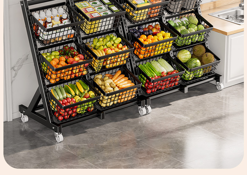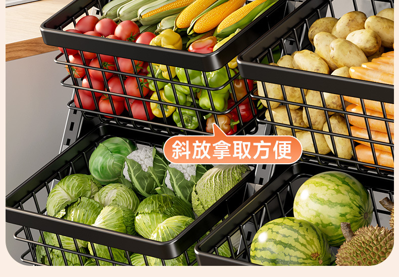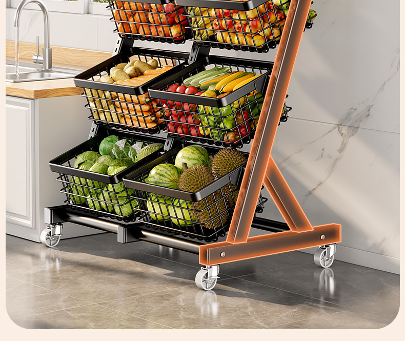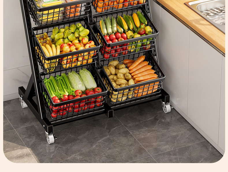 주방 수납 선반, 바닥에 놓은 야채 바구니, 야채 선반, 다기능 수납 바구니, 스낵 트롤리 수납 선반, 선반