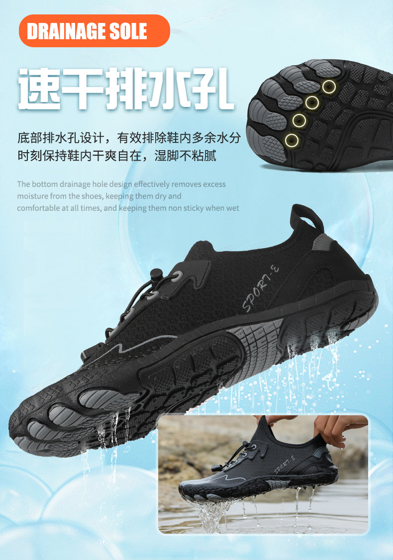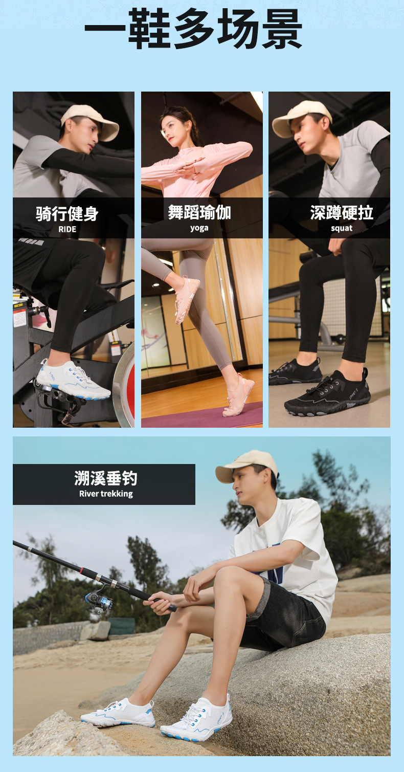 아웃도어 리버 트레이싱 슈즈, 속건성 수영 슈즈, 남녀 공용 다섯 손가락 비치 슈즈, 미끄럼 방지 낚시 슈즈, 실내 피트니스 슈즈